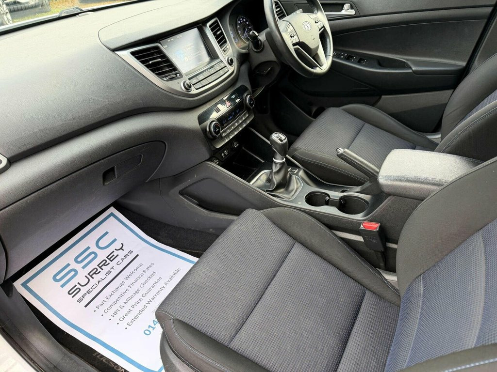 Surrey Specialist Cars are proud to present our lovely Hyundai Tucson 1.6 Tucson SE Nav Blue Drive 2WD GDI 5dr, a vehicle that exudes style and sophistication. With only one previous owner, you can trust in the quality and reliability of this exceptional SUV. This amazing car comes with Service History from the Main dealer and Long MOT until September 2026 so the car is ready to go. Finished in a stunning Polar White, this Hyundai Tucson is sure to turn heads wherever you go. The sleek design and modern features make it the perfect choice for those who appreciate both aesthetics and performance. Equipped with advanced navigation technology, the SE Nav Blue Drive ensures you always stay on the right path, no matter where your journey takes you. With a powerful 1.6 GDi engine and 2WD capabilities, this vehicle offers a smooth and efficient driving experience. Don't miss out on the opportunity to own this impressive Hyundai Tucson. Visit us today to experience the luxury and comfort for yourself. 12V Power Outlet - Front Console and Lug, 17in Alloy Wheels, 6 Airbags - Front - Front Seat Side and , 6 Speakers - 2 Tweeters - 2 Front Door -, 8in Touchscreen Satellite Navigation wit, ABS - Anti-Lock Brake System with EBD - , Active Bonnet System, Adjustable Head Restraints, Adjustable Intermittent Front Windscreen, Armrest - Front with Storage, Armrest - Rear Centre with Cup Holders, Automatic De-Fog System for Front Windsc, Automatic Headlights with Dusk Sensor, BAS - Brake Assist System, Bluetooth Connectivity, Body Colour Bumpers, Bottle Holders - Front Centre Console an, Childproof Rear Door Locks, Climate Control - Dual Zone with Ioniser, Courtesy Light - Front Door, Cruise Control