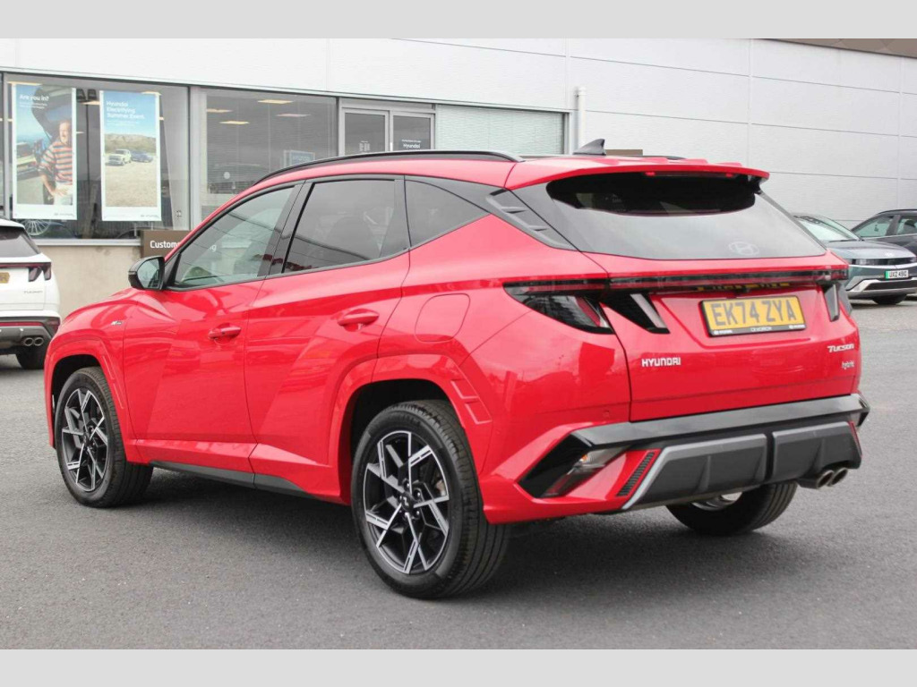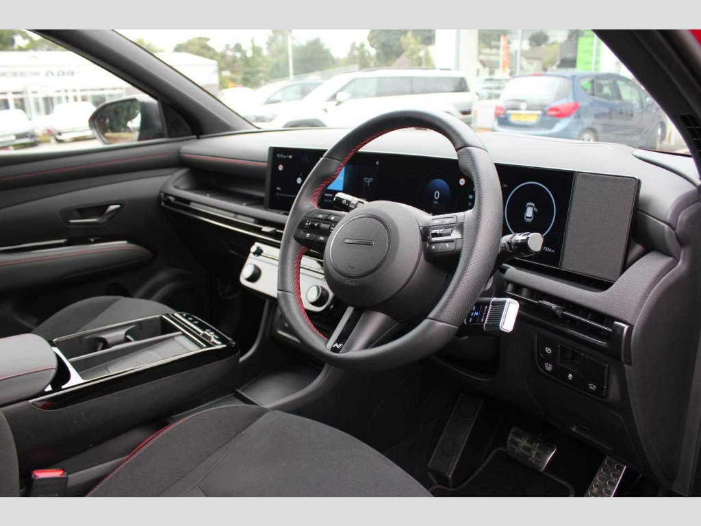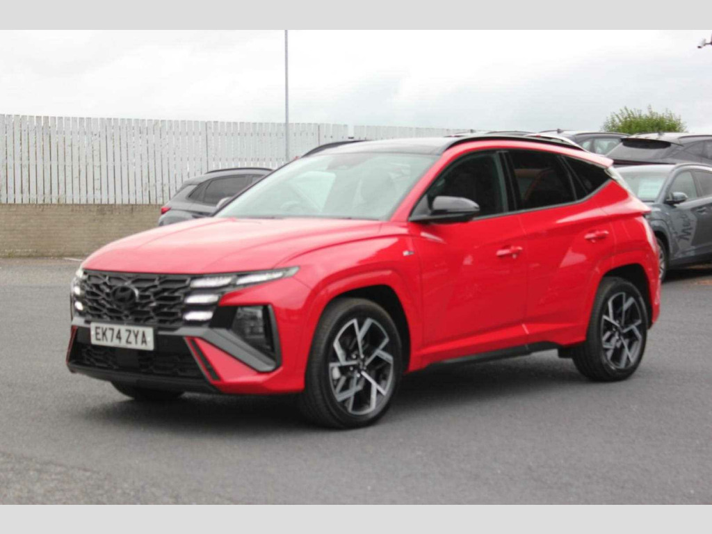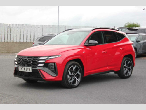 The 2024 Hyundai Tucson N Line S Hybrid combines bold, sporty styling with intelligent hybrid efficiency. Powered by a 1.6-litre Turbocharged Hybrid engine producing 230 PS, paired with a smooth automatic transmission, this dynamic SUV delivers exhilarating performance without compromising on fuel economy. Key Features:⚙ 1.6T Hybrid (230 PS) | Automatic Transmission | Front-Wheel Drive N Line Styling – Aggressive body kit, exclusive badging, red interior accents Striking 19" Alloy Wheels Dual 12.3" Panoramic Displays (Driver Cluster + Infotainment) Apple CarPlay™ & Android Auto™ | Wireless Charging Premium BOSE® Sound System Heated & Ventilated Front Seats + Heated Rear Seats & Steering Wheel☀ Panoramic Glass Sunroof 360° Surround View Camera + Smart Parking Assist Hyundai SmartSense – Blind Spot Collision Assist, Lane Keep Assist, Adaptive Cruise Control Competitive Finance Options | Part Exchange Welcome