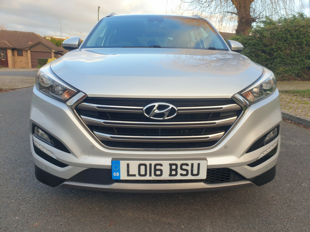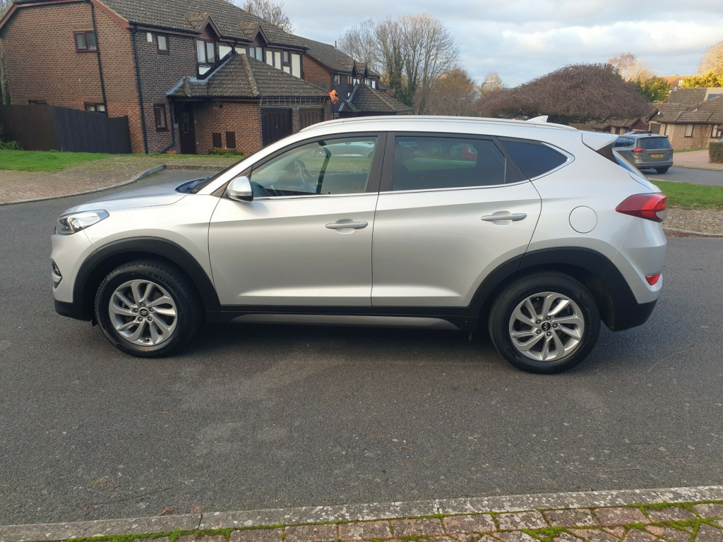 Direct from the last private owner of 9 years, Just been serviced and fully prepared by our approved workshop including 2 new front tyres and an advisory free MOT issued, ULEZ compliant, only £35 annual road tax, supplying Hyundai dealer plus one owner from new, a lovely top specification Hyundai Tucson Premium fitted with the 1.7 CRDi Euro 6 Turbo Diesel engine and 6-speed manual gearbox, finished in Platinum Silver metallic with a full black leather interior. The specification includes; Sat-Nav, rear parking camera, 8'' touch-screen infotainment system with multimedia, Bluetooth phone + DAB audio, front + rear parking sensors, drivers information computer, auto lights, rain sensor, electric adjustment of both front seats, heated front and rear seats, cornering headlights, lane keeping assistance, LED day running lights, power folding electric heated mirrors, blind spot monitor, remote control c/locking +alarm (2 fully working remote control keys), privacy glass, front fogs, 17'' alloy wheels, cruise control with speed limiter, dual zone climate control/AC, Hill Start Assist, Auto Emergency Braking, PAS, ABS, ESP, traction control, front/side/curtain airbags, Isofix, tyre pressure monitor, elec front and rear windows, premium DAB audio with 6 speakers, steering wheel audio control, USB and aux-in sockets, full sized alloy spare wheel, roof rails, load cover blind, 5 service stamps + several receipts, chain driven camshaft - no belt changes required. Supplying Hyundai main dealer + one private owner from new, MOT to 02/01/2027. An extremely clean well presented example in great condition throughout. Above average mileage (11684 miles per year) but very well maintained and priced accordingly. The car comes with; two fully working remote control keys, driver's handbook pack, locking wheel nut key and a full clear HPI Report. Extended warranty available, PX welcome, most major debit cards taken (conditions apply), approved dealer for Zuto vehicle finance, NO HIDDEN ADMIN FEES - the price you see is the price you pay, phone mobile (07802 812378) or 01622 690356 (business hours) www.pacecars.co.uk