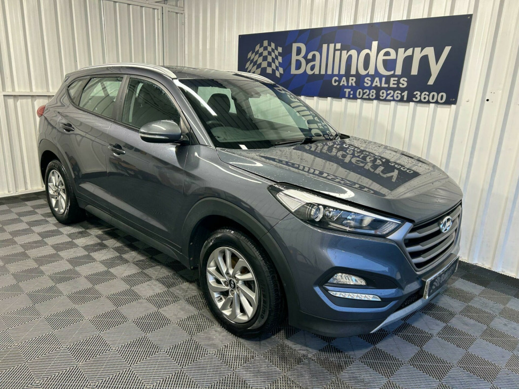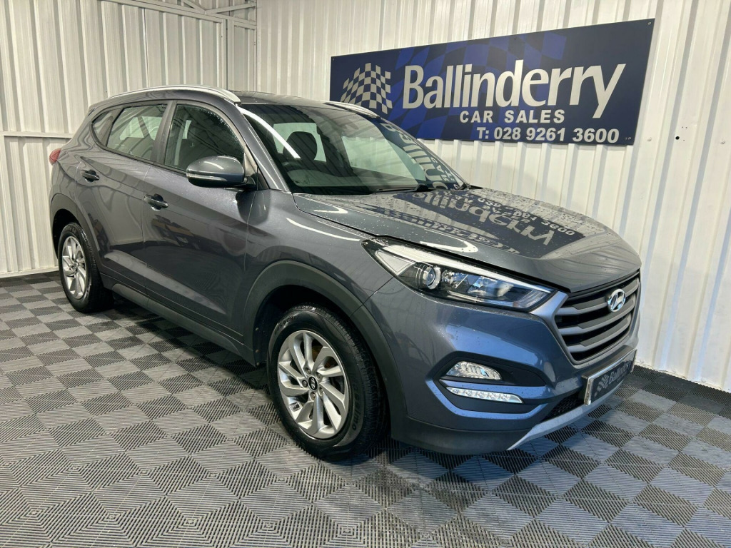GREAT EXAMPLE OF THIS HYUNDAI TUCSON 1.7 CRDI BLUE DRIVE SE IN GREY.LOW RATE FINANCE DEALS AVAILABLE WITH NO DEPOSIT REQUIREDALL TRADE IN`S WELCOMETELEPHONE MARK OR STUART ON 02892 613600 OR 07802 396444. 12V Power Outlet - Front Console and Luggage Compartment, 17in Alloy Wheels, 6 Airbags - Front - Front Seat Side and Curtain, 6 Speakers - 2 Tweeters - 2 Front Door - 2 Rear Door, ABS - Anti-Lock Brake System with EBD - Electronic Brake-Force Distribution, Active Bonnet System, Adjustable Head Restraints, Adjustable Intermittent Front Windscreen Wipers with Aero Wiper Blade, Armrest - Front with Storage, Armrest - Rear Centre with Cup Holders, Automatic De-Fog System for Front Windscreen, Automatic Headlights with Dusk Sensor, BAS - Brake Assist System, Bluetooth Connectivity, Body Colour Bumpers, Bottle Holders - Front Centre Console and Door, Childproof Rear Door Locks, Climate Control - Dual Zone with Ioniser, Courtesy Light - Front Door, Cruise Control with Speed Limiter, Curtain Airbag Rollover Sensor, DBC - Downhill Brake Control, Daytime Running Lights - LED, Deadlocks, Digital Clock, Door Mirrors - Body Coloured, Door Mirrors - Electric Adjustment and Heated with Power Folding Function, Driver Seat Height Adjustment, ESP - Electronic Stability Programme, ESS - Emergency Stop Signal, Electric Windows - Front and Rear with Drivers Anti-Trap and One-Touch Up-Down Control, Exterior Door Handles - Body Coloured, Flex Steering, Front Fog Lights, Front Map Reading Lights, Front Passenger Airbag De-Activation Switch, Glove Compartment with Cooling Function and Illumination, HAC - Hill-Start Assist Control, Headlights - Follow Me Home Function, Heated Front Seats, Height Adjustable Front Seatbelts, ISOFIX Child Seat Anchorage Points - Rear - Outer Rear, Immobiliser, Interior Door Handles - Chrome Effect, Interior Light - Luggage Compartment, Interior Trim - Soft Touch - Door Top and Centre Trim, Lane Departure Warning System with Lane Keeping Assist, Leather Wrapped Steering Wheel and Gear Knob, Locking Wheel Nuts, Luggage Hooks, Luggage Net, Parking Sensors - Rear, Perimeter Alarm, Positioning Lights LED, Power Assisted Steering, Projection Headlights with Static Cornering Lights, Rear Lights - LED, Rear Spoiler with Integral LED Brake Light, Remote Central Locking, Retractable Load Cover, Roof Rails - Silver, Seatbelt Anchor Pre-Tensioners - Front, Seatbelt Reminder - Front and Rear, Seats - 60-40 Split Folding Rear, Seats - Drivers Electric Lumbar Support, Seats - Rear Reclining, Side Body Moulding - Black, Skid Plates - Front - Silver, Spare Wheel - Full Size Alloy, Speed Sensitive Automatic Door Locking, Steering Wheel Audio and Phone Controls, Stereo RDS DAB Digital Radio with MP3 Compatibility, Sun Visors with Driver and Passenger Illuminated LED Vanity Mirrors, Sunglasses Holder, TSA - Trailer Stability Assist, Tinted Glass with Shade Band, Trip Computer, Tyre Pressure Monitoring System with Individual Tyre Display, USB and AUX Connections, VSM - Vehicle Stability Management, Windscreen Washer Fluid Sensor and Warning Indicator.