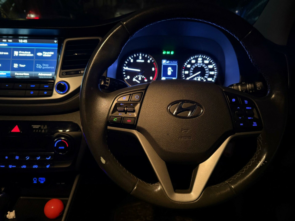 This 2017 Hyundai TUCSON CRDi SE Nav presents a remarkable opportunity with its exceptionally low mileage of just 66,850 miles for its age. This Euro 6 compliant 1.7 litre diesel model, finished in the SE Nav trim, offers a wealth of features designed for comfort and convenience. Enjoy the ease of Bluetooth connectivity for your devices, and stay comfortable with dual zone climate control featuring an ioniser. Navigating tight spaces is made simpler with rear parking sensors, and the front seats are heated for those colder journeys. Drive Mode Select allows you to tailor your driving experience, while the generous boot space ensures you have ample room for all your needs.This TUCSON stands out with its impressive fuel economy, achieving a notable 58 miles per gallon, which indicates it is more economical than many similar vehicles. Furthermore, its low CO2 emissions mean it is kinder to the environment, and its low insurance group suggests that running costs will be more affordable. These highlights collectively demonstrate the excellent value and practicality this Hyundai TUCSON offers. v power outlet - front console and luggage compartment, 17in alloy wheels, 6 airbags - front - front seat side and curtain, 6 speakers - 2 tweeters - 2 front door - 2 rear door, 8in touchscreen satellite navigation with traffic messaging channel - reversing camera - mapcare and tom tom live services, abs - anti-lock brake system with ebd - electronic brake-force distribution, active bonnet system, adjustable head restraints, adjustable intermittent front windscreen wipers with aero wiper blade, armrest - front with storage, armrest - rear centre with cup holders, automatic de-fog system for front windscreen, automatic headlights with dusk sensor, bas - brake assist system, bluetooth connectivity, body colour bumpers, bottle holders - front centre console and door, childproof rear door locks, climate control - dual zone with ioniser, courtesy light - front door, cruise control with speed limiter, curtain airbag rollover sensor, dbc - downhill brake control, daytime running lights - led, deadlocks, digital clock, door mirrors - body coloured, door mirrors - electric adjustment and heated with power folding function, drive mode select, driver seat height adjustment, esp - electronic stability programme, ess - emergency stop signal, electric windows - front and rear with drivers anti-trap and one-touch up-down control, exterior door handles - body coloured, front fog lights, front map reading lights, front passenger airbag de-activation switch, glove compartment with cooling function and illumination, hac - hill-start assist control, headlights - follow me home function, heated front seats, height adjustable front seatbelts, isofix child seat anchorage points - rear - outer rear, immobiliser, interior door handles - chrome effect, interior light - luggage compartment, interior trim - soft touch - door top and centre trim, lane departure warning system with lane keeping assist, leather wrapped steering wheel and gear knob, locking wheel nuts, luggage hooks, luggage net, parking sensors - rear, perimeter alarm, positioning lights led, power assisted steering, projection headlights with static cornering lights, rear lights - led, rear spoiler with integral led brake light, remote central locking, retractable load cover, roof rails - silver, seatbelt anchor pre-tensioners - front, seatbelt reminder - front and rear, seats - 60-40 split folding rear, seats - drivers electric lumbar support, seats - rear reclining, side body moulding - black, skid plates - front - silver, spare wheel - full size alloy, speed limit information system, speed sensitive automatic door locking, steering wheel audio and phone controls, stereo rds dab digital radio with mp3 compatibility, sun visors with driver and passenger illuminated led vanity mirrors, sunglasses holder, tsa - trailer stability assist, tinted glass with shade band, trip computer, tyre pressure monitoring system with individual tyre display, usb and aux connections, vsm - vehicle stability management, windscreen washer fluid sensor and warning indicator
