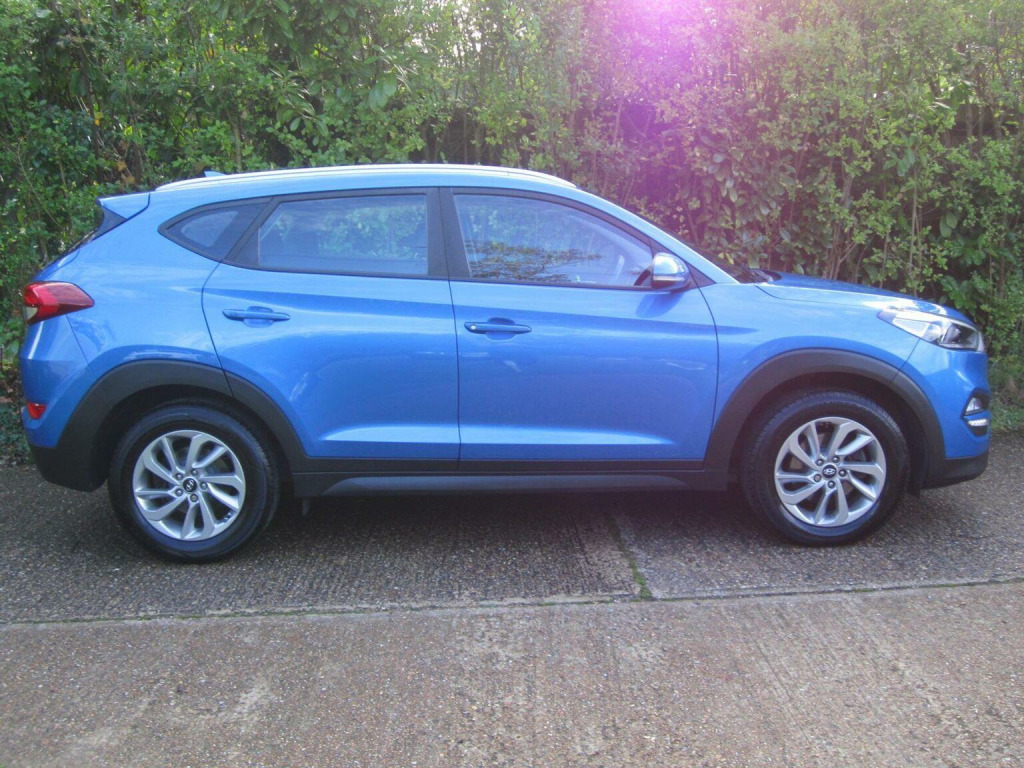 A fantastic example finished in Ara Blue metallic with contrasting fabric interior. Great spec with sat-nav, reverse camera, lane assist etc. Superb family car with low running costs and just had a full service, new tyres and brakes all round - not a penny to spend for many miles!, Boasting a full service history and a clear vehicle history check, this 2017 Hyundai TUCSON CRDi SE Nav offers excellent peace of mind. Powered by an efficient 1.7L Euro 6 diesel engine, this model comes with a 6 month warranty and an MOT valid until November 2026. The last service was completed on 06 November 2025 at 94,253 miles. Inside, youll find an 8in touchscreen satellite navigation system with traffic messaging, a reversing camera, and Bluetooth connectivity. The SE Nav trim also includes dual zone climate control with ioniser, rear parking sensors, and automatic headlights with a dusk sensor for added convenience. This Hyundai TUCSON stands out with its impressive fuel economy, achieving a remarkable 62 mpg, which is better than many similar vehicles. Its low CO2 emissions also contribute to its appeal, alongside a low insurance group making it an economical choice. Furthermore, youll appreciate the generous boot space, perfect for luggage or shopping.