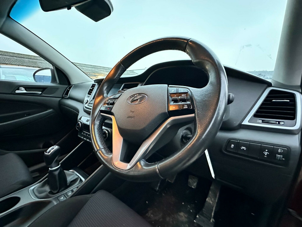 With MOT valid until May 2026, this 2015 Hyundai TUCSON CRDi SE Nav offers excellent peace of mind. This 1.7L Diesel Euro 6 compliant model presents itself with a partial service history and a mileage of 80,000 miles, which is considered low for its age. Inside, you'll find an 8in touchscreen satellite navigation system complete with Traffic Messaging Channel, a reversing camera, and Mapcare with Tom Tom LIVE Services, including parking assistance. The vehicle also benefits from automatic headlights with a dusk sensor, Bluetooth connectivity for seamless phone integration, and dual zone climate control with an ioniser to keep everyone comfortable. For added convenience, the front seats are heated.This Hyundai TUCSON stands out with several key advantages. Its impressive fuel economy of 62 mpg means fewer trips to the petrol station, and its low insurance group rating can help keep running costs down. You'll also appreciate the generous boot space, perfect for shopping trips or holidays. Furthermore, its low CO2 emissions highlight its efficiency and environmental consideration compared to many other vehicles. v power outlet - front console and luggage compartment, 17in alloy wheels, 6 airbags - front - front seat side and curtain, 6 speakers - 2 tweeters - 2 front door - 2 rear door, 8in touchscreen satellite navigation with traffic messaging channel - reversing camera - mapcare and tom tom live services, abs - anti-lock brake system with ebd - electronic brake-force distribution, active bonnet system, adjustable head restraints, adjustable intermittent front windscreen wipers with aero wiper blade, armrest - front with storage, armrest - rear centre with cup holders, automatic de-fog system for front windscreen, automatic headlights with dusk sensor, bas - brake assist system, bluetooth connectivity, body colour bumpers, bottle holders - front centre console and door, childproof rear door locks, climate control - dual zone with ioniser, courtesy light - front door, cruise control with speed limiter, curtain airbag rollover sensor, dbc - downhill brake control, daytime running lights - led, deadlocks, digital clock, door mirrors - body coloured, door mirrors - electric adjustment and heated with power folding function, driver seat height adjustment, esp - electronic stability programme, ess - emergency stop signal, electric windows - front and rear with drivers anti-trap and one-touch up-down control, exterior door handles - body coloured, flex steering, front fog lights, front map reading lights, front passenger airbag de-activation switch, glove compartment with cooling function and illumination, hac - hill-start assist control, headlights - follow me home function, heated front seats, height adjustable front seatbelts, isofix child seat anchorage points - rear - outer rear, immobiliser, interior door handles - chrome effect, interior light - luggage compartment, interior trim - soft touch - door top and centre trim, lane departure warning system with lane keeping assist, leather wrapped steering wheel and gear knob, locking wheel nuts, luggage hooks, luggage net, parking sensors - rear, perimeter alarm, positioning lights led, power assisted steering, projection headlights with static cornering lights, rear lights - led, rear spoiler with integral led brake light, remote central locking, retractable load cover, roof rails - silver, seatbelt anchor pre-tensioners - front, seatbelt reminder - front and rear, seats - 60-40 split folding rear, seats - drivers electric lumbar support, seats - rear reclining, side body moulding - black, skid plates - front - silver, spare wheel - full size alloy, speed limit information system, speed sensitive automatic door locking, steering wheel audio and phone controls, stereo rds dab digital radio with mp3 compatibility, sun visors with driver and passenger illuminated led vanity mirrors, sunglasses holder, tsa - trailer stability assist, tinted glass with shade band, trip computer, tyre pressure monitoring system with individual tyre display, usb and aux connections, vsm - vehicle stability management, windscreen washer fluid sensor and warning indicator