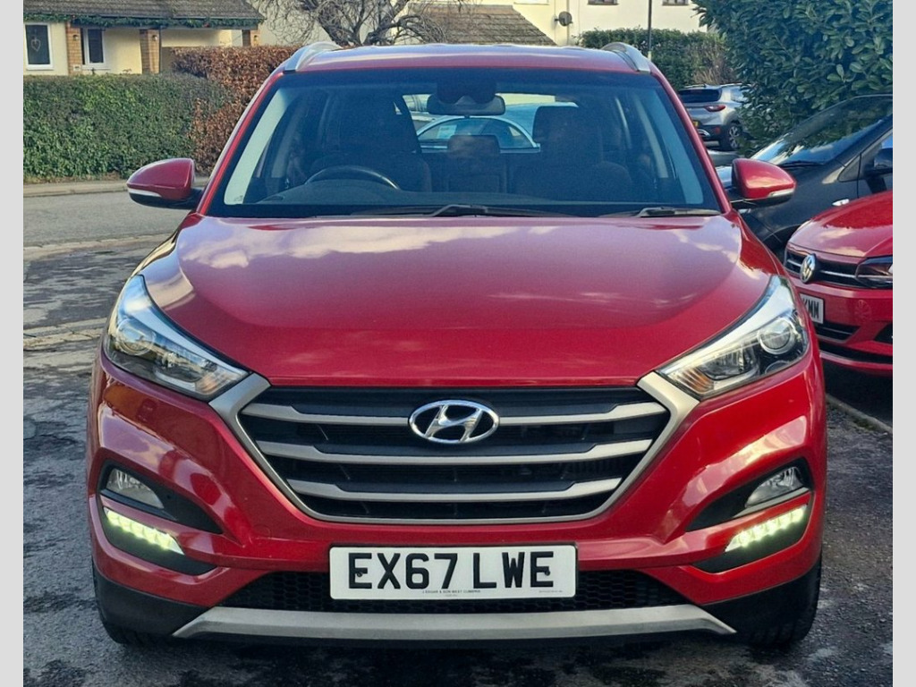 Lovely 2017 67 Hyundai Tucson 1.7 CRDi SE NAV 5 Door in Fiery Red - Specification includes SAT NAV, Reverse Camera, Bluetooth, Electric Windows x 4, Electric Folding Mirrors, 17" Alloy Wheels, Remote Central Locking, Front Fogs, Climate Control Air Conditioning, LED Driving Lights, Lane Departure Warning, USB+Aux, Cruise Control with Speed Limiter, Trip Computer - Service History, 2 Keys Supplied - DAB Radio - Heated Seats - MOT JANUARY 2027 - 12V Power Outlet - Front Console and Lug, 17in Alloy Wheels, 6 Airbags - Front - Front Seat Side and , 6 Speakers - 2 Tweeters - 2 Front Door -, 8in Touchscreen Satellite Navigation wit, ABS - Anti-Lock Brake System with EBD - , Active Bonnet System, Adjustable Head Restraints, Adjustable Intermittent Front Windscreen, Armrest - Front with Storage, Armrest - Rear Centre with Cup Holders, Automatic De-Fog System for Front Windsc, Automatic Headlights with Dusk Sensor, BAS - Brake Assist System, Bluetooth Connectivity, Body Colour Bumpers, Bottle Holders - Front Centre Console an, Childproof Rear Door Locks, Climate Control - Dual Zone with Ioniser, Courtesy Light - Front Door, Cruise Control