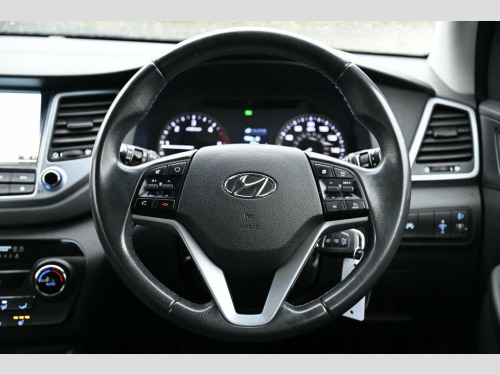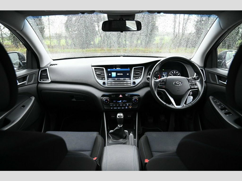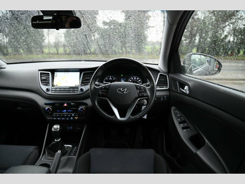 Prestige Car Supermarket in York presents this 2017 Hyundai Tucson 1.7 CRDi Blue Drive SE Nav, finished in Micron Grey with blue-black cloth upholstery and offering a well-rounded blend of comfort, technology and efficiency. As standard in SE Nav specification, this Tucson is equipped with 17in alloy wheels, silver roof rails, LED daytime running lights, front fog lights, LED rear lights and a rear spoiler with integrated LED brake light. Inside, it features dual-zone climate control with ioniser, heated front seats, a leather-wrapped steering wheel and gear knob, front and rear centre armrests, electric windows all round and a driver's seat with height adjustment and electric lumbar support. Technology highlights include an 8in touchscreen satellite navigation system with TomTom LIVE services, traffic messaging channel, Mapcare, Bluetooth connectivity, DAB digital radio, USB and AUX connections and a reversing camera, complemented by rear parking sensors. Safety and driver assistance are comprehensive, with six airbags, lane departure warning with lane keeping assist, cruise control with speed limiter, hill-start assist, downhill brake control, trailer stability assist, tyre pressure monitoring system with individual tyre display, electronic stability programme and an active bonnet system for pedestrian protection. Practical touches such as a cooled glovebox, luggage hooks, split-folding and reclining rear seats and multiple 12V power outlets make this Tucson a capable Cloth - Blue-Black, 12V Power Outlet - Front Console and Lug, 17in Alloy Wheels, 6 Airbags - Front - Front Seat Side and , 6 Speakers - 2 Tweeters - 2 Front Door -, 8in Touchscreen Satellite Navigation wit, ABS - Anti-Lock Brake System with EBD - , Active Bonnet System, Adjustable Head Restraints, Adjustable Intermittent Front Windscreen, Armrest - Front with Storage, Armrest - Rear Centre with Cup Holders, Automatic De-Fog System for Front Windsc, Automatic Headlights with Dusk Sensor, BAS - Brake Assist System, Bluetooth Connectivity, Body Colour Bumpers, Bottle Holders - Front Centre Console an, Childproof Rear Door Locks, Climate Control - Dual Zone with Ioniser, Courtesy Light - Front D