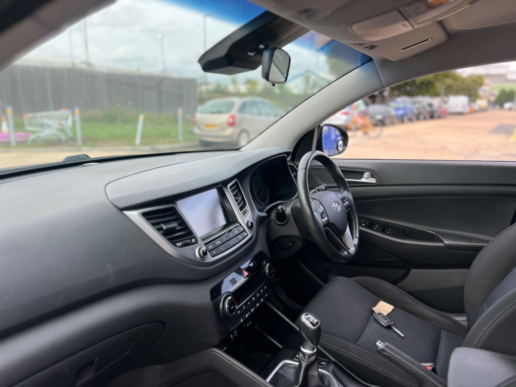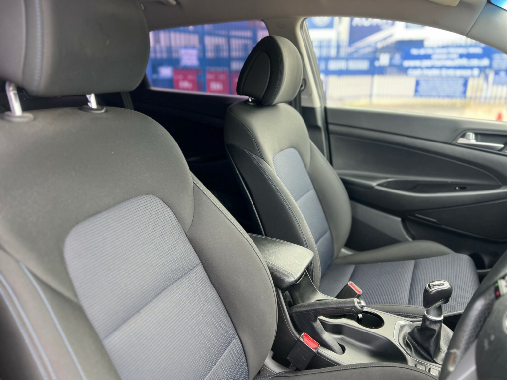 This 2018 Hyundai Tucson 1.7 CRDi Blue Drive SE Nav SUV with 71,881 miles is a diesel manual with Euro 6 (s/s) compliance and a MOT that expires on 31/03/2026. This 5-door, 5-seater SUV is ULEZ compliant and comes with features such as 12V Power Outlets in the front console and luggage compartment, 6 speakers, 8in touchscreen satellite navigation with traffic messaging channel, reversing camera, and Tom Tom LIVE services. It also includes Bluetooth connectivity and stereo RDS DAB digital radio with MP3 compatibility, making it a stylish and functional choice for those in search of a reliable and modern vehicle. v power outlet - front console and luggage compartment, 6 speakers - 2 tweeters - 2 front door - 2 rear door, 8in touchscreen satellite navigation with traffic messaging channel - reversing camera - mapcare and tom tom live services, bluetooth connectivity, stereo rds dab digital radio with mp3 compatibility, usb and aux connections, 17in alloy wheels, body colour bumpers, door mirrors - body coloured, door mirrors - electric adjustment and heated with power folding function, electric windows - front and rear with drivers anti-trap and one-touch up-down control, exterior door handles - body coloured, locking wheel nuts, positioning lights led, rear spoiler with integral led brake light, roof rails - silver, side body moulding - black, skid plates - front - silver, spare wheel - full size alloy, tinted glass with shade band, 6 airbags - front - front seat side and curtain, abs - anti-lock brake system with ebd - electronic brake-force distribution, active bonnet system, bas - brake assist system, childproof rear door locks, curtain airbag rollover sensor, dbc - downhill brake control, deadlocks, esp - electronic stability programme, ess - emergency stop signal, flex steering, front passenger airbag de-activation switch, hac - hill-start assist control, height adjustable front seatbelts, isofix child seat anchorage points - rear - outer rear, immobiliser, perimeter alarm, remote central locking, seatbelt anchor pre-tensioners - front, seatbelt reminder - front and rear, speed limit information system, speed sensitive automatic door locking, tsa - trailer stability assist, vsm - vehicle stability management, adjustable head restraints, adjustable intermittent front windscreen wipers with aero wiper blade, armrest - front with storage, armrest - rear centre with cup holders, automatic de-fog system for front windscreen, bottle holders - front centre console and door, climate control - dual zone with ioniser, courtesy light - front door, driver seat height adjustment, front map reading lights, glove compartment with cooling function and illumination, heated front seats, interior door handles - chrome effect, interior light - luggage compartment, interior trim - soft touch - door top and centre trim, leather wrapped steering wheel and gear knob, luggage hooks, luggage net, retractable load cover, seats - 60-40 split folding rear, seats - drivers electric lumbar support, seats - rear reclining, steering wheel audio and phone controls, sun visors with driver and passenger illuminated led vanity mirrors, sunglasses holder, automatic headlights with dusk sensor, daytime running lights - led, front fog lights, headlights - follow me home function, projection headlights with static cornering lights, rear lights - led, cruise control with speed limiter, digital clock, lane departure warning system with lane keeping assist, parking sensors - rear, power assisted steering, trip computer, tyre pressure monitoring system with individual tyre display, windscreen washer fluid sensor and warning indicator