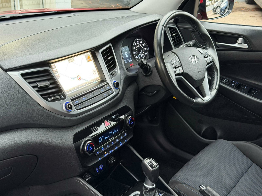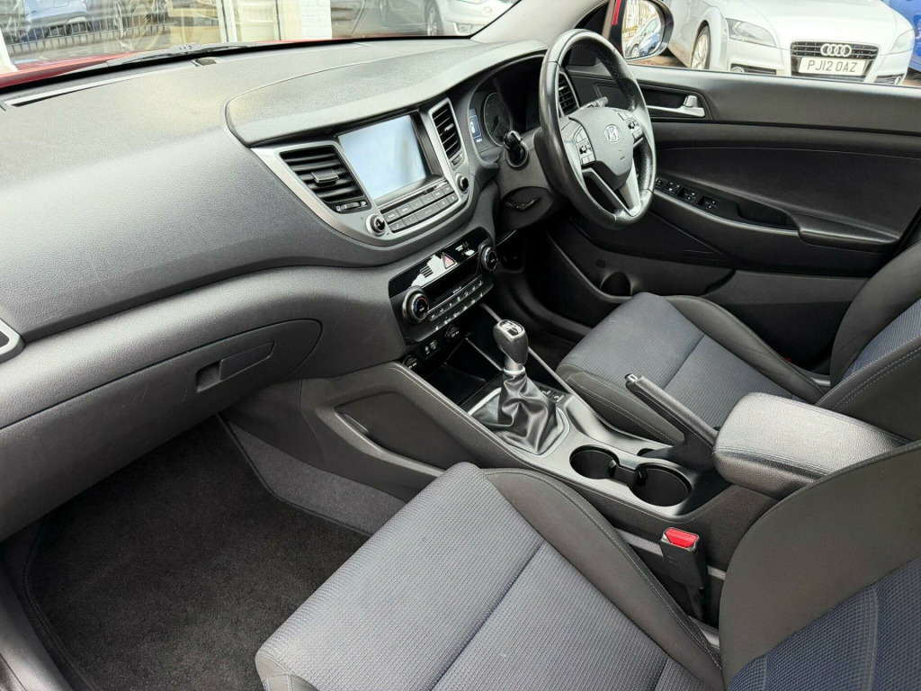 This 2017 Hyundai TUCSON CRDi SE Nav is presented with a clear vehicle history check and will be supplied with a full 12 months MOT for your peace of mind. This well maintained example features a 1.7 litre diesel engine, meeting Euro 6 emissions standards. Inside, you'll find an 8 inch touchscreen with satellite navigation, including traffic messaging and Tom Tom LIVE services, alongside a helpful reversing camera and parking assistance. Comfort is enhanced by dual zone climate control with an ioniser and heated front seats, while Bluetooth connectivity keeps you connected on the go.This TUCSON CRDi SE Nav offers excellent running costs, boasting an impressive fuel economy of up to 62 miles per gallon, which is significantly better than many other vehicles in its class. Its low CO2 emissions further contribute to its economical profile, and it also benefits from a low insurance group, making it an affordable choice for many drivers. Practicality is also a strong point, with generous boot space perfect for luggage or shopping.. 12V Power Outlet - Front Console and Luggage Compartment, 17in Alloy Wheels, 6 Airbags - Front - Front Seat Side and Curtain, 6 Speakers - 2 Tweeters - 2 Front Door - 2 Rear Door, 8in Touchscreen Satellite Navigation with Traffic Messaging Channel - Reversing Camera - Mapcare and Tom Tom LIVE Services, ABS - Anti-Lock Brake System with EBD - Electronic Brake-Force Distribution, Active Bonnet System, Adjustable Head Restraints, Adjustable Intermittent Front Windscreen Wipers with Aero Wiper Blade, Armrest - Front with Storage, Armrest - Rear Centre with Cup Holders, Automatic De-Fog System for Front Windscreen, Automatic Headlights with Dusk Sensor, BAS - Brake Assist System, Bluetooth Connectivity, Body Colour Bumpers, Bottle Holders - Front Centre Console and Door, Childproof Rear Door Locks, Climate Control - Dual Zone with Ioniser, Courtesy Light - Front Door, Cruise Control with Speed Limiter, Curtain Airbag Rollover Sensor, DBC - Downhill Brake Control, Daytime Running Lights - LED, Deadlocks, Digital Clock, Door Mirrors - Body Coloured, Door Mirrors - Electric Adjustment and Heated with Power Folding Function, Driver Seat Height Adjustment, ESP - Electronic Stability Programme, ESS - Emergency Stop Signal, Electric Windows - Front and Rear with Drivers Anti-Trap and One-Touch Up-Down Control, Exterior Door Handles - Body Coloured, Flex Steering, Front Fog Lights, Front Map Reading Lights, Front Passenger Airbag De-Activation Switch, Glove Compartment with Cooling Function and Illumination, HAC - Hill-Start Assist Control, Headlights - Follow Me Home Function, Heated Front Seats, Height Adjustable Front Seatbelts, ISOFIX Child Seat Anchorage Points - Rear - Outer Rear, Immobiliser, Interior Door Handles - Chrome Effect, Interior Light - Luggage Compartment, Interior Trim - Soft Touch - Door Top and Centre Trim, Lane Departure Warning System with Lane Keeping Assist, Leather Wrapped Steering Wheel and Gear Knob, Locking Wheel Nuts, Luggage Hooks, Luggage Net, Parking Sensors - Rear, Perimeter Alarm, Positioning Lights LED, Power Assisted Steering, Projection Headlights with Static Cornering Lights, Rear Lights - LED, Rear Spoiler with Integral LED Brake Light, Remote Central Locking, Retractable Load Cover, Roof Rails - Silver, Seatbelt Anchor Pre-Tensioners - Front, Seatbelt Reminder - Front and Rear, Seats - 60-40 Split Folding Rear, Seats - Drivers Electric Lumbar Support, Seats - Rear Reclining, Side Body Moulding - Black, Skid Plates - Front - Silver, Spare Wheel - Full Size Alloy, Speed Limit Information System, Speed Sensitive Automatic Door Locking, Steering Wheel Audio and Phone Controls, Stereo RDS DAB Digital Radio with MP3 Compatibility, Sun Visors with Driver and Passenger Illuminated LED Vanity Mirrors, Sunglasses Holder, TSA - Trailer Stability Assist, Tinted Glass with Shade Band, Trip Computer, Tyre Pressure Monitoring System with Individual Tyre Display, USB and AUX Connections, VSM - Vehicle Stability Management, Windscreen Washer Fluid Sensor and Warning Indicator.