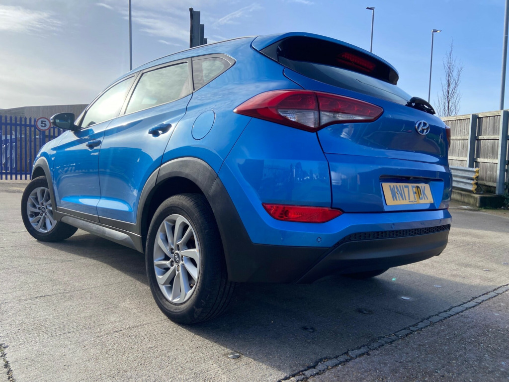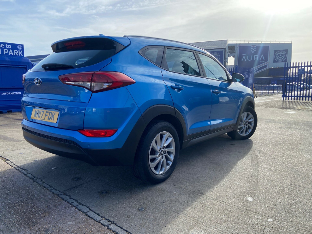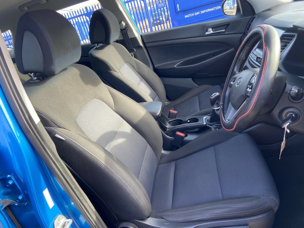 This 2017 Hyundai Tucson 1.7 CRDi Blue Drive SE Nav SUV with 72,321 miles on the clock is the perfect family vehicle, boasting 5 spacious seats and 5 doors for easy access. Powered by a reliable diesel engine, this SUV is ULEZ compliant and comes with an MOT valid until 02/05/2026, giving you peace of mind for years to come. The Ara Blue exterior is complemented by convenient features such as a 8in touchscreen satellite navigation, reversing camera, and Bluetooth connectivity. With 12V power outlets and 6 speakers for your entertainment needs, this SUV offers both comfort and practicality for all your journeys. Don't miss out on this stylish and versatile vehicle that is ready to handle any adventure.PLEASE ASK ABOUT OUR INCREDIBLE OFFERS ON OUR WARRANTIES. v power outlet - front console and luggage compartment, 6 speakers - 2 tweeters - 2 front door - 2 rear door, 8in touchscreen satellite navigation with traffic messaging channel - reversing camera - mapcare and tom tom live services, bluetooth connectivity, stereo rds dab digital radio with mp3 compatibility, usb and aux connections, 17in alloy wheels, body colour bumpers, door mirrors - body coloured, door mirrors - electric adjustment and heated with power folding function, electric windows - front and rear with drivers anti-trap and one-touch up-down control, exterior door handles - body coloured, locking wheel nuts, positioning lights led, rear spoiler with integral led brake light, roof rails - silver, side body moulding - black, skid plates - front - silver, spare wheel - full size alloy, tinted glass with shade band, 6 airbags - front - front seat side and curtain, abs - anti-lock brake system with ebd - electronic brake-force distribution, active bonnet system, bas - brake assist system, childproof rear door locks, curtain airbag rollover sensor, dbc - downhill brake control, deadlocks, esp - electronic stability programme, ess - emergency stop signal, flex steering, front passenger airbag de-activation switch, hac - hill-start assist control, height adjustable front seatbelts, isofix child seat anchorage points - rear - outer rear, immobiliser, perimeter alarm, remote central locking, seatbelt anchor pre-tensioners - front, seatbelt reminder - front and rear, speed limit information system, speed sensitive automatic door locking, tsa - trailer stability assist, vsm - vehicle stability management, adjustable head restraints, adjustable intermittent front windscreen wipers with aero wiper blade, armrest - front with storage, armrest - rear centre with cup holders, automatic de-fog system for front windscreen, bottle holders - front centre console and door, climate control - dual zone with ioniser, courtesy light - front door, driver seat height adjustment, front map reading lights, glove compartment with cooling function and illumination, heated front seats, interior door handles - chrome effect, interior light - luggage compartment, interior trim - soft touch - door top and centre trim, leather wrapped steering wheel and gear knob, luggage hooks, luggage net, retractable load cover, seats - 60-40 split folding rear, seats - drivers electric lumbar support, seats - rear reclining, steering wheel audio and phone controls, sun visors with driver and passenger illuminated led vanity mirrors, sunglasses holder, automatic headlights with dusk sensor, daytime running lights - led, front fog lights, headlights - follow me home function, projection headlights with static cornering lights, rear lights - led, cruise control with speed limiter, digital clock, lane departure warning system with lane keeping assist, parking sensors - rear, power assisted steering, trip computer, tyre pressure monitoring system with individual tyre display, windscreen washer fluid sensor and warning indicator
