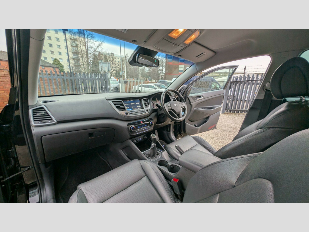 Discover this 2017 Hyundai TUCSON CRDi Sport Edition, a well presented example of this popular SUV. This Sport Edition model is equipped with a 1.7 litre diesel engine and meets Euro 6 emission standards. Inside, you'll find a host of convenient features designed for comfort and ease of use, including dual zone climate control with an ioniser, heated front seats for those colder mornings, and an 8 inch touchscreen satellite navigation system complete with traffic messaging and a reversing camera. Bluetooth connectivity is also included, alongside front and rear parking sensors to assist with manoeuvring.This Hyundai TUCSON offers excellent running costs, achieving an impressive highlight fuel economy of 62 miles per gallon. Its low CO2 emissions are also a highlight, indicating a more environmentally conscious choice. Furthermore, this model benefits from a low insurance group, which can help to keep your running expenses down. You'll also appreciate the generous boot space, making it a practical choice for families or those who need to carry larger items. These highlights demonstrate how this TUCSON stands out from other similar vehicles on the market. v power outlet - front console and luggage compartment, 19in alloy wheels, 6 airbags - front - front seat side and curtain, 6 speakers - 2 tweeters - 2 front door - 2 rear door, 8in touchscreen satellite navigation with traffic messaging channel - reversing camera - mapcare and tom tom live services, abs - anti-lock brake system with ebd - electronic brake-force distribution, active bonnet system, adjustable head restraints, adjustable intermittent front windscreen wipers with aero wiper blade, armrest - front with storage, armrest - rear centre with cup holders, automatic de-fog system for front windscreen, automatic dimming rear view mirror with compass, automatic headlights with dusk sensor, automatic windscreen wipers with rain sensor, bas - brake assist system, bluetooth connectivity, body colour bumpers, bottle holders - front centre console and door, childproof rear door locks, chrome effect beltline moulding, climate control - dual zone with ioniser, courtesy light - front door, cruise control with speed limiter, curtain airbag rollover sensor, dbc - downhill brake control, daytime running lights - led, deadlocks, digital clock, door mirrors - body coloured, door mirrors - electric adjustment and heated with power folding function and puddle lamps, driver seat height adjustment, drivers and passengers seat electric adjustment, esp - electronic stability programme, ess - emergency stop signal, electric windows - front and rear with drivers anti-trap and one-touch up-down control, exterior door handles - body coloured, flex steering, front fog lights, front map reading lights, front passenger airbag de-activation switch, front windscreen wiper de-icer, glove compartment with cooling function and illumination, hac - hill-start assist control, headlights - follow me home function, heated front seats, heated rear seats, height adjustable front seatbelts, isofix child seat anchorage points - rear - outer rear, immobiliser, interior door handles - chrome effect, interior light - luggage compartment, interior trim - soft touch - door top and centre trim, lane departure warning system with lane keeping assist, leather effect drivers knee bolster, leather wrapped steering wheel and gear knob, locking wheel nuts, luggage hooks, luggage net, parking sensors - front and rear, passenger seat height adjustment - electric, perimeter alarm, positioning lights led, power assisted steering, privacy glass - rear windows and tailgate, projection headlights with static cornering lights, radiator grille - chrome effect, rear lights - led, rear spoiler with integral led brake light, remote central locking, retractable load cover, roof rails - silver, seatbelt anchor pre-tensioners - front, seatbelt reminder - front and rear, seats - 60-40 split folding rear, seats - drivers electric lumbar support, seats - rear reclining, side body moulding - silver, skid plates - front - silver, solar glass with shade band, space saver emergency spare wheel, speed limit information system, speed sensitive automatic door locking, steering wheel audio and phone controls, stereo rds dab digital radio with mp3 compatibility, sun visors with driver and passenger illuminated led vanity mirrors, sunglasses holder, supervision instrument cluster, tsa - trailer stability assist, tinted glass with shade band, trip computer, tyre pressure monitoring system with individual tyre display, usb and aux connections, vsm - vehicle stability management, windscreen washer fluid sensor and warning indicator, leather - black