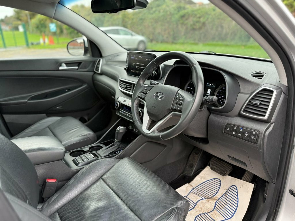 Here for sale at Leigh Cars Ltd we are delighted to present this superb example of the popular and versatile ULEZ EXEMPT top specification Hyundai Tucson 2.0 CRDi MHEV Premium SE 184bhp automatic 5 door SUV finished in silver metallic paint. This vehicle comes with a superb full service history (5 Stamps) last completed in August 2025. As part of our thorough pre sale preparations the vehicle comes fully safety checked and serviced and comes with a brand new MOT - expiry September 2026. This particular model comes with class leading specification such as full black leather interior, electric front seats, heated front + rear seats, cooling front seats, heated steering wheel, Satellite Navigation, Apple Car Play + Android Auto, electric power tailgate, panoramic slide + tilt sunroof, 360 degree parking cameras, front + rear parking sensors, blind spot monitor (BLIS), KRELL premium sound system with subwoofer, smart adaptive cruise control with speed control, dual zone climate controlled air conditioning, bluetooth connectivity + USB, wireless charging pad, voice command, DAB radio, automatic headlights + wipers, power fold electric mirrors, electric windows + mirrors, alloy wheels, keyless entry + start, remote central locking + much much more. This great value petrol automatic SUV would be ideal for any growing family as it comes with an abundance of space and practicality for all uses as well as some fantastic specification. It also has a fantastic higher up driving position Leather - Black, Platinum Silver, 12V Power Outlet - Front Console and Lug, 19in Alloy Wheels, 6 Airbags - Front - Front Seat Side and , 8in Touchscreen Satellite Navigation inc, ABS - Anti-Lock Brake System, Active Bonnet System, Adjustable Head Restraints, Adjustable Intermittent Front Windscreen, Air Conditioning - Dual Zone Climate Con, Armrest - Front with Storage, Armrest - Rear Centre with Cup Holders, Auto Hold Function, Automatic Dimming Rear View Mirror with , Automatic Headlights with Dusk Sensor, Automatic Windscreen Wipers with Rain Se, Autonomous Emergency Braking - AEB, BAS - Brake Assist System, Blind Spot Detection System - BSD, Bluetooth Connectivity, Body Colour Bumpers, B