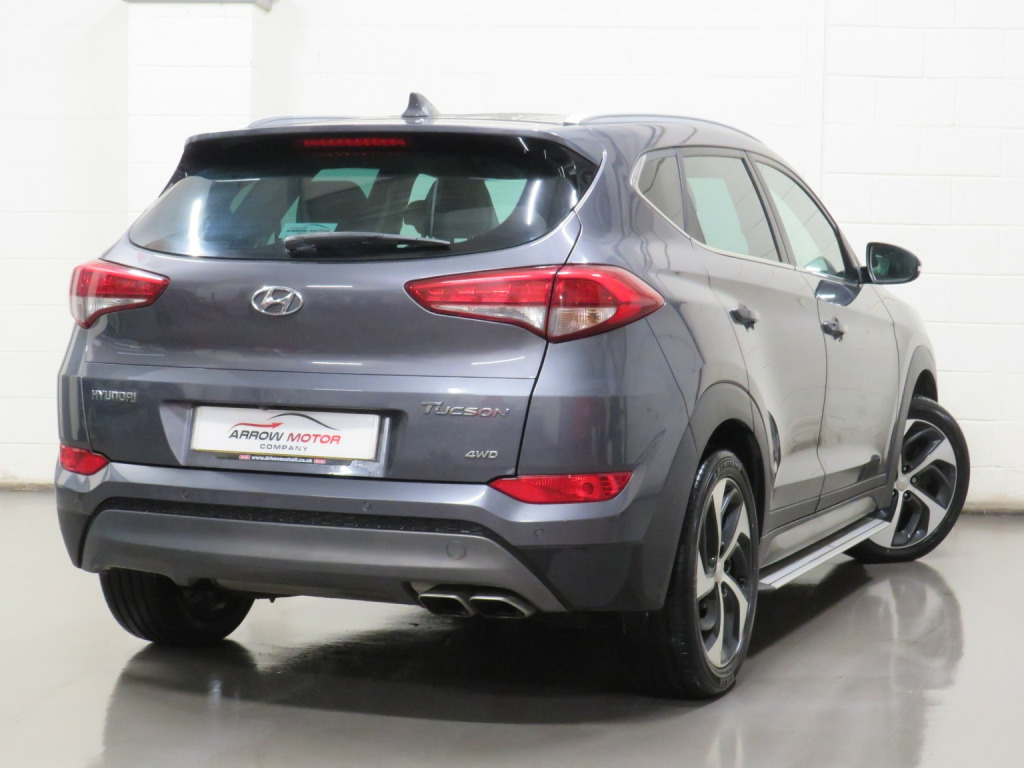Arrow Motor Company are pleased to present this fantastic Hyundai Tucson CRDi 4WD Premium, finished in the stunning Micron Grey Metallic Paintwork, with Full Beige Leather Interior. Equipped with Hyundais 2.0-Litre Diesel engine producing 134bhp, whilst providing the most economical of drivers with an incredible 54.3mpg, with potential to rise to 58.9mpg in Extra-Urban environments. This Particular example comes with a (FSH) Full Service History. This vehicle also benefits from the following impressive list of features below. , ↓ ↓ ↓ ↓ ↓ ↓ ↓ ↓ ↓ ↓ ↓ ↓ ↓ ↓ ↓ ↓ ↓ ↓ ↓ ↓ ↓, , …. Interior Features…, , Satellite Navigation | Full Black Leather Front and Rear Seats | Heated Front Seats | Heated Rear Seats | Fully Electrically Adjustable Front Seats | Rear Bumper Parking Camera Display | Front and Rear Ultrasonic Parking Sensor Display | Blind Spot Detection (BSD) | 8 Inch Multimedia Touchscreen Display | DAB Radio | Miniature Cluster Display | Dual Zone Automatic Climate Control | Bluetooth Connectivity | Cruise Control | 6x Surround Sound Speaker System | Downhill Brake Control | Lane Keeping Assist | Autonomous Emergency Braking | Forward Collision Warning System | Rear Cross Traffic Alert | Electrically Adjustable Folding Wing Mirrors | Front and Rear Electric Windows | Black Leather Multifunctional Steering Wheel | 2x 12v Port | USB Port | AUX Port | Rear Leather Deployable Arm Rest with Cup Holders | , , … Exterior Features…, , 19-Inch Metallic Grey Diamond Cut Alloy Wheels | Rear Parking Camera | Front and Rear Ultrasonic Parking Sensors | Rear Privacy Glass | Silver Roof Rails | Automatic Headlights | LED Day Time Running Lights | Wing Mirror Mounted Indicators | Chrome Front Grill | Chrome Door Handles | Body Coloured Shark Fin Aerial | Rear Heated Window | Silver Side Skirts |