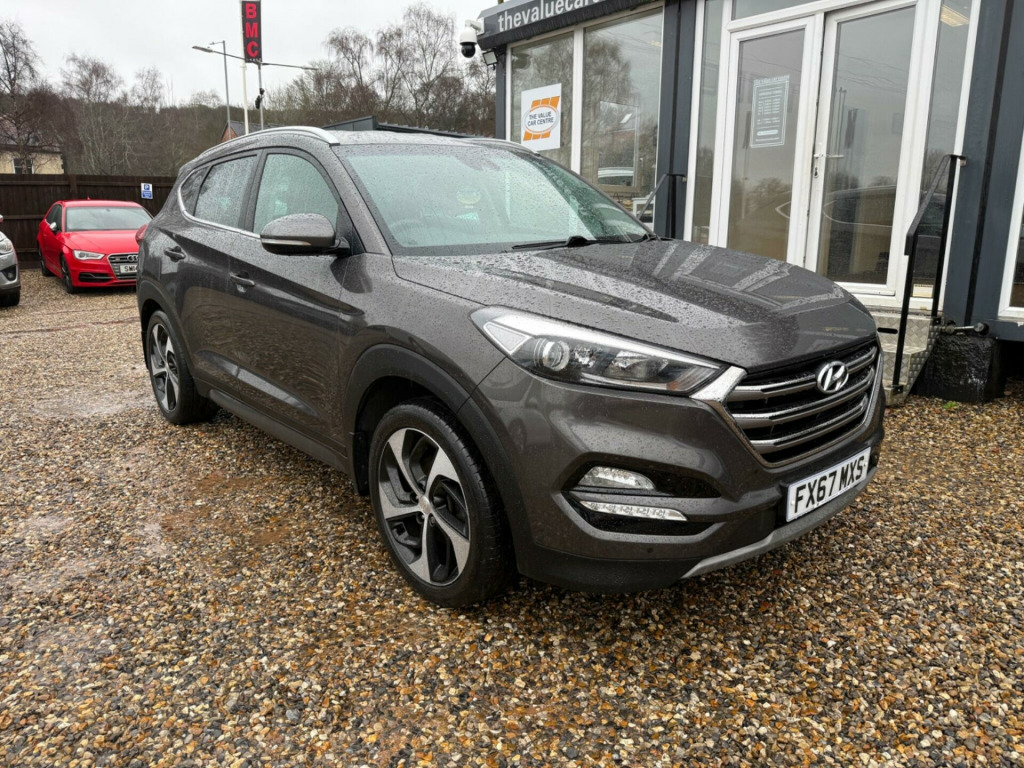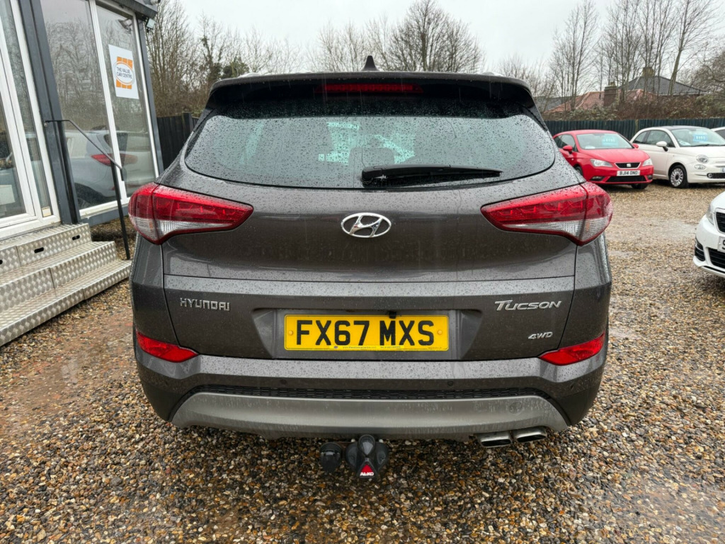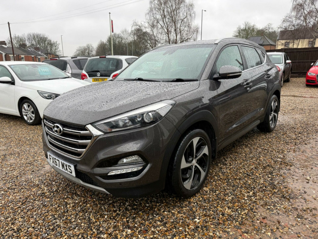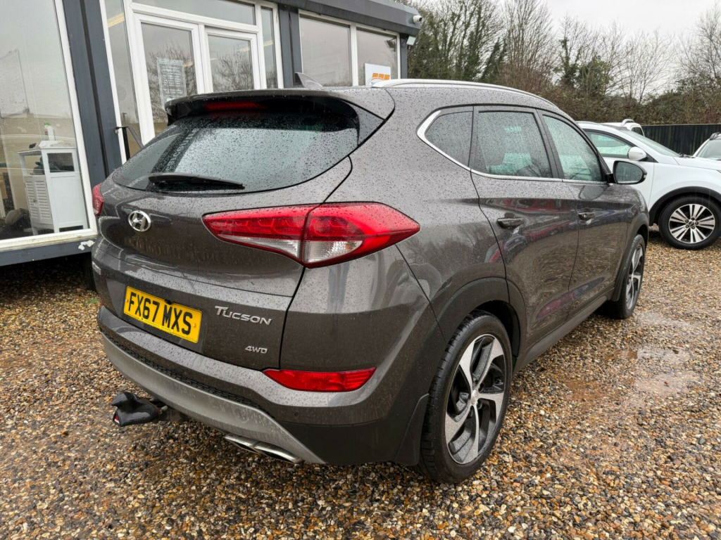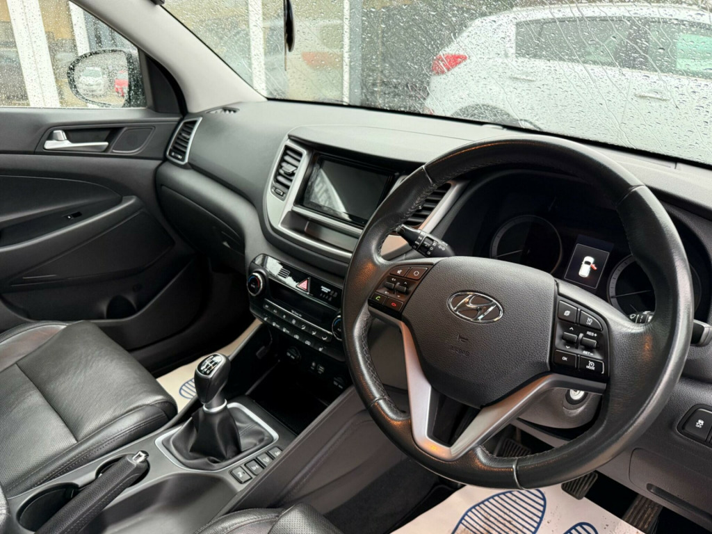 This 2017 Hyundai TUCSON CRDi Premium boasts a clear vehicle history, offering you peace of mind. This four wheel drive model is powered by a 2.0 litre diesel engine and meets Euro 6 emissions standards. Inside, you'll find a Premium trim level that includes dual zone climate control with an ioniser, automatic headlights with a dusk sensor, and heated front and rear seats for enhanced comfort.The TUCSON CRDi Premium is designed to impress with a highlight fuel economy of 54 miles per gallon, indicating it is more efficient than many similar vehicles. Its low insurance group also suggests lower running costs compared to other cars in its class. Furthermore, this model offers substantial boot space, making it a practical choice for families or those needing extra room, and it has a towing weight of 2200 kg.. 12V Power Outlet - Front Console and Luggage Compartment, 19in Alloy Wheels, 6 Airbags - Front - Front Seat Side and Curtain, 6 Speakers - 2 Tweeters - 2 Front Door - 2 Rear Door, 8in Touchscreen Satellite Navigation with Traffic Messaging Channel - Reversing Camera - Mapcare and Tom Tom LIVE Services, ABS - Anti-Lock Brake System with EBD - Electronic Brake-Force Distribution, Active Bonnet System, Adjustable Intermittent Front Windscreen Wipers with Aero Wiper Blade, Armrest - Front with Storage, Armrest - Rear Centre with Cup Holders, Automatic De-Fog System for Front Windscreen, Automatic Dimming Rear View Mirror with Compass, Automatic Headlights with Dusk Sensor, Automatic Windscreen Wipers with Rain Sensor, Autonomous Emergency Brake, BAS - Brake Assist System, Blind Spot Monitor, Bluetooth Connectivity, Body Colour Bumpers, Body Coloured Door Handles and Mirrors, Bottle Holders - Front Centre Console and Door, Childproof Rear Door Locks, Chrome Effect Beltline Moulding, Climate Control - Dual Zone with Ioniser, Courtesy Light - Front Door, Cruise Control with Speed Limiter, Curtain Airbag Rollover Sensor, DBC - Downhill Brake Control, Daytime Running Lights - LED, Deadlocks, Digital Clock, Door Mirrors - Electric Adjustment and Heated with Power Folding Function, Door Mirrors - Electric Adjustment and Heated with Power Folding Function and Puddle Lamps, Door Mirrors - Electric Folding - Electric Adjustment and Heated, Driver Seat Height Adjustment, Drivers and Passengers Seat Electric Adjustment, ESP - Electronic Stability Programme, ESS - Emergency Stop Signal, Electric Windows - Front and Rear with Drivers Anti-Trap and One-Touch Up-Down Control, Flex Steering, Front Fog Lights, Front Map Reading Lights, Front Passenger Airbag De-Activation Switch, Front Seat Back Pockets - Driver and Passenger Seat, Front Windscreen Wiper De-Icer, Glove Compartment with Cooling Function and Illumination, HAC - Hill-Start Assist Control, Head Restraints - Vertical and Horizontal Adjustment, Headlights - Follow Me Home Function, Heated Front Seats, Heated Rear Seats, Height Adjustable Front Seatbelts, ISOFIX Child Seat Anchorage Points - Rear - Outer Rear, Immobiliser, Interior Door Handles - Chrome Effect, Interior Light - Luggage Compartment, Interior Trim - Soft Touch - Door Top and Centre Trim, Lane Departure Warning System with Lane Keeping Assist, Leather Effect Drivers Knee Bolster, Leather Wrapped Steering Wheel and Gear Knob, Locking Wheel Nuts, Luggage Hooks, Luggage Net, Parking Sensors - Front and Rear, Passenger Seat Height Adjustment - Electric, Perimeter Alarm, Positioning Lights LED, Power Assisted Steering, Privacy Glass, Projection Headlights with Static Cornering Lights, Radiator Grille - Chrome Effect, Rear Cross Traffic Alert - RCTA, Rear Lights - LED, Rear Spoiler with Integral LED Brake Light, Remote Central Locking, Retractable Load Cover, Roof Rails, Seatbelt Anchor Pre-Tensioners - Front, Seatbelt Reminder - Front and Rear, Seats - 60-40 Split Folding Rear, Seats - Drivers Electric Lumbar Support, Seats - Rear Reclining, Side Body Moulding - Silver, Skid Plate - Rear - Silver, Skid Plates - Front - Silver, Solar Glass with Shade Band, Spare Wheel - Full Size Alloy, Speed Limit Information System, Speed Sensitive Automatic Door Locking, Steering Column - Height and Reach Adjustable, Steering Wheel Audio and Phone Controls, Stereo RDS DAB Digital Radio with MP3 Compatibility, Sun Visors with Vanity Mirrors and Driver Ticket Holder and Illumination, Sunglasses Holder, Supervision Instrument Cluster, TSA - Trailer Stability Assist, Tinted Glass with Shade Band, Trip Computer, Twin Exhaust Finisher, Tyre Pressure Monitoring System with Individual Tyre Display, USB and AUX Connections, VSM - Vehicle Stability Management, Windscreen Washer Fluid Sensor and Warning Indicator.