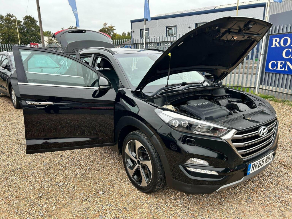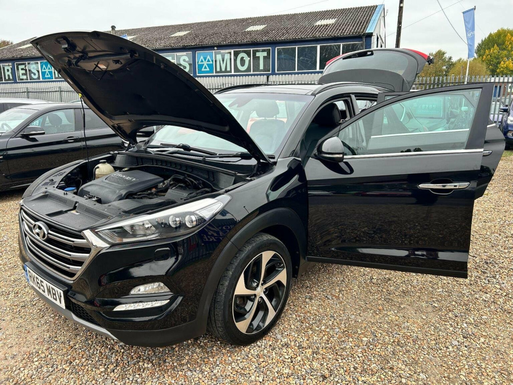 Romsey Car Centre are delighted to offer this Lovely Hyundai Tucson Premium, black, with complementing leather seats. This spacious Hyundai comes with service history done at 20,759 miles, 47,421 miles, 50,083 miles, and 103,098 miles up to date with a long Mot. Features include Panoramic roof, Reverse Camera, Sat NAv parking sensors, Black Leather Trim, Air conditioning, Dual climate Control, Bluetooth, Auto lights, Electric adjustable front seats, Heated front seats