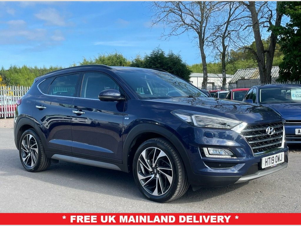 The 2019 Hyundai Tucson 2.0 CRDi Premium SE is a well-equipped mid-size SUV that combines comfort, practicality, and strong performance. Powered by a 2.0-litre CRDi diesel engine producing 185 bhp, it's paired with a smooth automatic gearbox and 4WD system, making it capable both on the road and in tougher conditions. The Premium SE trim sits near the top of the Tucson range, offering luxury features such as leather upholstery, heated and ventilated front seats, panoramic sunroof, premium sound system, advanced infotainment, and a suite of driver-assistance technology. As a 5-door SUV, it provides generous interior space with a flexible rear seat layout and a good-sized boot, making it ideal for families. With fuel economy of around 40 mpg combined, it balances performance and efficiency for its class. Rivals include the Kia Sportage, Nissan Qashqai, and Volkswagen Tiguan, but the Tucson distinguishes itself with its high equipment levels, reliability, and value for money. Leather - Black, Stellar Blue, 12V Power Outlet - Front Console and Lug, 19in Alloy Wheels, 6 Airbags - Front - Front Seat Side and , 8in Touchscreen Satellite Navigation inc, ABS - Anti-Lock Brake System, Active Bonnet System, Adjustable Head Restraints, Adjustable Intermittent Front Windscreen, Air Conditioning - Dual Zone Climate Con, Armrest - Front with Storage, Armrest - Rear Centre with Cup Holders, Auto Hold Function, Automatic Dimming Rear View Mirror with , Automatic Headlights with Dusk Sensor, Automatic Windscreen Wipers with Rain Se, Autonomous Emergency Brake, BAS - Brake Assist System, Blind Spot Detection System - BSD, Bluetooth Connectivity, Body Colour Bumpers, Bottle Holde