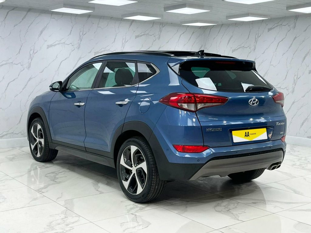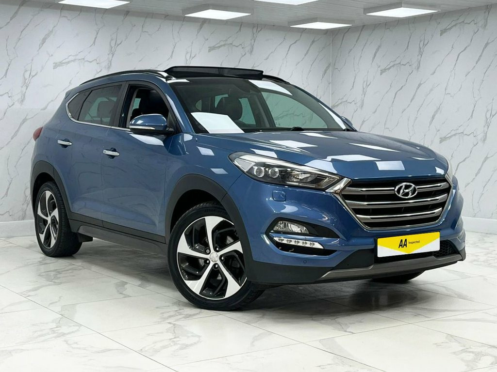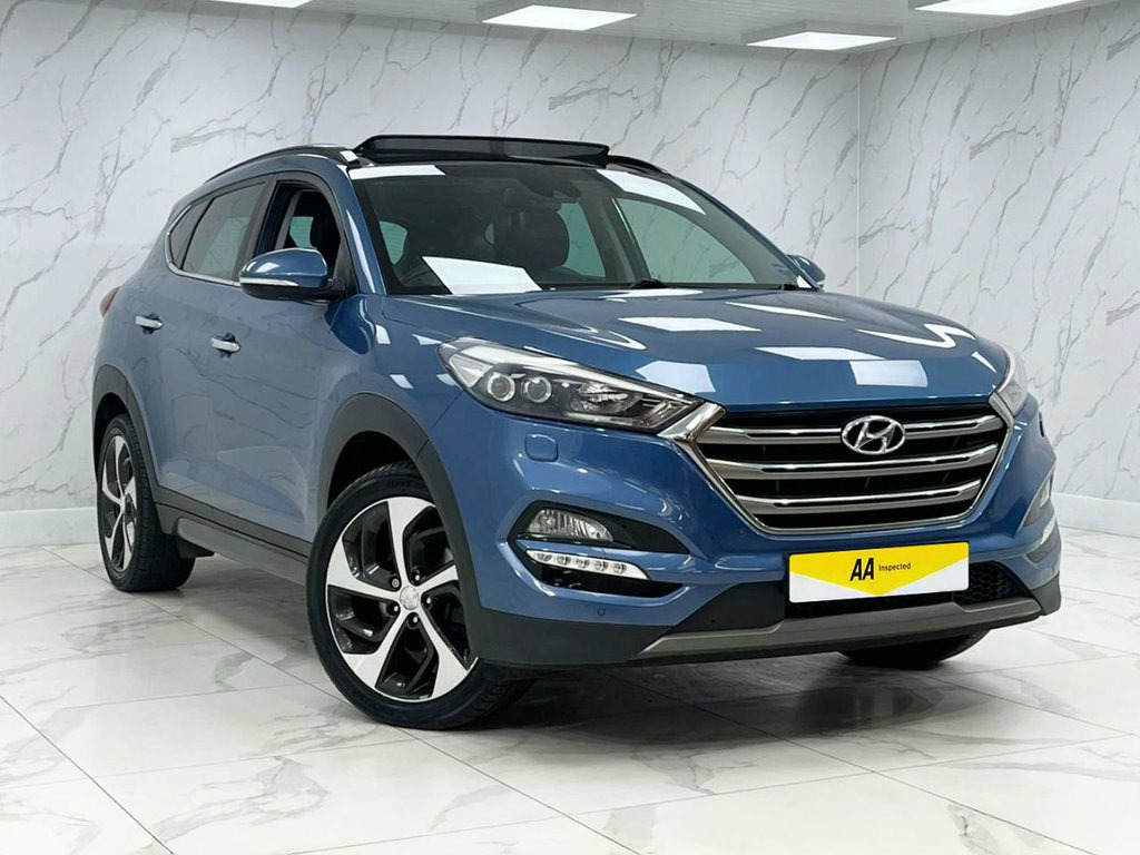 This 2016 Hyundai TUCSON CRDi Premium SE boasts a full service history and a clear vehicle history check, offering excellent provenance for its low mileage of 72000 miles. This Four Wheel Drive model is powered by a 2.0L Diesel Euro 6 engine and comes with a 12 month MOT for your peace of mind. Inside, you'll find a wealth of premium features including dual zone climate control with ioniser, heated front seats, and an 8in touchscreen satellite navigation system complete with a reversing camera and traffic messaging. For added safety and convenience, this TUCSON includes front and rear parking sensors with parking assistance, and a blind spot monitor system. The Premium SE trim level highlights how this Hyundai TUCSON stands out from other similar vehicles. Its impressive 2200 kg towing weight makes it a capable choice for various needs, while its low insurance group rating further enhances its appeal. This well maintained and feature rich SUV is ready for its next adventure. Stargazing Blue, Leather - Black, 12V Power Outlet - Front Console and Lug, 19in Alloy Wheels, 6 Airbags - Front - Front Seat Side and , 6 Speakers - 2 Tweeters - 2 Front Door -, 8in Touchscreen Satellite Navigation wit, ABS - Anti-Lock Brake System with EBD - , Active Bonnet System, Adjustable Intermittent Front Windscreen, Armrest - Front with Storage, Armrest - Rear Centre with Cup Holders, Automatic De-Fog System for Front Windsc, Automatic Dimming Rear View Mirror with , Automatic Headlights with Dusk Sensor, Automatic Windscreen Wipers with Rain Se, Autonomous Emergency Brake, BAS - Brake Assist System, Blind Spot Monitor, Bluetooth Connectivity, Body Colour Bumpers, Bottle Holders - F