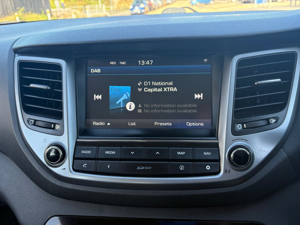 This 2016 Hyundai Tucson 2.0 CRDi SE Nav SUV 5dr Diesel Manual 4WD Euro 6 (136 ps) is a ULEZ compliant vehicle with 119000 miles on the clock and MOT that expires on 09/10/2026. This 5-seater, 5-door SUV is perfect for those looking for a spacious and reliable family car. Powered by a Diesel engine, it comes with features such as 8in Touchscreen Satellite Navigation with Traffic Messaging Channel, Reversing Camera, and Tom Tom LIVE Services, as well as Bluetooth Connectivity and Stereo RDS DAB Digital Radio with MP3 Compatibility. Other features include 12V Power Outlet in both the Front Console and Luggage Compartment and 6 Speakers spread throughout the car. Whether you're navigating the city streets or venturing off-road, this Hyundai Tucson is designed to provide comfort, safety, and efficiency for all your driving needs. v power outlet - front console and luggage compartment, 6 speakers - 2 tweeters - 2 front door - 2 rear door, 8in touchscreen satellite navigation with traffic messaging channel - reversing camera - mapcare and tom tom live services, bluetooth connectivity, stereo rds dab digital radio with mp3 compatibility, usb and aux connections, 17in alloy wheels, body colour bumpers, body coloured door handles and mirrors, door mirrors - electric adjustment and heated with power folding function, door mirrors - electric folding - electric adjustment and heated, electric windows - front and rear with drivers anti-trap and one-touch up-down control, locking wheel nuts, positioning lights led, rear spoiler with integral led brake light, roof rails, side body moulding - black, skid plate - rear - silver, skid plates - front - silver, spare wheel - full size alloy, tinted glass with shade band, twin exhaust finisher, 6 airbags - front - front seat side and curtain, abs - anti-lock brake system with ebd - electronic brake-force distribution, active bonnet system, bas - brake assist system, childproof rear door locks, curtain airbag rollover sensor, dbc - downhill brake control, deadlocks, esp - electronic stability programme, ess - emergency stop signal, flex steering, front passenger airbag de-activation switch, hac - hill-start assist control, height adjustable front seatbelts, isofix child seat anchorage points - rear - outer rear, immobiliser, perimeter alarm, remote central locking, seatbelt anchor pre-tensioners - front, seatbelt reminder - front and rear, speed limit information system, speed sensitive automatic door locking, tsa - trailer stability assist, vsm - vehicle stability management, adjustable intermittent front windscreen wipers with aero wiper blade, armrest - front with storage, armrest - rear centre with cup holders, automatic de-fog system for front windscreen, bottle holders - front centre console and door, climate control - dual zone with ioniser, courtesy light - front door, driver seat height adjustment, front map reading lights, front seat back pockets - driver and passenger seat, glove compartment with cooling function and illumination, head restraints - vertical and horizontal adjustment, heated front seats, interior door handles - chrome effect, interior light - luggage compartment, interior trim - soft touch - door top and centre trim, leather wrapped steering wheel and gear knob, luggage hooks, luggage net, retractable load cover, seats - 60-40 split folding rear, seats - drivers electric lumbar support, seats - rear reclining, steering column - height and reach adjustable, steering wheel audio and phone controls, sun visors with vanity mirrors and driver ticket holder and illumination, sunglasses holder, automatic headlights with dusk sensor, daytime running lights - led, front fog lights, headlights - follow me home function, projection headlights with static cornering lights, rear lights - led, cruise control with speed limiter, digital clock, lane departure warning system with lane keeping assist, parking sensors - rear, power assisted steering, trip computer, tyre pressure monitoring system with individual tyre display, windscreen washer fluid sensor and warning indicator