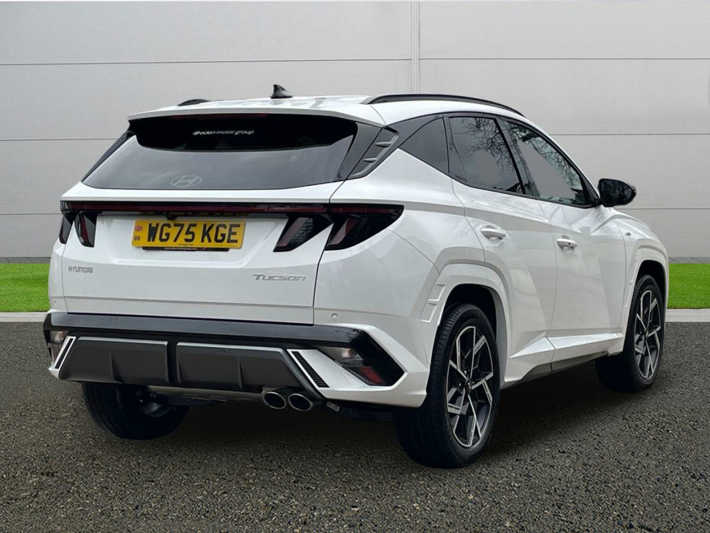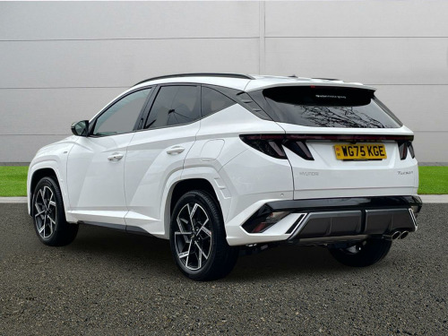 Driver Convenience,Cruise Control,Drive Mode Select,Forward Collision-Avoidance Assist - FCA with Car - Pedestrian and Cycle,Forward Collision-Avoidance Assist - Junction Turning,Parking Sensors - Front and Rear,Parking System - Rear Camera and Guidance System,Tyre Pressure Monitoring System with Individual Tyre Pressure Display,Windscreen Washer Fluid Sensor and Warning IndicatorEntertainment,12.3in Widescreen Navigation with Bluelink and Mapcare,12V Power Outlet - Front Centre Facia and Luggage Compartment,BlueLink,Bluetooth Connectivity,eCall,Over The Air - OTA - Navigation Map Updates,Phone Connection - Android Auto,Phone Connection - Apple CarPlay,Speakers - 2 Tweeters - 2 Front - 2 Rear,Trailer Wiring Package,USB C - Front x2,USB C - Rear x2,Wireless Phone Charging PadExterior,19in Alloy Wheels - N-Line Design,Bumper Mouldings - Glossy Black,Door Mirrors - Electric Adjustment and Heated with Power Folding Function,Door Mirrors with Integrated Indicators - Body Coloured,Electric Windows - Front and Rear with Anti-Trap Mechanism and One Touch Control,Exterior Door Handles - Body Coloured,Locking Wheel Nuts,N Line Design Package,Privacy Glass - Rear Windows and Tailgate,Roof Rails,Tyre Repair Kit,Wheel Arch Inserts - Body ColouredInterior,64 Colour Selectable Ambient interior Lighting,Adjustable Head Restraints,Air Conditioning - Climate Control - Dual Zone,Armrest - Front with Storage,Armrest - Rear with Cup Holders,Automatic Dimming Rear View Mirror,Automatic Windscreen Wipers with Rain Sensor,Bottle Holders - Front Centre Console and Doors,Drivers Seat Height Adjustment - Manual,Drivers Supervision Instrument Cluster with LCD Display 12.3in,Front Passengers Seat Height Adjustment - Manual,Heated Front Seats,Heated Steering Wheel,Interior Light - Luggage Compartment,Interior Light - Map Reading Lights,Lane Follow Assist - LFA,Leather Wrapped Steering Wheel and Gear Knob,Luggage Cover,Luggage Hooks,Luggage Net,Metal Pedals,N Line Interior Design Package,Rear Seat - Remote Folding Function,Rear Side Window Blind,Seats - 40-20-40 Split Folding Rear,Smart Electric Tailgate,Soft Touch Rear Door Paneling,Steering Wheel Audio and Phone Controls,Sun Visors with Driver and Passenger Illuminated LED Vanity Mirrors,Touch Sensitive Climate Controls with Temperature Dials,TUCSON Branded Metal Door Scuff Plate,Under Floor Storage in BootEntertainment,12.3in Widescreen Navigation with Bluelink and Mapcare,12V Power Outlet - Front Centre Facia and Luggage Compartment,BlueLink,Bluetooth Connectivity,eCall,Over The Air - OTA - Navigation Map Updates,Phone Connection - Android Auto,Phone Connection - Apple CarPlay,Speakers - 2 Tweeters - 2 Front - 2 Rear,Trailer Wiring Package,USB C - Front x2,USB C - Rear x2,Wireless Phone Charging Pad