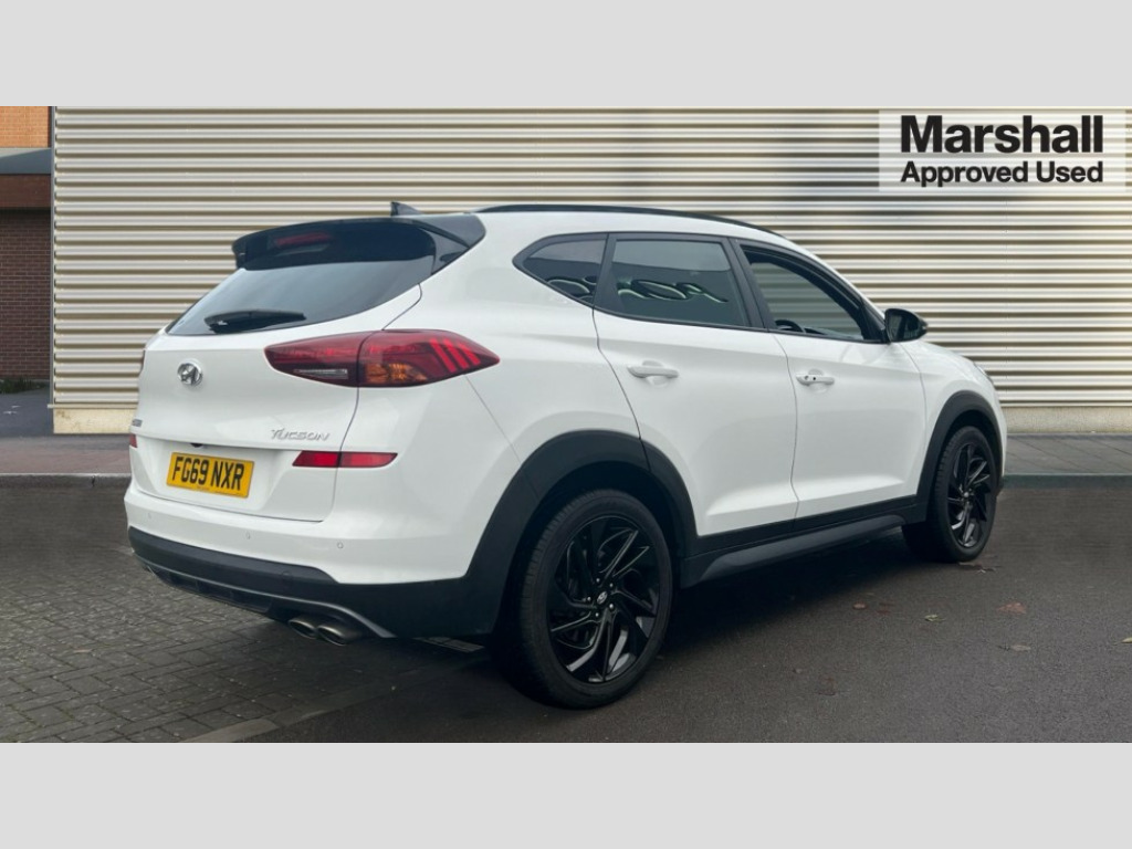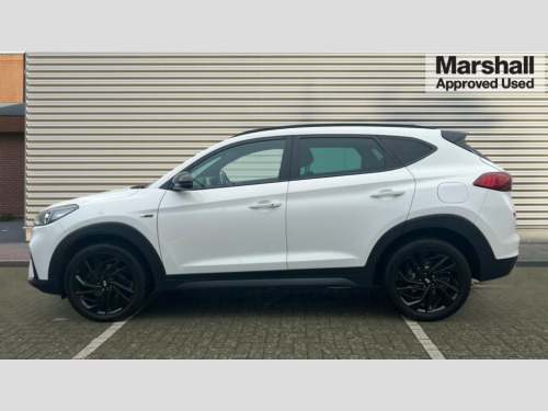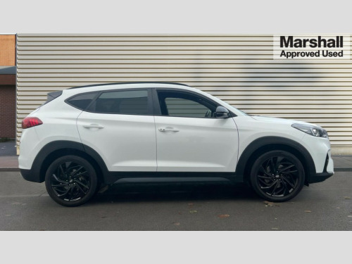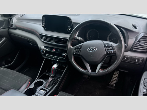 Hyundai Tucson 1.6 TGDi 177 N Line 5dr 2WD DCT 8" touchscreen satellite navigation including traffic messaging channel, map care and live services, Apple car play/Android Auto, Bluetooth system, Cruise control + speed limiter, Digital clock, Drive mode selector, Driver alert system, Emergency stop signalling system, Front and rear parking sensors, Lane keep assist, PAS, Rev counter, Reversing camera, Roll over sensor, Speed limit information, Tailgate open warning light, Trip computer, Trip odometer, Water temperature gauge, Windscreen washer fluid sensor and warning indicator, 2 front and 2 rear speakers with 2 tweeters, DAB Digital radio, Steering wheel mounted audio/phone controls, USB and aux connection in front, Adjustable intermittent front windscreen wipers with aero wiper blade, Automatic defog system, Automatic headlights with dusk sensor, Automatic windscreen wipers with rain sensor, Black door mirrors with integrated indicators, Black outside mirror covers, Black roof rails, Body colour bumpers, Body colour door handles, Electric adjust/heated/folding mirrors, Electric front/rear windows with drivers one touch/anti-trap, Follow me home headlights, Front fog lights, Grey bodyside mouldings, Halogen projector headlights, Integrated front spoiler, Integrated rear spoiler, LED brake lights, LED daytime running lights, LED rear lights, N Line Badging, N Line Exclusive Front & Rear body colour Bumpers, N Line grille, Positioning Lights - LED, Privacy glass - Rear windows and tailgate, Rear skid plate - Grey, Rear wash/wipe with intermittent wipe setting, Static cornering light, Tinted glass with windscreen shade band, Trailer stability assist, Twin exhaust pipes, 12V power outlets in front console and luggage compartment, 60/40 split folding rear seat, Adjustable head restraints, Chrome interior door handles, Cupholders in centre and rear console, Door courtesy lights, Driver and passenger front seat pockets, Driver and passenger sunvisors with illuminated LED vanity mirrors, Driver's seat electric lumbar support, Driver's seat height adjustment, Dual zone climate control, Front and rear door pockets, Front armrest with storage box, Front door pocket bottle holders, Heated front seats, Height/reach adjustable steering column, Illuminated/air conditioned glove compartment, ISOFIX child seat anchorage points attached on outer rear seats, Logo on seat backrests, Luggage area underfloor compartment, Luggage compartment lighting, Luggage cover, Luggage hooks, Luggage net, Manual height adjustable front passenger seat, Map and reading lights, N Line branded gear stick, N Line branded leather steering wheel, N Line Leather/suede upholstery, Reclining rear seats, Red stitching on central pad, Red stitching on steering wheel, Retractable load cover, Sunglasses holder, 3x3 point rear seatbelts, Active bonnet, Anti-lock brake system (ABS), Autonomous emergency braking, Brake assist function, Childproof rear door locks, Downhill brake control, Driver and passenger airbags, Drivers knee airbag, Electronic parking brake, ESP, Front passenger airbag deactivation switch, Front seatbelt pretensioners, Front side airbags + full size curtain airbags, Height adjustable front seatbelts, Hill start assist control (HAC), Seatbelt warning, Traction control, Tyre pressure monitoring system with individual tyre pressure display - TPMS, Vehicle stability management, Deadlocks, Immobiliser, Locking wheel nuts, Perimeter alarm, Remote control central locking, Smart key with keyless entry and engine start/stop button, Speed sensitive auto door locking, 19" Alloy wheels, Temporary space saver steel spare wheel