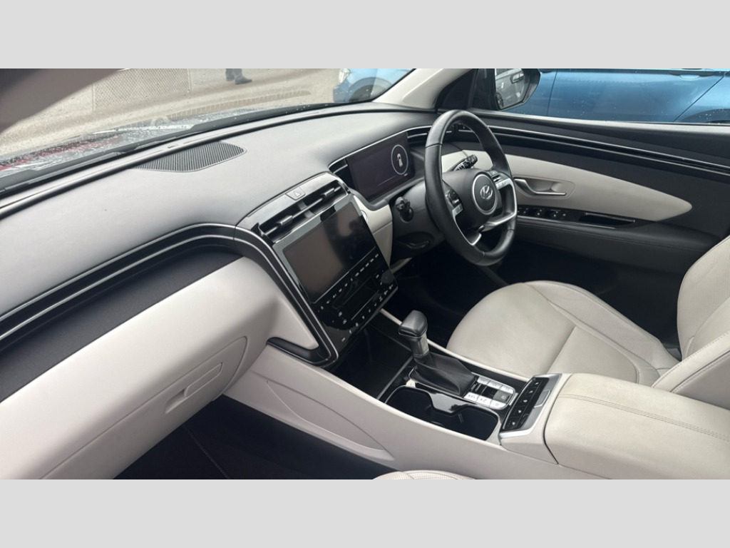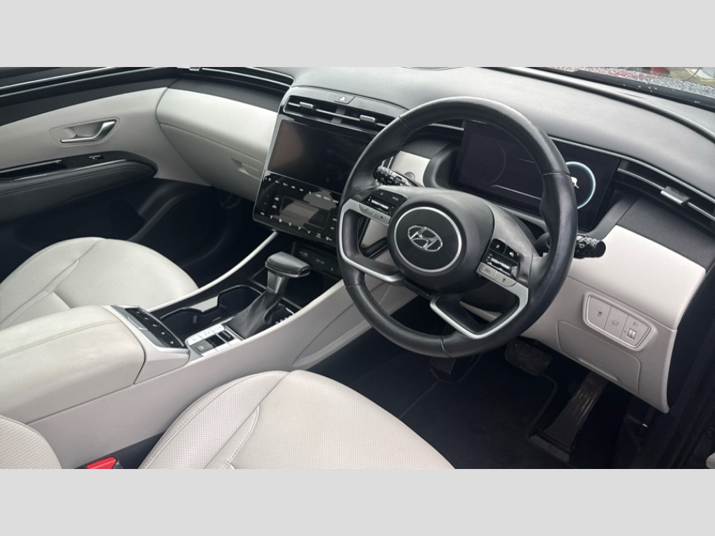 Hyundai Tucson 1.6 TGDi 48V MHD 180 Ultimate 5dr 4WD DCT 10.25" super vision instrument cluster, 10.25" touchscreen satellite navigation with mapcare and live services, Apple car play/Android Auto, Blind spot collision avoidance assist, Bluetooth system, Cruise control - smart adaptive speed control with stop and go function, Digital clock, Drive mode selector, Driver attention warning, E-call, Emergency stop signalling system, Forward Collision Avoidance Assist (FCA) - Car, Pedestrian and Cycle, Forward Collision Avoidance Assist Junction Turning (FCAJX), Front and rear parking sensors, Highway Driving Assist (HDA), Intelligent speed limit assist, Lane follow assist, Lane keep assist, PAS, Rear cross traffic collision warning (RCCW), Rev counter, Smart power tailgate, Tailgate open warning light, Trip computer, Trip odometer, Voice recognition, Water temperature gauge, Windscreen washer fluid sensor and warning indicator, Wireless phone charging pad, DAB Digital radio, Krell premium audio system with 8 speakers and subwoofer, Steering wheel mounted audio/phone controls, USB connections in front and rear, Adjustable intermittent front windscreen wipers with aero wiper blade, Auto dimming rear view mirror, Automatic defog system, Automatic headlights with dusk sensor, Automatic windscreen wipers with rain sensor, Body colour bumpers, Body colour door mirrors with integrated indicators, Body colour exterior door handles, Chrome effect bumper moulding, Dark chrome effect radiator grille, Electric tilt/slide panoramic sunroof, Electrically adjustable, heated and power folding door mirrors, Follow me home headlights, Front and rear electric windows with anti-trap mechanism and one touch control, Front fog lights, High beam assist, High level third brake light, LED daytime running lights, LED rear lights, MFR - LED headlight with static bending light, Positioning Lights - LED, Privacy glass - Rear windows and tailgate, Rear side window blinds, Rear side wing doors, Rear wash/wipe with intermittent wipe setting, Roof rails, Satin chrome effect door frame moulding, Silver front and rear skid plate, Tinted glass with windscreen shade band, Trailer stability assist, 12V power outlets in front console and luggage compartment, 3 seat bench in 2nd row, 40/20/40 split folding rear seat, Adjustable head restraints (Up and down), Ambient lighting, Cupholders in rear armrest, Door courtesy lights, Driver and passenger seat back panel with pocket, Driver and passenger sunvisors with illuminated LED vanity mirrors, Driver's seat electric lumbar support, Electric adjustable driver seat with memory function, Front and rear door pockets, Front armrest with storage box, Front door pocket bottle holders, Front passenger's seat electric height adjustment, Heated front seats, Heated outer rear seats, Heated steering wheel, Height/reach adjustable steering column, Illuminated/air conditioned glove compartment, ISOFIX child seat anchorage points attached on outer rear seats, Leather upholstery, Leather wrapped steering wheel and gear knob, LED personal and overhead console lamp, Luggage area underfloor compartment, Luggage compartment lighting, Luggage cover, Luggage hooks, Map and reading lights, Rear seat remote folding function, Reclining rear seats, Retractable load cover, Single front passenger seat, Sunglasses holder, Three zone climate control, Ventilated front seats, 3x3 point rear seatbelts, Active bonnet, Airbag - Front, front side, curtain and centre front airbags, Anti-lock brake system (ABS), Brake assist function, Childproof rear door locks, Curtain airbag roll over sensor, Downhill brake control, Electric parking brake with auto hold function, Electronic stability control, Front and rear seatbelt reminder, Front passenger airbag deactivation switch, Front seatbelt pretensioners, Hill start assist control (HAC), Multi-Collision braking, Outer rear seatbelt height adjustment, Seatbelt height adjustment for front seats, Traction control, Tyre pressure monitoring system with individual tyre pressure display - TPMS, Vehicle stability management, Alarm, Deadlocks, Immobiliser, Locking wheel nuts, Remote control central locking, Smart key with keyless entry and engine start/stop button, Speed sensitive auto door locking, 19" Alloy wheels, Tyre repair kit