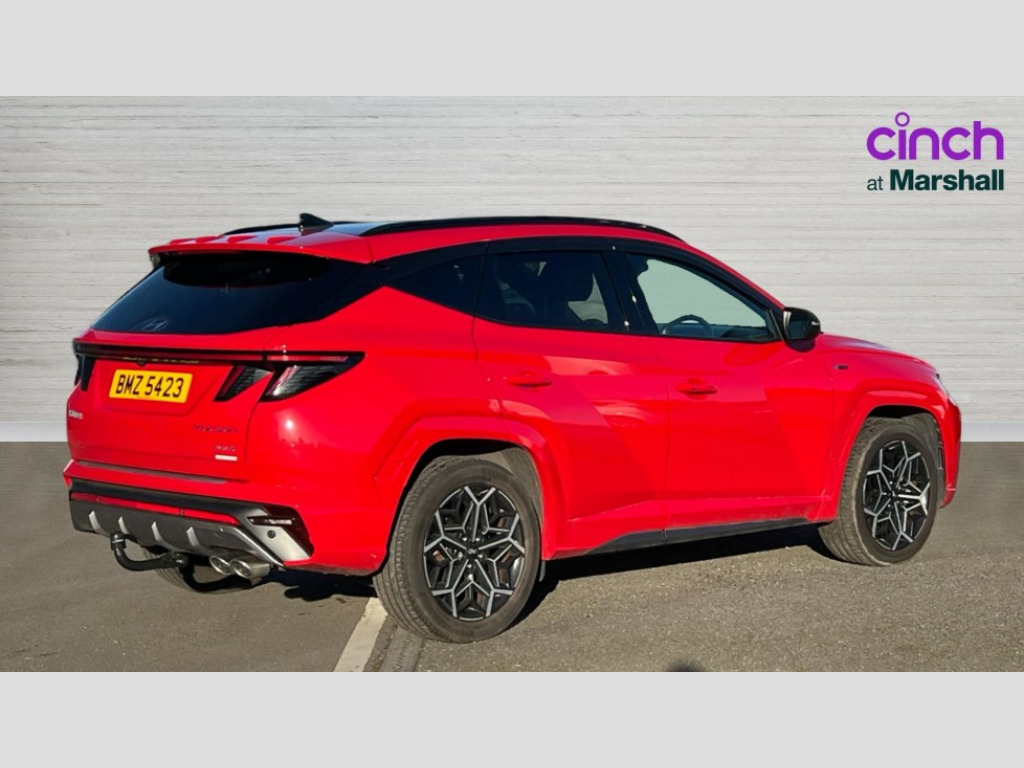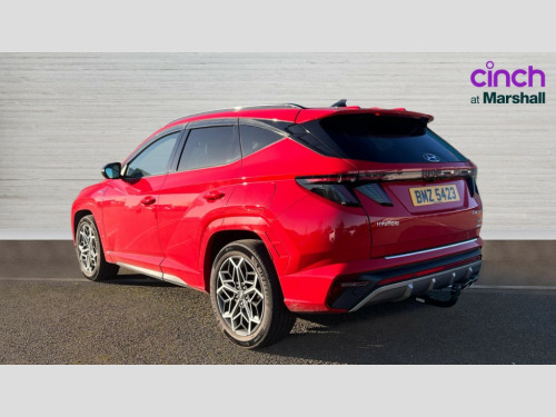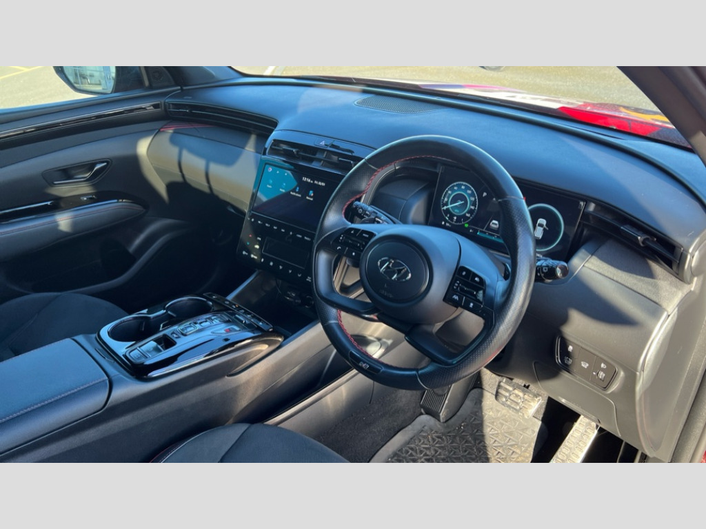Hyundai Tucson 1.6 TGDi Hybrid 230 N Line S 5dr 2WD Auto 10.25" super vision instrument cluster, 10.25" touchscreen satellite navigation with mapcare and live services, Apple car play/Android Auto, Blind spot collision avoidance assist, Bluetooth system, Cruise control - smart adaptive speed control with stop and go function, Digital clock, Drive mode selector, Driver attention warning, E-call, Emergency stop signalling system, Forward Collision Avoidance Assist (FCA) - Car, Pedestrian and Cycle, Forward Collision Avoidance Assist Junction Turning (FCAJX), Front and rear parking sensors, Intelligent speed limit assist, Lane follow assist, Lane keep assist, PAS, Rear cross traffic collision avoidance (RCCA), Rev counter, Reversing camera, Safe exit warning (SEW), Smart power tailgate, Tailgate open warning light, Trip computer, Trip odometer, Voice recognition, Water temperature gauge, Windscreen washer fluid sensor and warning indicator, Wireless phone charging pad, Shift by Wire Gear Selector (SBW), DAB Digital radio, Krell premium audio system with 8 speakers and subwoofer, Steering wheel mounted audio/phone controls, USB connections in front and rear, Adjustable intermittent front windscreen wipers with aero wiper blade, Auto dimming rear view mirror, Automatic defog system, Automatic headlights with dusk sensor, Automatic windscreen wipers with rain sensor, Black headlamp bezels, Body colour bumpers, Body colour door mirrors with integrated indicators, Body colour exterior door handles, Body coloured wheel arches, Dark chrome effect radiator grille, Electric tilt/slide panoramic sunroof, Electrically adjustable, heated and power folding door mirrors, Follow me home headlights, Front and rear electric windows with anti-trap mechanism and one touch control, Front fog lights, Gloss black door frame moulding, High beam assist, High level third brake light, LED daytime running lights, LED rear lights, MFR - LED headlight with static bending light, N Line body coloured side mouldings, N Line design front grille, N Line Exclusive front and rear bumpers, N Line rear spoiler with fins, Positioning Lights - LED, Privacy glass - Rear windows and tailgate, Rear side window blinds, Rear side wing doors, Rear wash/wipe with intermittent wipe setting, Roof rails, Silver front and rear skid plate, Sports twin tip exhaust and diffuser, Tinted glass with windscreen shade band, Trailer stability assist, 12V power outlets in front console and luggage compartment, 3 seat bench in 2nd row, 40/20/40 split folding rear seat, Adjustable head restraints (Up and down), Alloy pedals, Ambient lighting, Black headliner, Cupholders in rear armrest, Door courtesy lights, Driver and passenger sunvisors with illuminated LED vanity mirrors, Driver's seat electric lumbar support, Driver's seat manual height adjust, Front and rear door pockets, Front armrest with storage box, Front door pocket bottle holders, Front passenger seat lumbar adjustment, Heated front seats, Heated steering wheel, Height/reach adjustable steering column, Illuminated/air conditioned glove compartment, ISOFIX child seat anchorage points attached on outer rear seats, Leather wrapped steering wheel, Leather/suede upholstery, LED personal and overhead console lamp, Luggage area underfloor compartment, Luggage compartment lighting, Luggage cover, Luggage hooks, Manual height adjustable front passenger seat, Map and reading lights, N Line logo on steering wheel, Reclining rear seats, Retractable load cover, Single front passenger seat, Sunglasses holder, Three zone climate control, 3x3 point rear seatbelts, Active bonnet, Airbag - Front, front side, curtain and centre front airbags, Anti-lock brake system (ABS), Brake assist function, Childproof rear door locks, Curtain airbag roll over sensor, Downhill brake control, Electric parking brake with auto hold function, Electronic stability control, Front and rear seatbelt reminder, Front passenger airbag deactivation switch, Front seatbelt pretensioners, Hill start assist control (HAC), Multi-Collision braking, Outer rear seatbelt height adjustment, Seatbelt height adjustment for front seats, Traction control, Tyre pressure monitoring system with individual tyre pressure display - TPMS, Vehicle stability management, Alarm, Deadlocks, Immobiliser, Locking wheel nuts, Remote control central locking, Smart key with keyless entry and engine start/stop button, Speed sensitive auto door locking, 19" Alloy wheels, Tyre repair kit