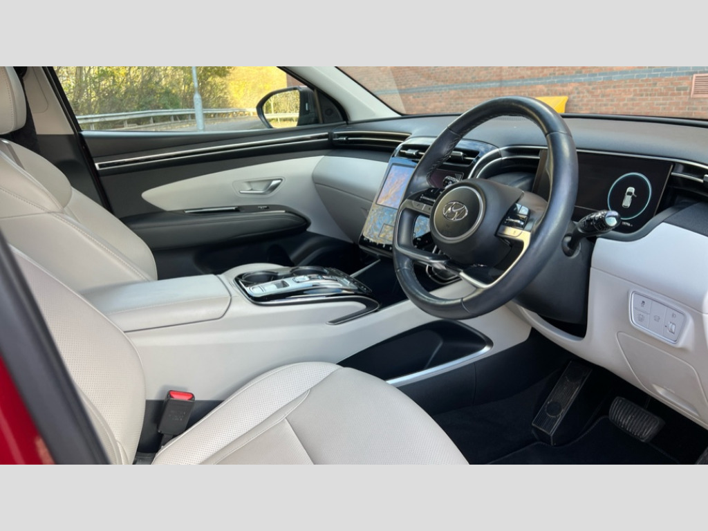 Hyundai Tucson 1.6 TGDi Hybrid 230 Ultimate 5dr 2WD Auto 10.25" super vision instrument cluster, 10.25" touchscreen satellite navigation with mapcare and live services, Apple car play/Android Auto, Blind spot collision avoidance assist, Blind spot Collision Warning (BCW), Bluetooth system, Cruise control - smart adaptive speed control with stop and go function, Digital clock, Drive mode selector, Driver attention warning, E-call, Emergency stop signalling system, Forward Collision Avoidance Assist (FCA) - Car, Pedestrian and Cycle, Forward Collision Avoidance Assist Junction Turning (FCAJX), Front and rear parking sensors, Highway Driving Assist (HDA), Intelligent speed limit assist, Lane follow assist, Lane keep assist, PAS, Rear cross traffic collision avoidance (RCCA), Rear cross traffic collision warning (RCCW), Rev counter, Roll over sensor, Safe exit warning (SEW), Smart power tailgate, Tailgate open warning light, Trip computer, Trip odometer, Voice recognition, Water temperature gauge, Windscreen washer fluid sensor and warning indicator, Wireless phone charging pad, DAB Digital radio, Krell premium audio system with 8 speakers and subwoofer, Steering wheel mounted audio/phone controls, USB connections in front and rear, Adjustable intermittent front windscreen wipers with aero wiper blade, Auto dimming rear view mirror, Automatic defog system, Automatic headlights with dusk sensor, Automatic windscreen wipers with rain sensor, Body colour bumpers, Body colour door mirrors with integrated indicators, Body colour exterior door handles, Chrome effect bumper moulding, Dark chrome effect radiator grille, Electric tilt/slide panoramic sunroof, Electrically adjustable, heated and power folding door mirrors, Follow me home headlights, Front and rear electric windows with anti-trap mechanism and one touch control, Front fog lights, High beam assist, High level third brake light, LED daytime running lights, LED rear lights, MFR - LED headlight with static bending light, Positioning Lights - LED, Privacy glass - Rear windows and tailgate, Rear side window blinds, Rear wash/wipe with intermittent wipe setting, Roof rails, Satin chrome effect door frame moulding, Silver front and rear skid plate, Tinted glass with windscreen shade band, Trailer stability assist, 12V power outlets in front console and luggage compartment, 40/20/40 split folding rear seat, Adjustable head restraints (Up and down), Ambient lighting, Cupholders in rear armrest, Door courtesy lights, Driver and passenger seat back panel with pocket, Driver and passenger sunvisors with illuminated LED vanity mirrors, Driver's seat electric lumbar support, Electric adjustable driver seat with memory function, Front and rear door pockets, Front armrest with storage box, Front door pocket bottle holders, Front passenger's seat electric height adjustment, Heated front seats, Heated outer rear seats, Heated steering wheel, Height/reach adjustable steering column, Illuminated/air conditioned glove compartment, ISOFIX child seat anchorage points attached on outer rear seats, Leather upholstery, Leather wrapped steering wheel, LED personal and overhead console lamp, Luggage area underfloor compartment, Luggage compartment lighting, Luggage cover, Luggage hooks, Rear seat remote folding function, Retractable load cover, Sunglasses holder, Three zone climate control, Ventilated front seats, 3x3 point rear seatbelts, Active bonnet, Airbag - Front, front side, curtain and centre front airbags, Anti-lock brake system (ABS), Brake assist function, Childproof rear door locks, Downhill brake control, Electric parking brake with auto hold function, Electronic stability control, Front and rear seatbelt reminder, Front passenger airbag deactivation switch, Front seatbelt pretensioners, Hill start assist control (HAC), Multi-Collision braking, Outer rear seatbelt height adjustment, Seatbelt height adjustment for front seats, Traction control, Tyre pressure monitoring system with individual tyre pressure display - TPMS, Alarm, Deadlocks, Immobiliser, Locking wheel nuts, Remote control central locking, Smart key with keyless entry and engine start/stop button, Speed sensitive auto door locking, 19" Alloy wheels, Tyre repair kit