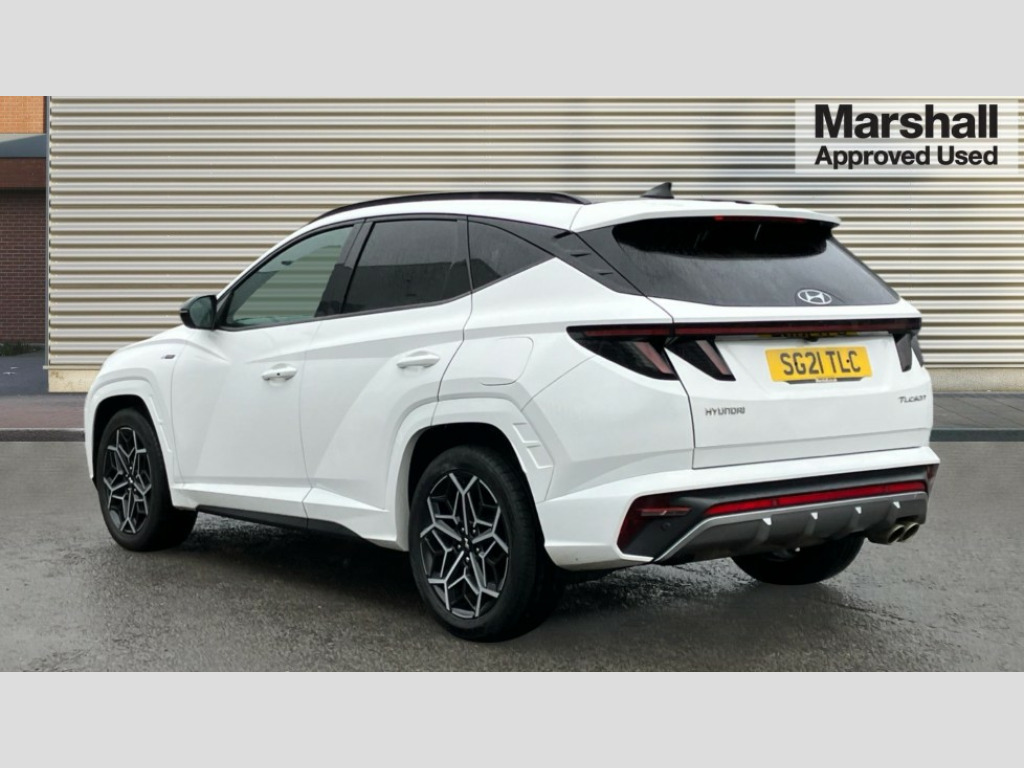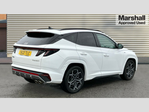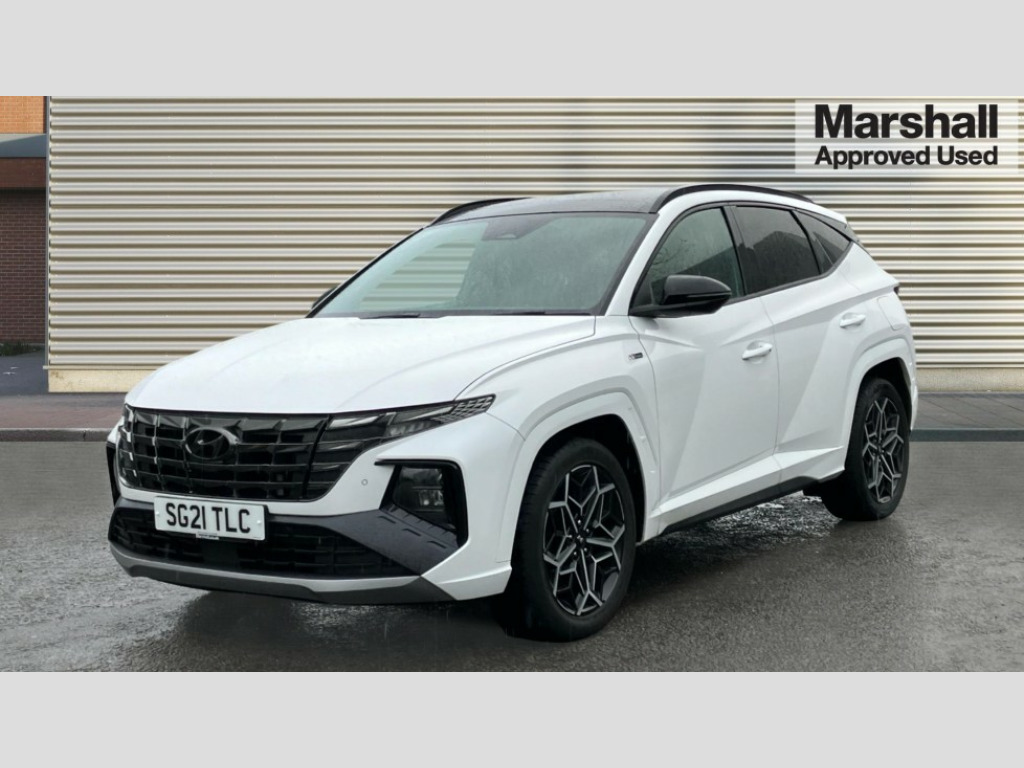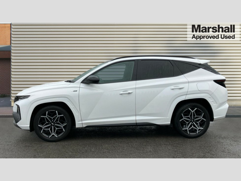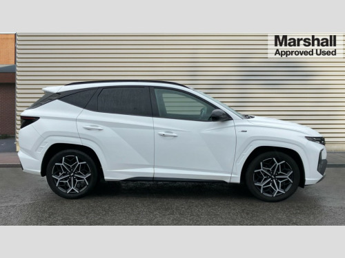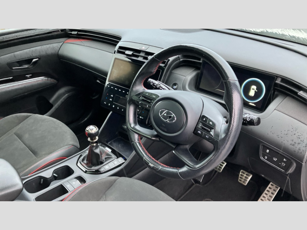 Hyundai Tucson 1.6 TGDi N Line S 5dr 2WD 10.25" super vision instrument cluster, 10.25" touchscreen satellite navigation with mapcare and live services, Apple car play/Android Auto, Blind spot Collision Warning (BCW), Bluetooth system, Cruise control, Digital clock, Drive mode selector, Driver attention warning, E-call, Emergency stop signalling system, Forward Collision Avoidance Assist (FCA) - Car, Pedestrian and Cycle, Front and rear parking sensors, Intelligent speed limit assist, Lane follow assist, Lane keep assist, PAS, Rear cross traffic collision warning (RCCW), Rev counter, Reversing camera, Roll over sensor, Smart power tailgate, Tailgate open warning light, Trip computer, Trip odometer, Voice recognition, Water temperature gauge, Windscreen washer fluid sensor and warning indicator, Wireless phone charging pad, DAB Digital radio, Krell premium audio system with 8 speakers and subwoofer, Steering wheel mounted audio/phone controls, USB connections in front and rear, Adjustable intermittent front windscreen wipers with aero wiper blade, Auto dimming rear view mirror, Automatic defog system, Automatic headlights with dusk sensor, Automatic windscreen wipers with rain sensor, Body colour bumpers, Body colour door mirrors with integrated indicators, Body colour exterior door handles, Body coloured wheel arches, Dark chrome effect radiator grille, Electric tilt/slide panoramic sunroof, Electrically adjustable, heated and power folding door mirrors, Follow me home headlights, Front and rear electric windows with anti-trap mechanism and one touch control, Front fog lights, Gloss black door frame moulding, High beam assist, High level third brake light, LED daytime running lights, LED rear lights, MFR - LED headlight with static bending light, Positioning Lights - LED, Privacy glass - Rear windows and tailgate, Rear side window blinds, Rear wash/wipe with intermittent wipe setting, Roof rails, Silver front and rear skid plate, Tinted glass with windscreen shade band, Trailer stability assist, 12V power outlets in front console and luggage compartment, 40/20/40 split folding rear seat, Adjustable head restraints (Up and down), Alloy pedals, Ambient lighting, Cupholders in centre and rear console, Cupholders in rear armrest, Door courtesy lights, Driver and passenger sunvisors with illuminated LED vanity mirrors, Driver's seat electric lumbar support, Driver's seat manual height adjust, Front and rear door pockets, Front armrest with storage box, Front door pocket bottle holders, Front passenger seat lumbar adjustment, Heated front seats, Heated steering wheel, Height/reach adjustable steering column, Illuminated/air conditioned glove compartment, ISOFIX child seat anchorage points attached on outer rear seats, Leather wrapped steering wheel and gear knob, Leather/suede upholstery, LED personal and overhead console lamp, Luggage area underfloor compartment, Luggage compartment lighting, Luggage cover, Luggage hooks, Manual height adjustable front passenger seat, Map and reading lights, Retractable load cover, Sunglasses holder, Three zone climate control, 3x3 point rear seatbelts, Active bonnet, Airbag - Front, front side, curtain and centre front airbags, Anti-lock brake system (ABS), Autonomous emergency braking, Brake assist function, Childproof rear door locks, Downhill brake control, Electric parking brake with auto hold function, Electronic stability control, Front and rear seatbelt reminder, Front passenger airbag deactivation switch, Front seatbelt pretensioners, Hill start assist control (HAC), Multi-Collision braking, Seatbelt height adjustment for front seats, Traction control, Tyre pressure monitoring system with individual tyre pressure display - TPMS, Vehicle stability management, Alarm, Deadlocks, Immobiliser, Locking wheel nuts, Remote control central locking, Smart key with keyless entry and engine start/stop button, Speed sensitive auto door locking, 19" Alloy wheels, Tyre repair kit