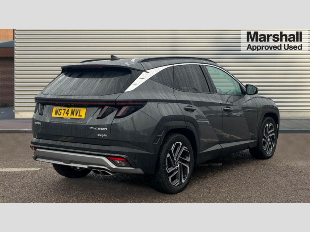 Hyundai Tucson 1.6T Plug-in Hybrid Ultimate 5dr 4WD Auto 12.3" LCD display with driver's supervision instrument cluster, 12.3" widescreen navigation with bluelink and mapcare, Blind spot view monitor, Bluetooth system, Cruise control - smart adaptive speed control with stop and go function, Digital clock, Drive mode selector, Driver attention warning, E-call, Emergency stop signalling system, Forward Collision Avoidance Assist (FCA) - Car, Pedestrian and Cycle, Forward Collision Avoidance Assist Junction Turning (FCAJX), Front and rear parking sensors, Front, rear and side parking distance warning, Highway Driving Assist (HDA), Hyundai road side assistance, Intelligent speed limit assist, Lane follow assist, Lane keep assist, Over the air updates(OTA), Parking collision avoidance assist (PCA), PAS, Rear camera and guidance parking system, Rev counter, Smart power tailgate, Surround view monitor, Tailgate open warning light, Trip computer, Trip odometer, Voice recognition, Water temperature gauge, Windscreen washer fluid sensor and warning indicator, Wireless Apple CarPlay/Android Auto, Wireless phone charging pad, 2 front and 2 rear USB-C ports, DAB Digital radio, Krell premium audio system with 8 speakers and subwoofer, Steering wheel mounted audio/phone controls, Adjustable intermittent front windscreen wipers with aero wiper blade, Auto dimming rear view mirror, Automatic defog system, Automatic headlights with dusk sensor, Automatic windscreen wipers with rain sensor, Black wheel arches, Body colour bumpers, Body colour door mirrors with integrated indicators, Body colour exterior door handles, Electric tilt/slide panoramic sunroof, Electrically adjustable, heated and power folding door mirrors, Follow me home headlights, Front and rear electric windows with anti-trap mechanism and one touch control, Front fog lights, LED 3rd brake light, LED daytime running lights, LED rear lights, Matrix LED headlights, Positioning Lights - LED, Privacy glass - Rear windows and tailgate, Rear side wing doors, Rear wash/wipe with intermittent wipe setting, Roof rails, Tinted glass with windscreen shade band, Trailer stability assist, 12V power outlets in front console and luggage compartment, 3 seat bench in 2nd row, 40/20/40 split folding rear seat, 64 colours interior ambient lighting, Adjustable head restraints (Up and down), Cupholders in rear armrest, Door courtesy lights, Driver and passenger sunvisors with illuminated LED vanity mirrors, Driver's seat electric adjustments, Driver's seat memory, Front and rear door pockets, Front armrest with storage box, Front centre console and door bottle holders, Front passenger's seat electric adjustments, Heated front seats, Heated rear seats, Heated steering wheel, Height/reach adjustable steering column, Illuminated/air conditioned glove compartment, ISOFIX child seat anchorage points attached on outer rear seats, Leather upholstery, Leather wrapped steering wheel and gear knob, Luggage compartment lighting, Luggage cover, Luggage hooks, Luggage net, Map and reading lights, Rear seat remote folding function, Rear side window sunblind, Reclining rear seats, Retractable load cover, Single front passenger seat, Sunglasses holder, Three zone climate control, Touch sensitive climate controls with temperature dials, TUCSON branded metal door scuff plate, Underfloor boot compartment, Ventilated front seats, Trailer wiring package - Tucson, 3x3 point rear seatbelts, Active bonnet, Airbag - Front, front side, curtain and centre front airbags, Anti-lock brake system (ABS), Brake assist function, Childproof rear door locks, Curtain airbag roll over sensor, Downhill brake control, Electric parking brake, Electronic stability control, Front and rear seatbelt reminder, Front passenger airbag deactivation switch, Front seatbelt pretensioners, Hill start assist control (HAC), Multi-Collision braking, Outer rear seatbelt height adjustment, Seatbelt height adjustment for front seats, Traction control, Tyre pressure monitoring system with individual tyre pressure display - TPMS, Vehicle stability management, Deadlocks, Immobiliser, Locking wheel nuts, Remote control central locking, Smart key with keyless entry and engine start/stop button, Speed sensitive auto door locking, Thatcham category 1 alarm, 19" Alloy wheels, Tyre repair kit