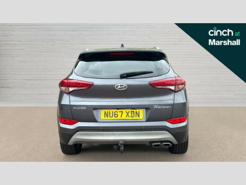 Hyundai Tucson 2.0 CRDi Blue Drive Premium 5dr 2WD 8" touchscreen DVD colour navigation, Blind spot monitoring, Bluetooth system, Cruise control + speed limiter, Digital clock, Emergency stop signalling system, Flex Steer variable steering settings, Front and rear parking sensors, Lane keep assist, PAS, Rear cross traffic alert, Rev counter, Reversing camera, Supervision cluster, Tailgate open warning light, Trip computer, Trip odometer, Water temperature gauge, Windscreen washer level indicator, Vehicle Stability Control (VSC), 6 speakers, DAB Digital radio, Steering wheel mounted audio/phone controls, USB/aux input socket, Auto dimming rear view mirror with compass, Automatic defog system, Automatic headlights with dusk sensor, Body colour bumpers, Body colour door mirrors and handles, Chrome beltline trim, Chrome radiator grille and surround, Electric front/rear windows with drivers one touch/anti-trap, Electric heated door mirrors, Folding door mirrors, Follow me home headlights, Front fog lights, Integrated rear spoiler, Intermittent front wipe with adjustable delay, LED brake lights, LED daytime running lights, LED rear lights, Mudflaps front and rear, Puddle lights, Rain sensor windscreen wipers, Rear privacy glass, Rear wash/wipe with intermittent wipe setting, Roof rails, Silver bodyside mouldings, Skid plate protection, Solar glass with windscreen shade band, Trailer stability assist, Twin exhaust pipes, Windscreen wiper de-icer, 12V Accessory socket in centre console, 12V socket in luggage compartment, 60/40 split and double folding seats (flat to floor), Ashtray, Chrome interior door handles, Cigar lighter, Climate control air conditioning, Cupholders in centre and rear console, Door courtesy lamps, Driver and passenger front seat pockets, Driver seat lumbar adjustment, Driver/passenger sunvisors with ticket holders + illuminated vanity mirrors, Electric adjustable front seats including height adjust, Front and rear door pockets, Front map reading lights, Front/rear adjustable head restraints, Heated front seats, Heated rear seats, Height adjustable front armrest with stowage, Height/reach adjustable steering column, Isofix rear child seat preparation, Knee bolster - driver only, Leather steering wheel and gear knob, Leather upholstery, Lockable/illuminated air conditioned glovebox, Luggage area underfloor compartment, Luggage compartment lighting, Luggage hooks, Luggage net, Overhead console with sunglasses holder, Rear armrest with cupholder, Reclining rear seats, Retractable load cover, 3x3 point rear seatbelts, ABS/EBD, Active bonnet, Autonomous emergency braking, Brake assist function, Childproof rear door locks, Driver and passenger airbags, Drivers knee airbag, ESP, Front side airbags + full size curtain airbags, Height adjustable front seatbelts, Hill start assist control (HAC), Passenger airbag deactivate switch, Seatbelt pretensioners with load limiters, Seatbelt warning, Traction control, Tyre pressure monitoring system, Alarm and remote central locking, Deadlocks, Engine immobiliser, Locking wheel nuts, Speed sensitive auto door locking, Metal grain centre console, 19" Alloy wheels, Full size alloy spare wheel