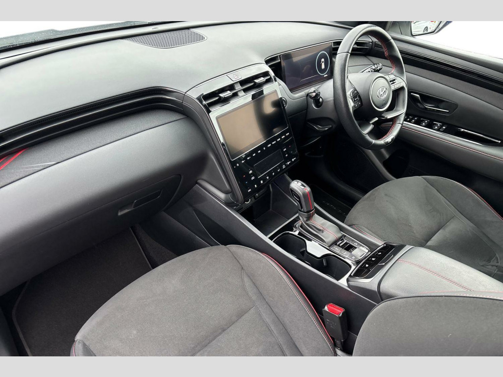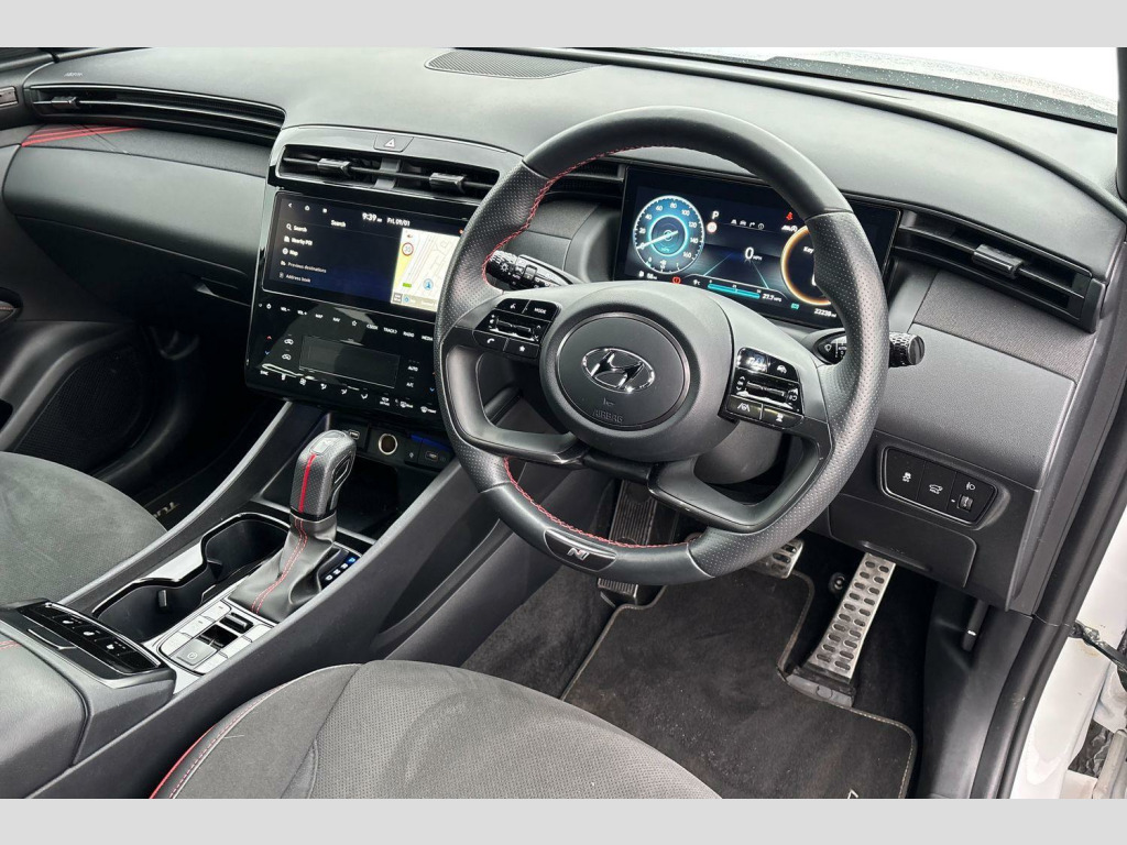 The TUCSON N Line S stands out with its impressive boot space, providing ample room for all your needs, and its low insurance group rating, which indicates it is more economical to insure than many comparable vehicles. This well maintained hybrid SUV offers a blend of style, practicality, and advanced features, all backed by a 3 month warranty for your peace of mind. 10.25in Touchscreen Satellite Navigation - Mapcare - LIVE Services, 12V Power Outlet - Front Centre Facia and Luggage Compartment, 19in Alloy Wheels, ABS - Anti-Lock Brake System, Adjustable Head Restraints, Adjustable Intermittent Front Windscreen Wipers with Aero Wiper Blade, Airbags - Front - Front Side - Curtain and Centre Front Airbag, Alarm - Thatcham Category 1, Armrest - Front with Storage, Armrest - Rear with Cup Holders, Automatic Dimming Rear View Mirror, Automatic Windscreen Wipers with Rain Sensor, BAS - Brake Assist System, Blind Spot Collision Warning, BlueLink, Bluetooth Connectivity, Body Colour Bumpers, Body Coloured Wheel Arch Inserts, Central Locking - Remote Control, Childproof Rear Door Locks, Climate Control - Three Zone, Cruise Control - Smart Adaptive Speed Control with Stop and Go Function, DAB Digital Radio, DBC - Downhill Brake Control, Daytime Running Lights - LED, Deadlocks, Door Frame Moulding - Gloss Black, Door Mirrors - Electric Adjustment and Heated with Power Folding Function, Door Mirrors with Integrated Indicators - Body Coloured, Drive Mode Select, Driver Attention Warning, Drivers Seat Height Adjustment - Manual, Drivers Seat Lumbar Support - Electric, E-Call, ESS - Emergency Stop Signal, Electric Parking Brake with Auto Hold Function, Electric Windows - Front and Rear with Anti-Trap Mechanism and One Touch Control, Electronic Stability Control - ESC, Exterior Door Handles - Body Coloured, Forward Collision-Avoidance Assist - FCA with Car - Pedestrian and Cycle, Forward Collision-Avoidance Assist - Junction Turning, Front Passenger Airbag De-Activation Switch, Front Passengers Seat Height Adjustment - Manual, Front Seatbelt Pre-Tensioners, Front and Rear Seatbelt Reminder, HAC - Hill-Start Assist Control, Headlights - Automatic with Dusk Sensor, Headlights - Full LED, Heated Front Seats, Heated Steering Wheel, High Beam Assist, ISOFIX Child Seat Anchorage Points - Rear, Immobiliser, Intelligent Speed Limit Assist - ISLA, Interior Light - Ambient Lighting, Interior Light - Luggage Compartment, Interior Light - Map Reading Lights, Interior Personal LED Light and Overhead Console Lamp, Krell Premium Audio - 8 Speakers and Subwoofer, Lane Follow Assist - LFA, Lane Keep Assist - LKA, Leather Wrapped Steering Wheel and Gear Knob, Locking Wheel Nuts, Luggage Cover, Manual Speed Limit Assist - MSLA, Multi Collision Braking - MCA, Panoramic Sunroof - Glass - Electric Tilt and Slide, Parking Sensors - Front and Rear, Parking System - Rear Camera, Passenger Seat Height Adjustment - Manual, Pedals - Aluminium, Phone Connection - Android Auto, Phone Connection - Apple CarPlay, Power Assisted Steering, Privacy Glass - Rear Windows and Tailgate, Radiator Grille - Dark Chrome, Rear Cross Traffic Collision Warning, Rear Lights - LED, Rear Side Window Blind, Roof Rails, Safe Exit Warning - SEW, Seatbelts - Height Adjustable Driver and Front Passenger, Seats - 40-20-40 Split Folding Rear, Skid Plates - Front and Rear - Silver, Smart Electric Tailgate, Smart Key - Keyless Entry with Engine Start-Stop Button, Speed Sensitive Automatic Door Locking, Steering Wheel Audio and Phone Controls, Sun Visors with Driver and Passenger Illuminated LED Vanity Mirrors, Supervision Instrument Cluster - 10.25in, TSA - Trailer Stability Assist, Tinted Glass with Windscreen Shade Band, Tyre Pressure Monitoring System with Individual Tyre Pressure Display, Tyre Repair Kit, USB - Front - 1x Charger 1x Connectivity, USB - Rear, Wireless Phone Charging Pad