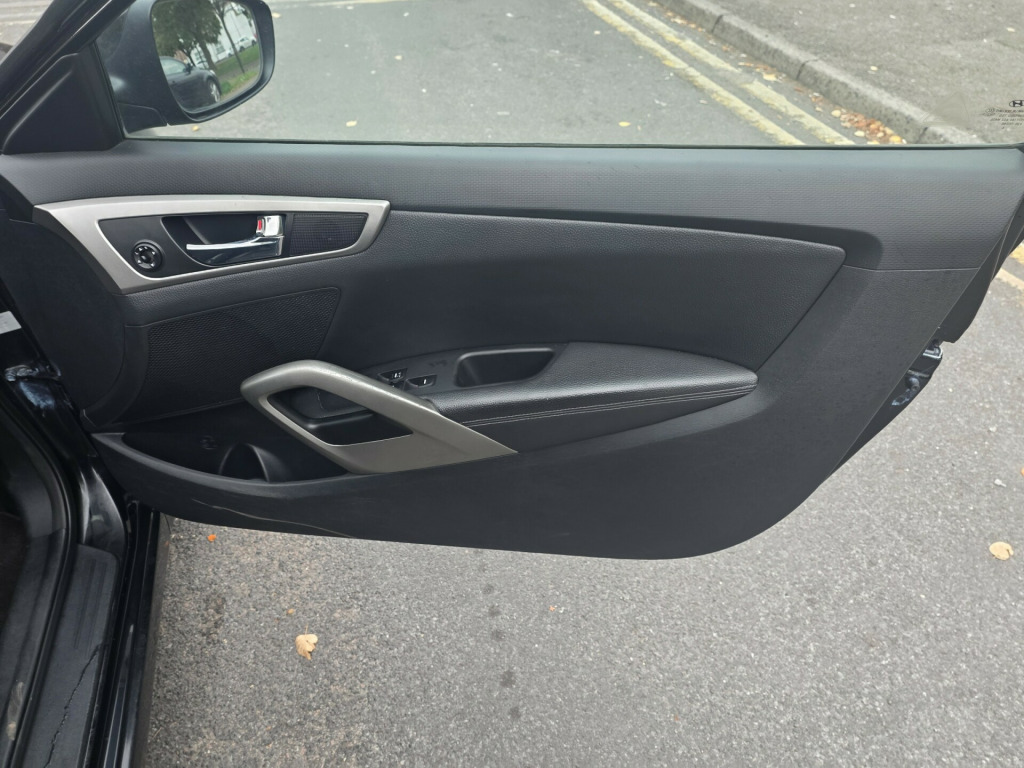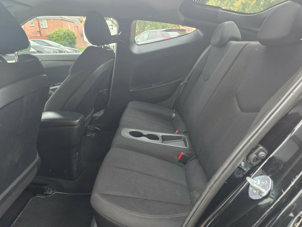 This 2014 Hyundai Veloster 1.6 GDi SE Hatchback has only 68000 miles on the clock and is a reliable, fuel-efficient petrol vehicle that is ULEZ compliant, making it perfect for city driving. With 3 doors and 4 seats, this hatchback offers plenty of space and practicality, while the MOT expires on 01/10/2026, providing peace of mind for the next few years. Featuring a 7in Touch Screen Media Centre, Bluetooth Connectivity with Voice Recognition, and a RDS Radio-CD Player with MP3 Compatibility, this car is equipped with modern technology for entertainment and convenience. Additionally, the 12V Power Outlet and 4 speakers ensure a comfortable and enjoyable driving experience. With its sleek design and Euro 5 engine producing 140 ps, this Hyundai Veloster is a stylish and powerful choice for anyone in the market for a reliable hatchback., v power outlet, 7in touch screen media centre, bluetooth connectivity with voice recognition, rds radio-cd player with mp3 compatibility, speakers x4, usb and aux connections, 18in alloy wheels, door mirrors - electric heated with integral indicators, exterior door handles - body coloured, gloss black rear bumper insert, locking wheel nuts, radiator grille - gloss black and chrome, rear spoiler, spare wheel - temporary, windows - electric front with one-touch up-down control for driver, abs - anti-lock brake system, airbags - driver, airbags - front passenger, airbags - front side, airbags - full length curtain, bas - brake assist system, childproof rear door locks, deadlocks, esp - electronic stability programme, hac - hill-start assist control, isofix child seat anchorage points - rear - outer rear, passenger airbag de-activation switch, remote central locking, seatbelt reminder - front, thatcham category 2 approved alarm, vsm - vehicle stability management, air conditioning, chrome effect interior door handles, cup holders - front x2, cup holders - rear, driver seat height adjustment, front head restraints - vertical and horizontal adjustment, front map reading lights, gear knob - leather, glove compartment with illumination and lock, head restraints - active front, head restraints - rear with vertical adjustment, heated front seats, interior central cabin light, luggage hooks, luggage net, split folding rear seats - 60-40, steering column - height and reach adjustable, steering wheel - audio controls, steering wheel - leather, sun visors with vanity mirrors and illumination, daytime running lights, front fog lights, led high-mounted brake light, projection headlights, eco drive indicator, parking sensors - rear, power assisted steering, rear-view parking camera, trip computer, tyre pressure monitoring system - tpms