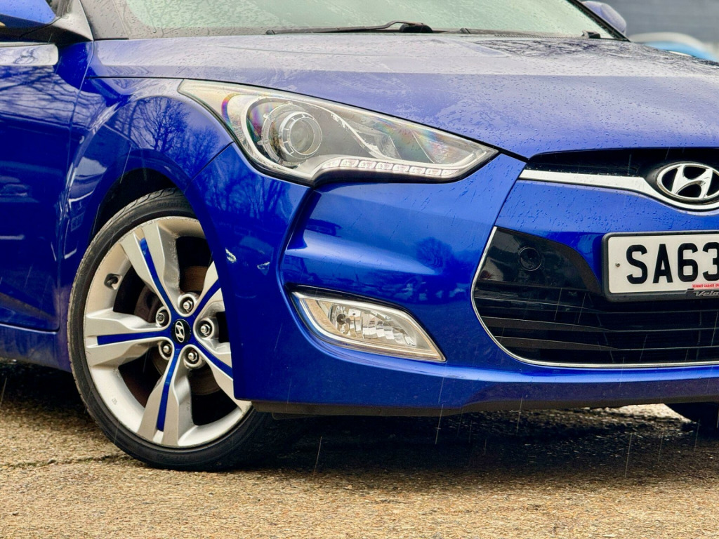 This 2013 Hyundai Veloster GDi Sport presents a compelling proposition with its remarkably low mileage of just 74,000 miles for a vehicle of its age. This particular example, a GDi Sport variant with the Sport trim, is powered by an efficient 1.6 litre petrol engine. Inside, you'll find a comfortable and convenient cabin featuring heated front seats for those colder mornings, keyless entry, and a push button start stop system. The car also benefits from automatic headlights, climate control for consistent cabin temperature, and Bluetooth connectivity complete with voice recognition, allowing for seamless integration of your mobile device.The Hyundai Veloster GDi Sport offers a number of advantages that set it apart. Its acceleration from 0 to 62 miles per hour in just 9.7 seconds provides a responsive driving experience. Furthermore, this model boasts a low insurance group, which can contribute to lower running costs. Practicality is also a strong point, with generous boot space making it suitable for everyday errands and longer journeys alike. These combined attributes highlight how this Veloster is a well rounded choice for those seeking a distinctive and capable vehicle.. 18in Alloy Wheels with Colour Inserts, 7in Touch Screen Media Centre, ABS - Anti-Lock Brake System, Airbags - Driver, Airbags - Front Passenger, Airbags - Front Side, Airbags - Full Length Curtain, Alloy Pedals, BAS - Brake Assist System, Bluetooth Connectivity with Voice Recognition, Childproof Rear Door Locks, Chrome Effect Interior Door Handles, Cigarette Lighter and Ashtray, Climate Control, Cruise Control, Cup Holders - Front, Cup Holders - Rear, Daytime Running Lights - LED, Deadlocks, Door Handles - Body Coloured, Door Mirrors - Electric Folding, Door Mirrors - Electrically Adjustable and Heated with Integrated LED Indicators, Driver Seat Height Adjustment, EBD - Electronic Brake Force Distribution, ESP - Electronic Stability Programme, Eco Drive Indicator, Electric Heated Door Mirrors with Integrated Indicators, Electric Windows - Front and Rear with Drivers Anti-Trap and One-Touch Up-Down Control, Front Door Pockets, Front Fog Lights, Front Head Restraints - Vertical and Horizontal Adjustment, Front Map Reading Lights, Front Passenger Airbag De-Activation Switch, Front Seat Back Pockets, Glove Compartment with Illumination and Lock, Head Restraints - Active Front, Headlights - Automatic, Heated Front Seats, ISOFIX Child Seat Anchorage Points - Rear - Outer Rear, Interior Central Cabin Light, Interior Lights Including Cargo Area, Interior Trim - Gloss Black Effect Fascia, Keyless Entry and Engine Start-Stop Button, Locking Wheel Nuts, Luggage Compartment Light, Luggage Hooks, Luggage Net, Panoramic Sunroof - Electric Tilt and Slide, Power Assisted Steering, Projection Headlights, RDS Radio-CD Player with MP3 Compatibility, Rear Spoiler with Integrated LED Brake Light, Remote Central Locking, Reversing Sensors, Seatbelt Reminder - Front, Spare Wheel - Temporary, Speakers x4, Speed Sensitive Automatic Door Locking, Split Folding Rear Seats - 60-40, Steering Column - Height and Reach Adjustable, Steering Wheel - Audio Controls, Steering Wheel - Leather and Gear Knob, Sun Visors with Vanity Mirrors and Illumination, Sunglasses Holder, Supervision Instrument Cluster, Tail Lights - LED, Thatcham Category 2 Approved Alarm, Trip Computer, Tyre Pressure Monitoring System - TPMS, USB and AUX Connections, VSM - Vehicle Stability Management.