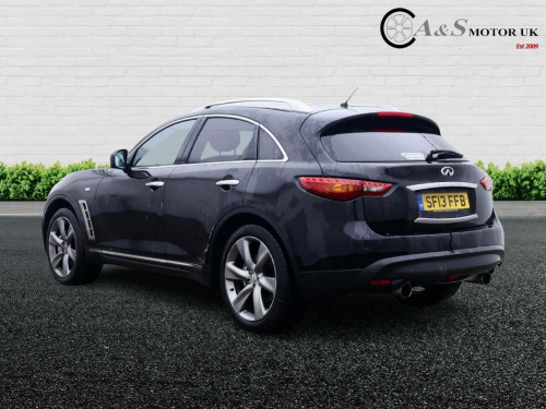 YouTube WALK AROUND VIDEO LINK: *** *** , , ____ This Diesel INFINITI FX 3.0 30d V6 Executive is registered in March 2013 with only 95,286 miles and just 2 previous keepers , ____ Automatic, Black, 2 Keys, Service History (services + recent service), , ____ ULEZ FREE, ____ MOT 18/03/2026, Insurance Group 50,, ____ Road Tax (£735) Per Year, 235 BHP, EURO 5, , , *** WARRANTY ***, ____ This vehicle comes with a 3-month warranty (upgradable to 6 or 12 months) and will leave our showroom with a full PDI check list for your peace of mind. ____ Secure this vehicle today for as little as a £250 deposit, , , *** STANDARD AND UPGRADED FEATURES *** , SUNROOF, SAT NAV, CRUISE CONTROL, Full Leather Interior, USB, AUX, Heated/Electric Seats, Bluetooth, Trip Computer, Air Conditioning, LED DAYTIME RUNNING LIGHTS, Key-Less Start, Front and Rear Parking Sensors, Automatic Headlights, Anti-Lock Brakes (ABS), 21 ALLOY WHEELS, , *** PLEASE NOTE THIS ADVERTISEMENT IS FOR INFORMATIONAL PURPOSES ONLY *** , The actual car may have additional features or slight variations in the description. Please contact us on 01619414190 for the most accurate information. , *** PAYMENT ***, We accept debit cards for deposits only. Proof of identity is required. We only accept payments on site and do not accept payments over the phone. We can accept bank transfers and Bank Note Payments up to £5000. +++ TERMS AND CONDITIONS +++ , We trust that you will enjoy many trouble-free miles of motoring and that the vehicle meets with the standard you would expect from a reputable and respected motor dealer such as ourselves. Whilst we endeavour to ensure that every vehicle, we sell meets only the highest possible standards. Unfortunately, on occasion defects do appear on a vehicle subsequent to sale which could not have possibly foreseen. Should you discover any fault with above vehicle shortly after purchase then we would ask that you take the following course of action: 1. Inform us as soon as possible, 2. Try to bring / transport the vehicle to our premises so that we may inspect the alleged problem and arrange a suitable course of action, PLEASE DO NOT TAKE THE VEHICLE TO A THIRD-PARTY GARAGE before allowing us to inspect it, as we will NOT ACCEPT liability for any work done by another garage. it is important to remember that very often what might appear to you as serious fault is anything but, and can accordingly be rectified by our skilled and experienced staff at little or no cost to yourself. We will not accept responsibility for other garages cost unless expressly authorized by ourselves. Please note: We cannot accept liability for wear and tear items or for any defects commensurate with the vehicles age, price and mileage. These terms and conditions are only valid for 3 months from the date of sale. Unless both parties are agreed on different terms, sold as trade sale or sold with faults (customer is informed before purchase).