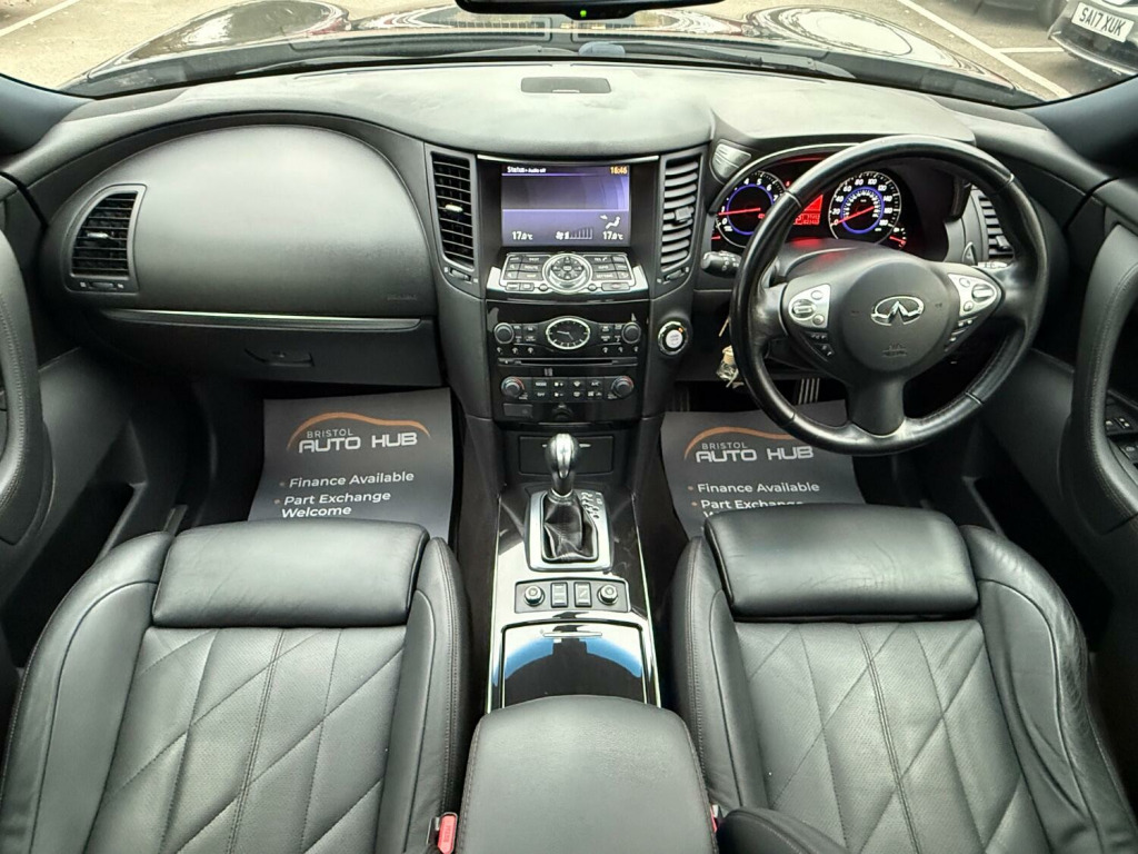 2012 Infiniti FX 3.7 V6 GT Premium Petrol Automatic 5 Door SUV In Black With Only 77,492 Miles, Will Come With New MOT Upon Purchase - Current MOT Until 26/12/2025 - No Advisories, Great Service History - Last Service at 75,454 Miles (14/02/2024), Other Services at 61,431 Miles/53,976 Miles/47,369 Miles/31,673 Miles/21,803 Miles and 10,059 Miles, ULEZ Compliant - No Clean Air Zone Charges, Only 1 Former Keeper, Fuel Economy - 30 MPG (Extra Urban), Boot Capacity - 410 Litres, 0-60 In 6.8 Seconds, This Fully Specced Out SUV Is A Real Head Turner From Its Powerful 316BHP Engine Making This A Must See Vehicle, You Will Not Want To Miss This Chance To Drive This Infiniti FX!, , This Rare To Find Vehicle Comes With Extras Such As - Electric Glass Sunroof, Heated and Ventilated Front Seats, Bluetooth, Bose Premium Sound System with 11 Speakers, CD-DVD-MP3-WMA-DivX-10GB Music Box, Satellite Navigation System, USB-iPod Connectivity and AUX-in RCA, Dual Zone Adaptive with Auto-Recirculation Climate Control, Around View Monitor with Corner Parking Sensors, Cruise Control - Intelligent with Low Speed Following, Forward Collision Warning, Lane Departure Warning and Lane Departure Prevention, Front/Rear Parking Sensors, Rear View Camera, Heated and Electrically Folding Wing Mirrors - Tilt While Reversing, Automatic Headlights - Bi-Xenon, Automatic Dimming Rear View Mirror, Rain Sensing Wipers, Memory for Drivers Seat-Steering Wheel Column and Door Mirrors, Drivers 10-Way Power Adjustment Seat, Power Tailgate, Brake Assist - Intelligent, ISOFIX, Leather Multifunctional Steering Wheel, 20in Alloy Wheels - 5 Double-Spoke, Electric Windows, I-Key with Smart Access and Tailgate Release and Smart Ignition, Remote Central Locking, 2 x Remote Keys, , All Vehicles Are Fully Valeted With A 45 point inspection check undertaken, Part Exchange & Test Drive Welcome, Finance Available On All Cars - Come Direct For No Admin Fees & Competitive Prices - Good and Bad Credit Welcome - No Obligation Quote, 3 - 36 Month Warranty Available, Open 7 Days A Week. , For More Pictures and Info Please Visit www.bristolautohub.com, , The specification is for a typical vehicle of this model and year when manufactured. Every effort has been made to ensure the accuracy of the information provided however there may be differences to the specification of the actual vehicle in stock, or the vehicle may have been modified. Do not rely entirely on the listed specification and please check to confirm that any features which may influence your decision to buy are present, and the actual specification of the vehicle meets your requirements and expectations.