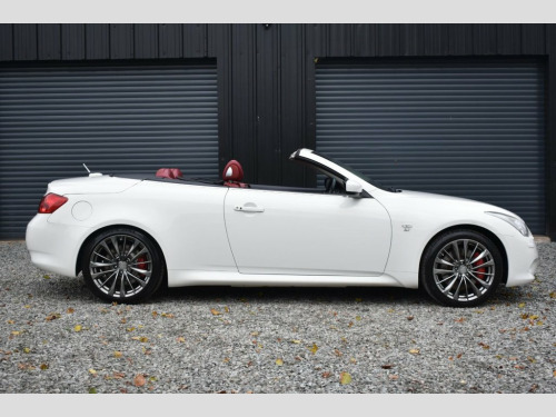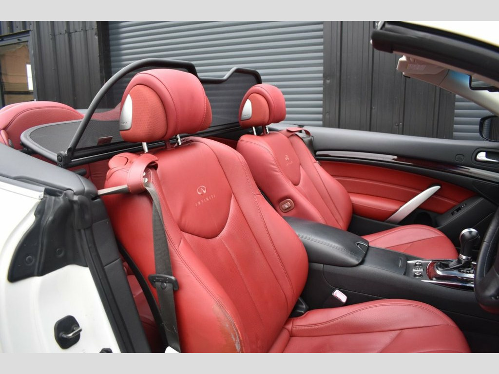 Beautiful condition & incredibly well-equipped INFINITI GT Convertible. specification includes: Satellite navigation, full red leather interior, ventilated & heated seats, Bluetooth audio streaming BOSE speaker headrests, keyless start, keyless entry, climate control, air conditioning, multi function leather steering wheel, cruise control, front & rear parking sensors with rear view camera, heated seats, electric & memory seats, 19 inch alloy wheels, remote locking alarm, electric windows x4, power fold mirrors, on board computer, electric adjusting steering wheel, auto lights & wipers, cd player, Bluetooth telephone, traction control, voice activation, lumbar support, rear spoiler, Isofix child seat anchors, front centre armrest, rear headrests, front fog lights, drives superb. 19in Alloy Wheels - 10 Spoke Light with , 3-Piece Power Folding Metal Roof, 7-Speaker Audio System, Airbags - Curtain Front and Rear, Airbags - Driver, Airbags - Front Hip-Thorax Side, Aluminium Pedals and Foot Rest, Analogue Infiniti Clock, Auto Dimming Rear View Mirror, Bi-Xenon Lights with Adaptive Front Ligh, Bluetooth Audio Streaming, Bluetooth for Mobile Connectivity and Vo, CD/MP3/WMA/2GB Music Box, Climate Control - Dual Zone Adaptive wit, Cruise Control, Cruise Control & speed limiter, Door Mirrors - Body Colour, Door Mirrors - Heated and Electrically F, Door Mirrors - Tilt While Reversing, First Aid Kit with Warning Triangle, Front Fog Lights, Full Colour Central Display with I