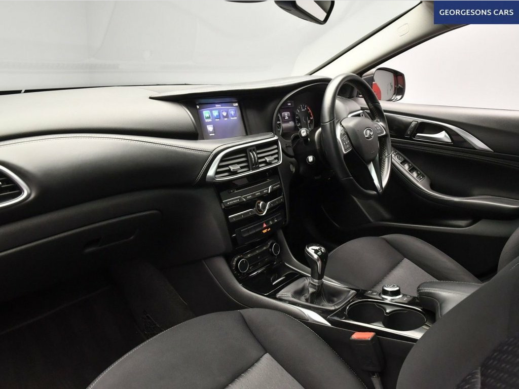 The Infiniti Q30 1.6T Luxe combines a punchy 1.6-litre turbo petrol engine with 156hp, delivering 0-62mph in 8.9 seconds and up to 47.9mpg in this front-wheel-drive setup with a precise 6-speed manual gearbox. The Luxe trim brings premium style with 18-inch alloys, panoramic glass sunroof and a high-grade interior. With six services, this Q30 is in excellent condition. Enjoy open-sky driving with the panoramic sunroof, while integrated satellite navigation and DAB radio keep you entertained. Parking is easy with front & rear parking sensors. Stay comfortable with climate control. Cruise control with speed limiter makes longer journeys relaxed. The stylish five-door premium hatchback includes a 368-litre boot. 12V Power Outlet in Front and Rear Centr, 2 USB Ports with Smart Phone and iPod Co, 4-Wheel Anti-Lock Braking System - ABS -, 40-60 Split-Folding Rear Seat Back, 6 Speaker Sound System, 7 Airbags, Adaptive Brake Assist, Air Conditioning - Single Zone, AM-FM Audio System with Single CD Player, Auto Dimming Driver Door Mirror, Auto Dimming Rear View Mirror, Automatic Headlight Activation, Black Lacquer Interior Trim, Bluetooth Audio Streaming with Phone Boo, Body Colour Door Mirrors with LED Turnin, Cruise Control, Driver Seat Cushion Angle Adjustment, Electronic Parking Brake, Forward Collision Warning and Stop, Front and Rear One Touch Up and Down Ele, Front Centre Armrest, Front Fog Lights