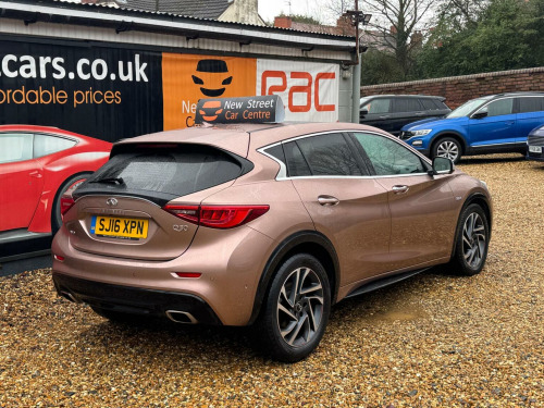 This 2016 Infiniti Q30 d Premium Tech boasts exceptionally low mileage for its age, having covered just 52,000 miles. This stylish hatchback features a powerful 2.2 litre diesel engine paired with a four wheel drive system, ensuring confident handling in various conditions. As a Euro 6 compliant vehicle, it meets modern emissions standards. The Premium Tech trim level comes equipped with a host of desirable features, including Bluetooth audio streaming and phone connectivity, a keyless entry system with attractive chromed door handles, and a comprehensive parking assistance package with a rear view camera and front and rear parking sensors. Further enhancing your driving experience, this Infiniti Q30 includes automatic air conditioning with dual zone climate control and a rear vent centre console, ensuring comfort for all occupants. Automatic headlights add convenience and safety, activating when needed. The vehicles performance is notable, with an acceleration of 0 to 62 miles per hour in just 8.5 seconds, demonstrating its responsive nature. Its position within a low insurance group also makes it an economical choice. These highlights collectively indicate that this Infiniti Q30 offers a superior combination of features, performance, and value compared to other vehicles in its class. We are proud to present this Infiniti Q30 2.2d Premium Tech DCT AWD Euro 6 (s/s) 5dr that comes with a service history for added peace of mind. It comes with 2 keys and has just been serviced. 12 months MOT included, You have the option to purchase RAC warranty with the option to extend.At New Street Car Centre we have over 25 years experience as the largest and most trusted used car dealership in Telford. We offer award winning customer service, great prices and excellent preparation standards. Each vehicle undergoes quality control inspections and a complimentary history check for your added peace of mind.we have also included additional specification but please always check the exact specification details with ourselves prior to purchase as models can vary