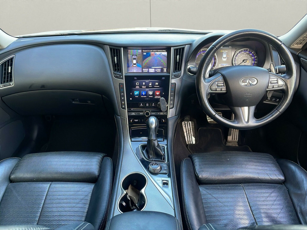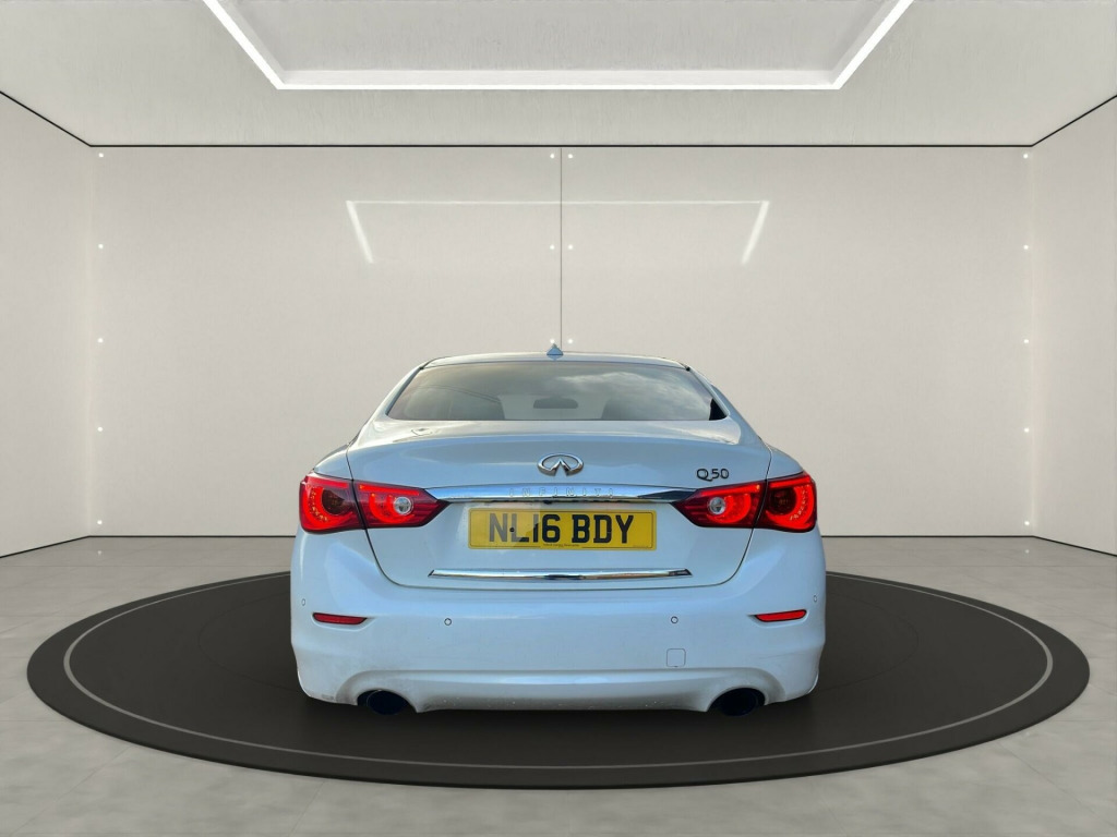 This 2016 Infiniti Q50 d Sport is presented with a clear vehicle history check, offering peace of mind for its next owner. This stylish saloon features a powerful yet efficient 2.2 litre Euro 6 diesel engine, ensuring compliance with modern emissions standards. Inside, you will find a luxurious cabin appointed with a leather steering wheel, front seats with memory function for personalised comfort, and distinctive Infiniti aluminium door sill finishers complemented by an aluminium footrest. The Sport trim level enhances the vehicle's already impressive presence.The Infiniti Q50 d Sport stands out with its remarkable fuel economy, achieving an impressive 61 miles per gallon, which indicates it is more economical than many similar vehicles. Furthermore, its low insurance group rating suggests that running costs will be more affordable compared to other cars in its class. These highlights, combined with the premium features and the clear vehicle history, make this Q50 a compelling choice for those seeking a sophisticated and cost effective driving experience. v power outlet - centre console, 19in alloy wheels - 5 triple spoke light, 40-60 split-folding rear seat back, 6 speaker sound system, abs - anti-lock braking system, am-fm audio system with single cd player, aux connectivity, active lane control, active noise control - anc, active trace control, airbags - curtain front and rear, airbags - driver, airbags - front hip-thorax side, airbags - front passenger, aluminium footrest, aluminium pedals, armrest - front with storage compartment, attraction light, auto dimming rear view mirror, automatic headlight activation, bluetooth audio streaming, bluetooth for mobile connectivity, body colour door mirrors with led turning signal, brake assist, climate control - dual zone adaptive with auto-recirculation, comfort pack, cruise control, door mirrors - heated and electrically folding and reverse synchronisation, door sill finishers - infiniti aluminium, drive mode selector, drivers power lumbar support, dual touch screens - lcd vga 8in and lcd vga 7in, ebd - electronic brakeforce distrubution, electric windows - all doors, fine vision meter with 5in tft colour display, first aid kit, front bumper sport design, front fog lights - led, fully customisable digital enviroment, grape polyphenol filter, headlights - auto levelling, headlights - follow-me home system, headlights - led, heated front seats, hill start assist, i-key with smart access and enhanced memory, isofix seat mounting points in the rear, immobiliser, infiniti intouch, infiniti intuition, interior trim - kacchu aluminium, led daytime running lights, leather gear shift lever, multifunction steering wheel, parking sensors - front, push button ignition, rain sensing wipers, rear air conditioning vents, rear centre armrest with cupholder, rear cup holder, rear lights - led, rear parking sensors, rear view camera, run-flat tyres, scratch shield paint, seats - front power adjustment, seats - front sports, seats - front with memory, ski hatch, speed limiter, steering - direct adaptive, steering column - reach and rake power adjustment, steering pack, steering wheel - leather, sun visors with illuminated vanity mirrors and extensions, tcs - traction control system, tpms - tyre pressure monitor system with individual tyre pressure display, twin exhaust tailpipes with chrome finisher, usb port with ipod connectivity, ultrasonic alarm system, vdc - vehicle dynamic control, vehicle security system, voice recognition system, warning triangle, welcome pack, multimedia pack
