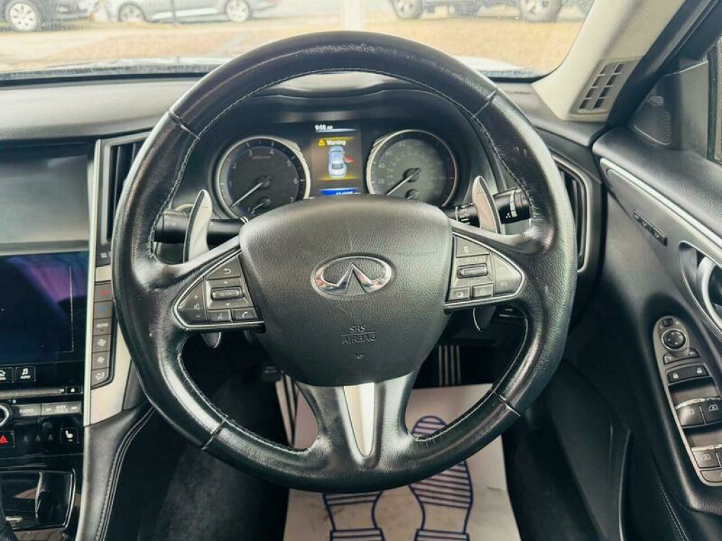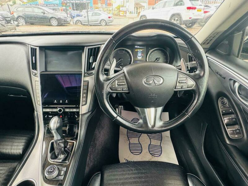 Presenting this Infiniti Q50 2.2d Sport Tech Auto Euro 5 (s/s) 4dr with SUNROOF, HEATED FRONT SEATS, LEATHER INTERIOR, REVERSING CAMERA, BIRD VIEW CAMERA, CRUISE CONTROL, SAT NAV, BLUETOOTH, and much more. This vehicle will be supplied with a FRESH MOT AND SERVICE AT THE CURRENT MILEAGE. DRIVES SUPERB. BRILLIANT FUEL ECONOMY AND PERFORMANCE |*FINANCE AVAILABLE WITH 0% DEPOSIT, SUBJECT TO CONDITIONS*| |* 3 MONTHS AA WARRANTY*| |*TEST DRIVE WELCOME*| |* PART EXCHANGE WELCOME*| |*HPI CLEAR*| |*EXTENDED WARRANTIES AVAILABLE*| |*12 MONTHS BREAKDOWN COVER*| |*10% OFF COMPREHENSIVE CAR INSURANCE THROUGH AA T/C'S APPLY*| This 2015 Infiniti Q50 d Sport Tech presents a compelling proposition for those seeking a refined and capable saloon. Under the bonnet, a robust 2.2 litre diesel engine provides efficient power, making it a practical choice for both daily commutes and longer journeys. The Sport Tech trim ensures a high level of specification, with features designed to enhance comfort and convenience. These include power front seat adjustment with memory, allowing you to easily find your perfect driving position and recall it at the touch of a button. Further enhancing the driving experience are the dual zone climate control with auto recirculation, ensuring a comfortable cabin temperature for all occupants, and a rear view camera complemented by rear parking sensors, which aid manoeuvrability in tighter spaces. The LED auto levelling headlights and daytime running lights provide excellent visibility in various conditions. This particular Q50 also benefits from a low insurance group, offering potential savings, and boasts a large boot space, making it a versatile option that stands out from its peers. ABS, Automatic Rearview Mirror Dimming, Bluetooth, Brake Assist, Cup Holders, Daytime Running Lights, ESP, Electric Heated Seats, Engine Immobiliser, Front Airbags, Front Fog Lights, Hill-Start Assist, LED Lights, Parking Assistance, Parking Camera, Radio, Rain Sensor, Side Impact Airbags, Speed Limiter, Sports Seats, Steering Wheel Controls, Traction Control