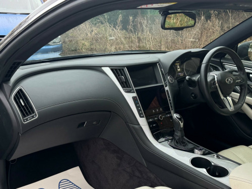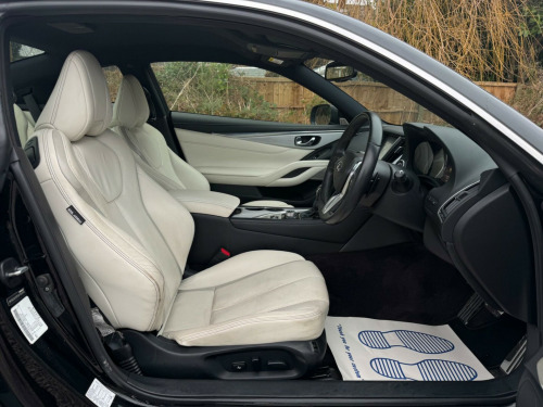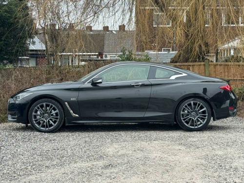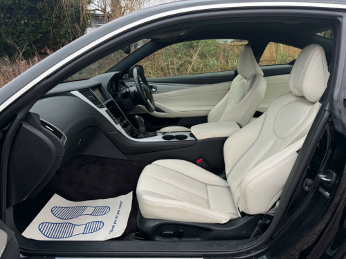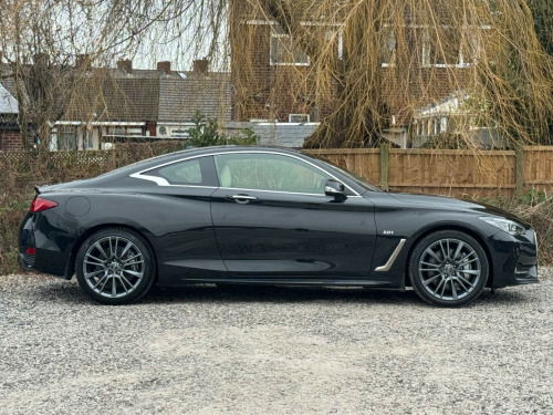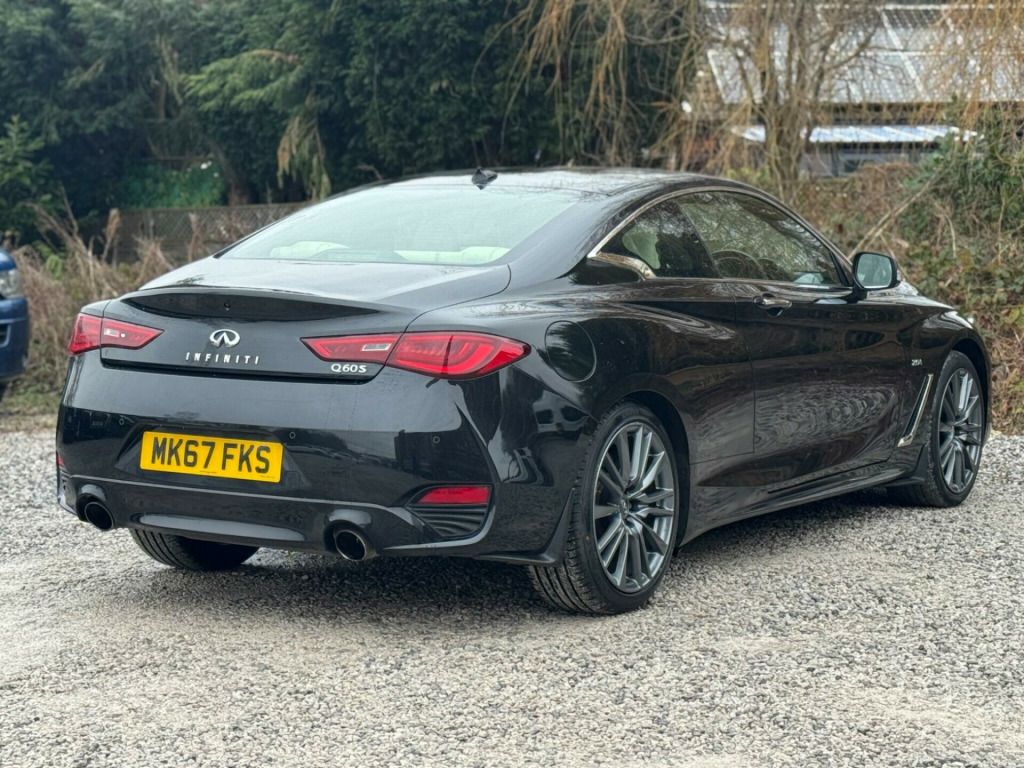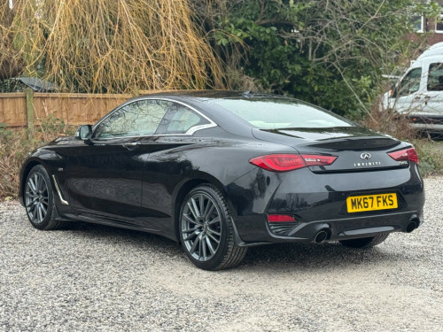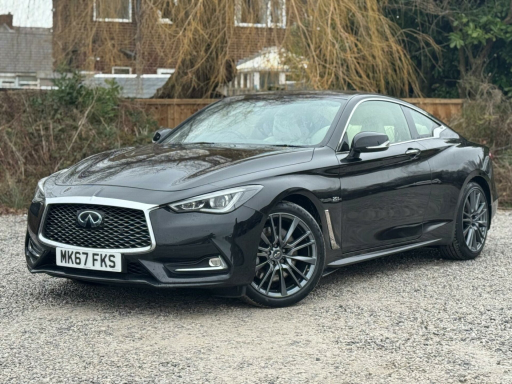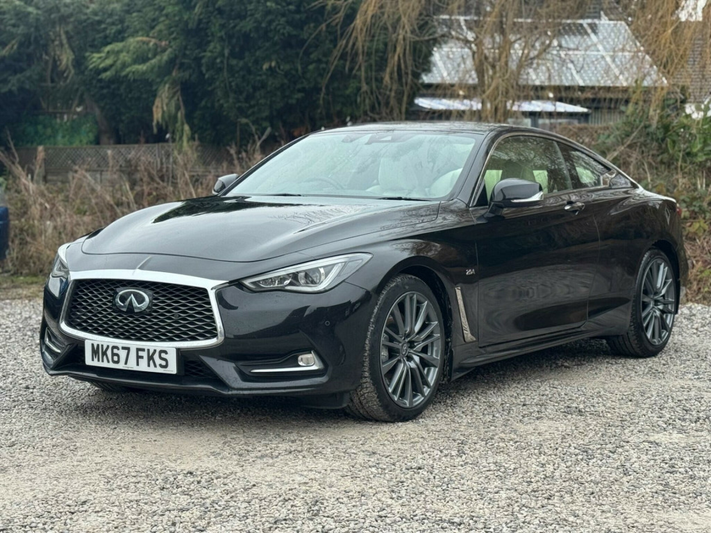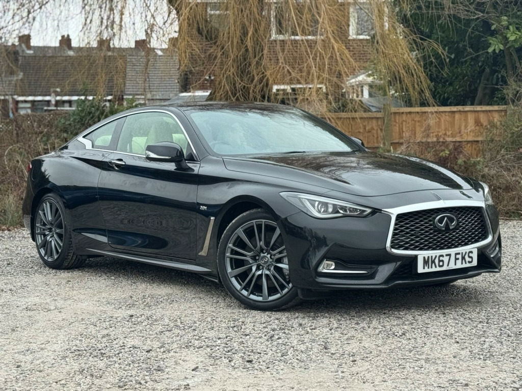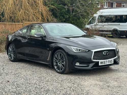 1 FORMER KEEPERFULL SERVICE HISTORYK2This 2017 Infiniti Q60 T S Sport is a well maintained example, having had only two owners from new and boasting a clear vehicle history check. This stylish coupe features a 2.0 litre petrol engine and meets Euro 6 emission standards. Inside, you'll find a host of desirable features including a Multimedia Pack with a premium branded sound system, an Ambient Pack with memory seats, and Bluetooth audio streaming for seamless connectivity. For added convenience, it also benefits from automatic headlight activation and a rear view camera for parking assistance.The Infiniti Q60 T S Sport offers an impressive fuel economy of up to 42 miles per gallon, a highlight that demonstrates its efficiency compared to similar vehicles. Furthermore, its low CO2 emissions also set it apart, indicating a more environmentally conscious choice. This combination of performance, technology, and efficiency makes this Q60 a compelling option. v power outlets - 2 - in centre console, 19in alloy wheels - 9in 5 spoke - 3d - dark chrome, 4-wheel anti-lock braking system - abs - electronic brake force distribution - ebd - traction control system - tcs and vehicle dynamic control - vdc, 6 airbags, am-fm audio system with single cd player, active noise cancellation - anc - and active sound enhancement, active trace control, aluminium pedals and foot rest, ambient pack, attraction light, auto dimming rear view mirror, automatic headlight activation, black tricot roof liner, bluetooth audio streaming, bluetooth for mobile connectivity, body colour door mirrors with led turning signal, carbon fibre interior trim, care pack, comfort pack, driver seats electric lumbar and side support - manual thigh extension, dual touch screens - lcd vga 8in and lcd vga 7in, electric assisted ingress-egress mechanism for easy access to rear seats, fine vision electroluminescent gauges with 3d - 5in tft colour display, first aid kit with warning triangle, flexible door stop smart system, folding rear seat backrest, front armrest with storage compartment and cupholders, front sport seats with 8-way electric adjustment, headlights - follow-me home system, heated front seats, hill start assist, i-key with smart access - luggage compartment release and enhanced memory, isofix and top-tether seat mounting points in the rear seats, infiniti aluminium front doors sill finishers, infiniti drive mode selector, infiniti intouch, infiniti intuition, led auto-levelling headlights and daytime running lights, led fog lights - front and rear, led taillights, leather wrapped - cross-stitched sport steering wheel with matt chrome finish, leather wrapped - stitched gear shift lever with matt chrome and black gloss finish, multifunction steering wheel, multimedia pack, one-touch power windows with auto-operation linked to i-key and pinch prevention on front windows, opposed calliper sport brakes - dark chrome painted, overhead sunglass storage and map lamp, pop-up engine bonnet for pedestrian protection, push button ignition, rear air conditioning vents, rear centre armrest with cupholder, rear view camera, reminder for front and rear seat belts, speed limiter, steering pack, sun visors with illuminated vanity mirrors - on drivers side with extension and card holder, synchronised rev match clutch control system for automatic transmission, tpms - tyre pressure monitor system with individual tyre pressure display, traffic sign recognition, twin exhaust tailpipes with chrome finisher, usb-ipod connectivity and aux-in rca, uv-reducing tinted glass, ultrasonic alarm system, vehicle security system with engine immobiliser and alarm, voice recognition system