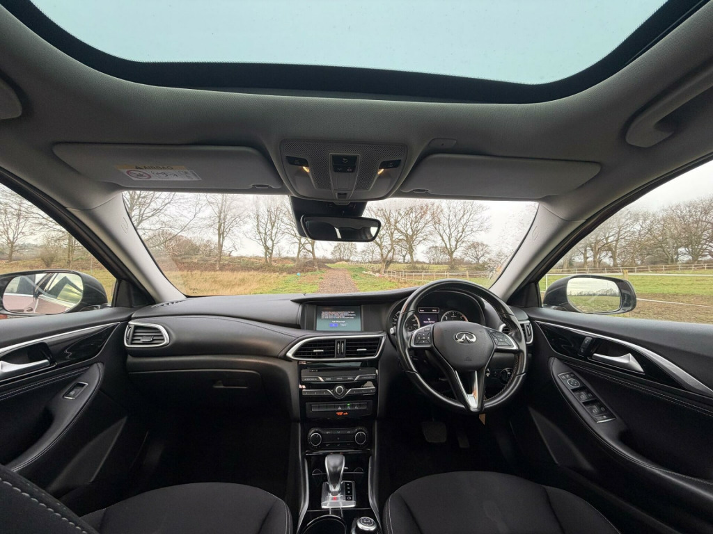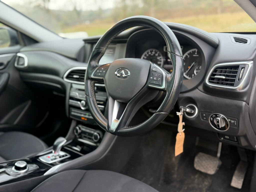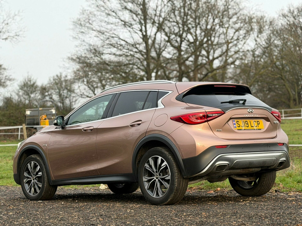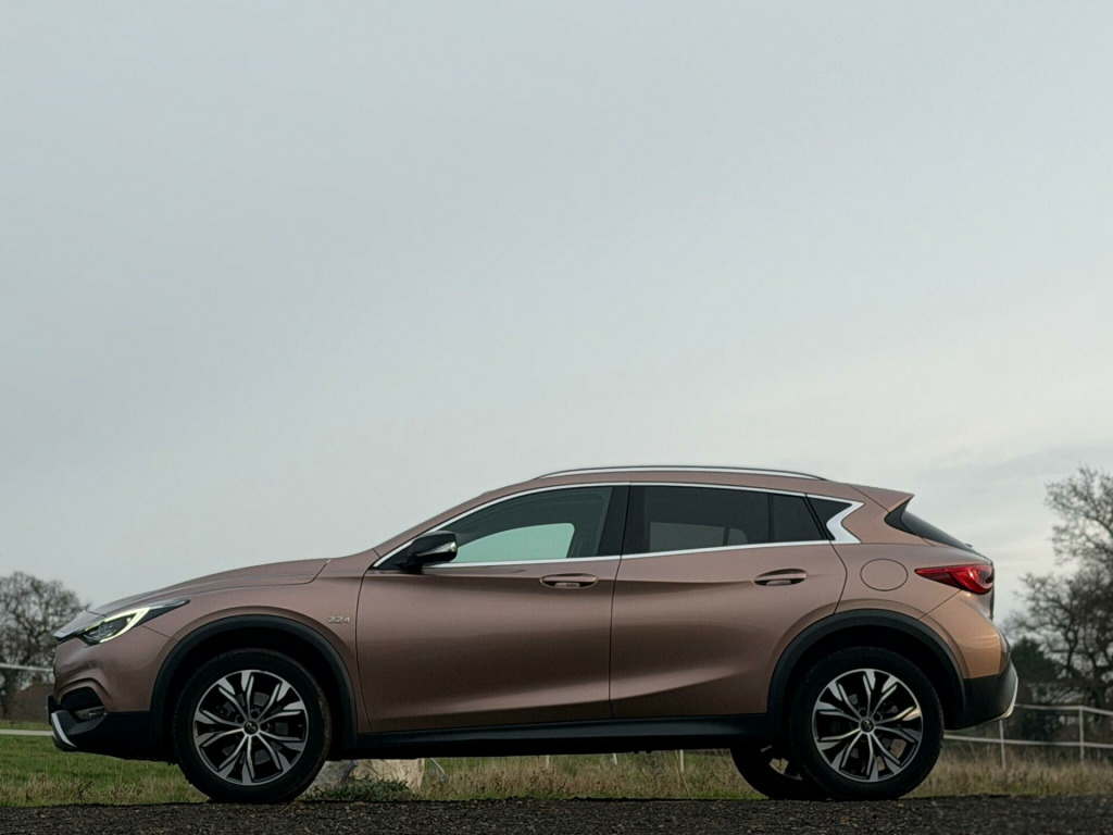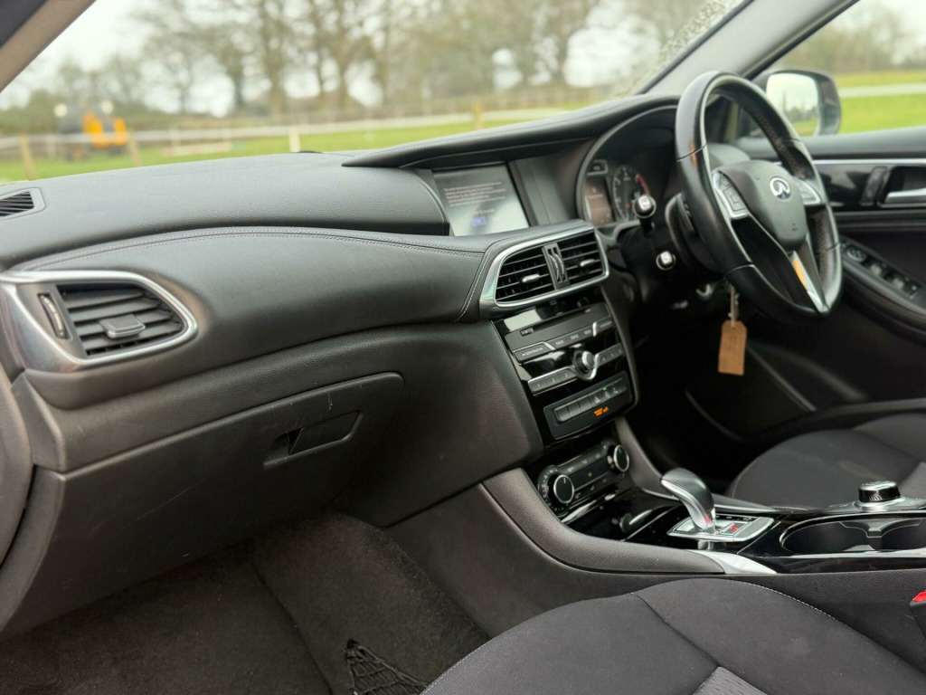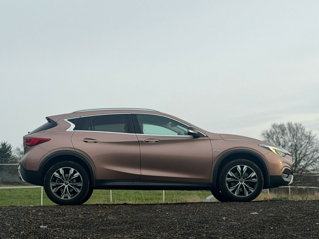 This 2019 Infiniti QX30 d Luxe is a standout example with remarkably low mileage for its age, having covered just 44,303 miles. This premium compact SUV boasts a robust 2.2 litre diesel engine paired with a four wheel drive system, ensuring confident performance in various conditions. As a Euro 6 compliant vehicle, it meets modern emissions standards. Inside, you'll find a comfortable and well equipped cabin featuring single zone air conditioning for your comfort, and the convenience of Bluetooth audio streaming with phone book functionality to keep you connected.The Infiniti QX30 d Luxe offers an impressive fuel economy of 48 miles per gallon, making it an economical choice for your journeys. Its acceleration from 0 to 62 miles per hour in just 8.5 seconds demonstrates its responsive power. Furthermore, this model sits in a low insurance group, which can contribute to lower running costs. Practicality is enhanced with rear parking sensors to assist with manoeuvring, and automatic headlight activation for added safety and convenience. v power outlet in front and rear centre console, 18in alloy wheels - light resurfaced 5 double-spoke snowflake design, 2 usb ports with smart phone and ipod connectivity, 4-wheel anti-lock braking system - abs - electronic brake force distribution - ebd - traction control system - tcs and vehicle dynamic control - vdc, 40-60 split-folding rear seat back, 6 speaker sound system, 7 airbags, am-fm audio system with single cd player, active noise cancellation - anc, adaptive brake assist, air conditioning - single zone, auto dimming driver door mirror, auto dimming rear view mirror, automatic headlight activation, black door mirrors with led turning signal, black lacquer interior trim, bluetooth audio streaming with phone book functionality, cruise control, driver seat cushion angle adjustment, dual rectangular chrome exhaust finishers, electronic parking brake, forward collision warning and stop, front centre armrest, front fog lights - led, front passenger footwell net, front and rear one touch up and down electric windows, grain plastic wheel arch mouldings and side sills, halogen headlights, heated windscreen washer jets, heated and electrically adjustable exterior mirrors with power folding, height adjustment on driver and passenger seat, hill start assist, isofix seat mounting points in the rear, illuminated vanity mirrors - driver and front passenger, immobiliser, infiniti drive mode selector, infiniti intouch pack, ldw - lane departure warning, led daytime running lights, led rear combination lights, leather steering wheel and gear shift lever, leatherette dashboard finisher, manual reach and rake adjustment for steering column, multifunction steering wheel, paddle shifts, rear fog lamps, rear parking sensors, reminder for front and rear seat belts, remote central locking, satin chrome plated inserts on front and rear bumpers, satin chrome roof rails, satin chrome window trim, speed limiter, speed sensitive power steering assistance, touch screen infotainment system - lcd vga 7, tyre pressure monitor system with warning - tpms, tyre repair kit, ultrasonic alarm system, voice recognition system