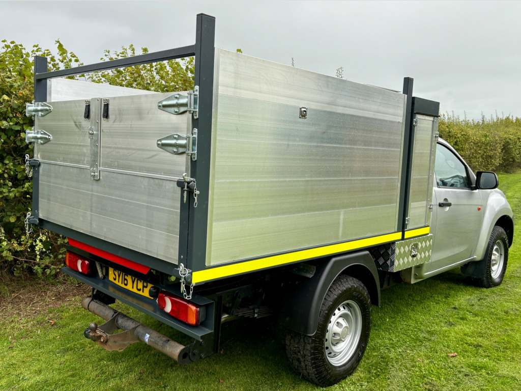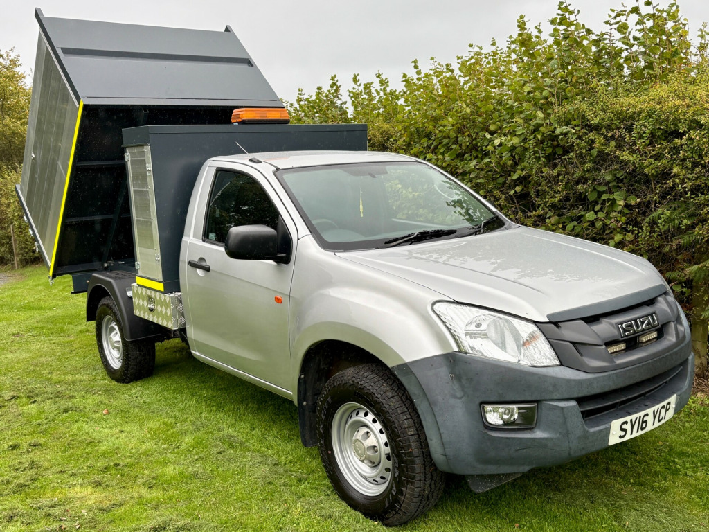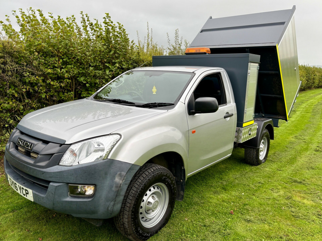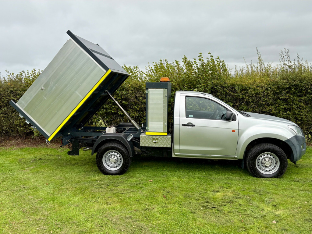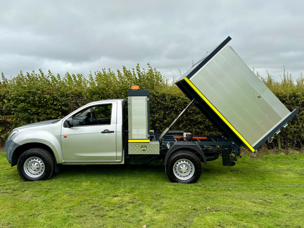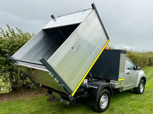 This 2 owner Isuzu D-max has just been converted to a Arb tipper. Inside the cab has well laid controls. Drivers controls are fully height adjustable. Twin cloth boxes, power steering & electric windows with central locking. Drivers airbag, all important air-con. 6 speed manual gearbox making the truck nice & economical. The body has a fixed tool box with full length shelf & 2 separate lockable toolboxes each side. The rear tipping body has lower tail gate for strength & upper barn doors that latch back. Chipping lid & tall sides. The vehicle is fitted with front & rear flashing beacons + a roof beacon. Worth noting 4 brand new all terrain tyres. Up rated brand new rear leaf springs and a brand new 5 yr battery. Independent MoT & 3 months warranty that can be extended. Service record stamped in the service book & recent service. Any further information please ask. r conditioning, barn doors, drivers arm rest, tailgate, adjustable steering column, power steering, steering wheel rake adjustment, steering wheel reach adjustment, traction control, abs, air bag, side air bags, twin air bags, central locking, immobiliser, electric mirrors, electric windows, radio/cd, front armrest, solid paint, spare wheel, steel wheels, tow pack, towbar - fixed