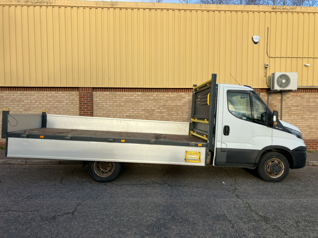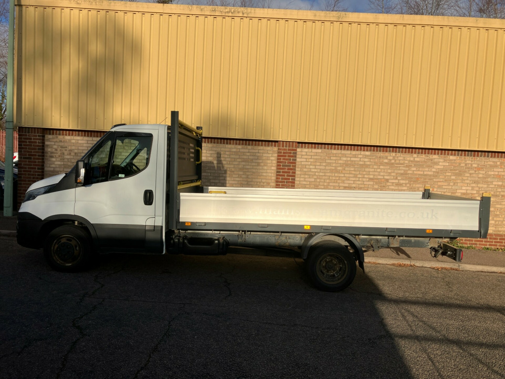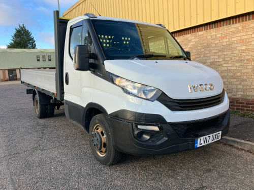 PLUS VAT, Introducing the 2017 Iveco Daily Chassis Cab with dropside flatbed body, a reliable diesel commercial vehicle with a powerful 2.3 TD 14V 35C 3450 engine delivering 136 bhp, The best engine option, perfect for heavy-duty transportation. This example is a one owner from new with great service history having been maintaned regardless of coost, Fantastic condition inside and out with only 151,000 miles on the clock. This vehicle is built to last and will have new MOT with sale . The spacious cab provides seating for three, and its 3500kg gross weight capacity ensures it can handle any load. The 2-door, RWD vehicle also boasts 16-inch steel wheels with 195/75 R16 on-road tires, ensuring a smooth and reliable ride every time with Air Conditioning for cabin comfort and greater glass area for improved visibility making this a practical and efficient choice for any business. Don't miss out on this opportunity to add a dependable workhorse to your fleet! WARRANTY. PLEASE TELEPHONE BEFORE VISITING: 07831 303095 in steel wheels with 195/75 r16 on road, bodymaker connector, delete spare wheel, delete spare wheel carrier, greater glass area for improved visibility, abs, asr, central locking, daytime running lights, drivers air bag, ebd, esp 9 with msr, fog lights - front, head restraints integrated - front x 3, hill holder, immobiliser, power-assisted steering, seat belt pretensioners, speed limiter 160km/h, tyre pressure control, tyre repair kit, adjustable steering wheel, bluetooth, bottle holder, electric windows, four speakers, radio cd/mp3, rubber mats, suspended driver seat with 3 degrees of freedom, usb/aux connections, upholstery cloth, black dashboard, cab rear trim panel, daily, semielliptic rear springs