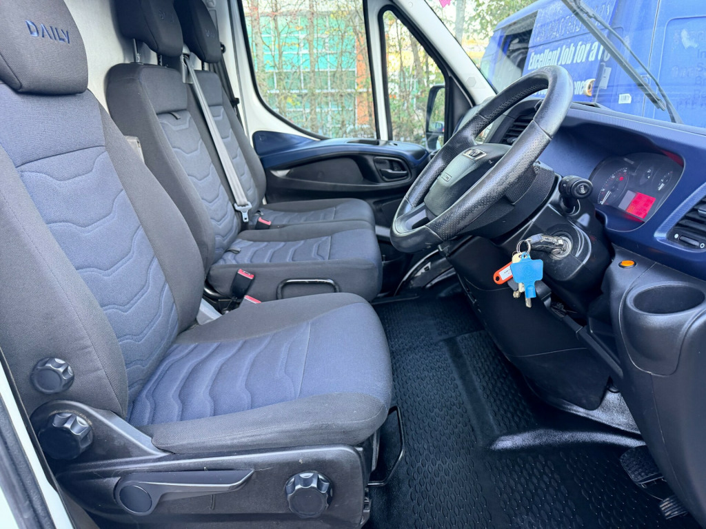 2019 (19) • 2.3 Diesel • AUTOMATIC • High Roof • 3520mm Wheelbase • White135,444 miles • New MOT • ULEZ Compliant • High-Spec ModelIntroductionIntroducing this 2019 Iveco Daily 35S14 High Roof Panel Van, powered by the efficient and reliable 2.3 Euro 6 diesel engine and paired with a smooth automatic gearbox a rarer and more desirable specification.With 3 seats, a 3520mm wheelbase, a massive high-roof cargo area, and a 5-door layout for easy access, this van is perfect for delivery routes, trade use, tools, equipment, or camper/day-van conversion.Currently MOT'd until February 2026, and will be supplied with a fresh 12-month MOT for complete peace of mind.With 135,444 miles, it drives extremely well and is fully ready for work.jQuery371005791289433065694_1763993881572 Key Features & SpecAUTOMATIC Gearbox (rare, desirable spec)ULEZ Compliant - Euro 6 engine2.3L Diesel - efficient, smooth & reliableHigh Roof - full stand-up internal height3520mm Wheelbase3 Seats (Day Cab)White Professional Finish5-Door Layout for Excellent AccessAir ConditioningClimate ControlReversing CameraDAB RadioBluetooth ConnectivityElectric WindowsSupplied with a NEW 12-Month MOTElectrical UpgradeProfessionally installed Sterling Power digital quasi sine-wave inverterProvides reliable and stable AC power on-siteIdeal for power tools, charging equipment, or camper/day-van conversion useA valuable added extra not found on standard modelsLoad & PracticalityHuge high-roof load spaceWide rear barn doorsSide-loading doorStrong rear-loading floorPerfect for delivery work, multi-drop routes, tools & materialsAutomatic gearbox ideal for city driving and long-distance comfortCondition & HistoryDrives very well with smooth automatic shiftsThe interior is clean and tidyHonest exterior with standard minor age-related marksMechanically solidWill be supplied with a brand new MOTReady for work immediatelyIdeal ForCourier & multi-drop delivery routesTradespeople & mobile workshop setupsTransporting tools, equipment & materialsCamper or Day-Van Conversion BaseExport buyers welcomeMotor Buying GroupMessage or call to arrange a viewing or walk-around video.Nationwide delivery available.Part-exchange welcome.BY APPOINTMENT ONLY!PRICE INCLUDING VAT. in steel wheels, delete cab rear trim, delete spare wheel carrier, full opening rear door, 270 degrees, tyres 225/65 r16 on road, uprate trailer towing capacity to 3.5t, 3rd stop light/spot light, abs, central locking, remote, drivers air bag, ebd, esp, head restraints - front, immobiliser, power-assisted steering, seat belt pretensioners, speed limiter 160km/h, tyre pressure control, tyre repair kit, black dashboard, bluetooth, electric windows, radio cd, mp3, upholstery cloth, daily, daily bussiness, rh side exhaust pipe, reinforced rear springs max load