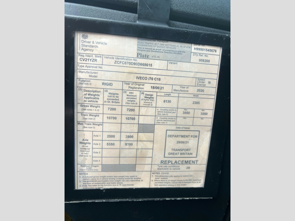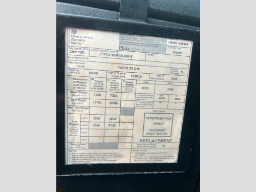 For sale is a 2021 Iveco Daily 70C18HB Drop-side Tipper with a diesel engine and only 62468 miles on the clock. This tipper has a gross weight of 7200kg and comes with MOT valid until 25/03/2026. It has had 2 previous registered keeper(s) and is in excellent condition. Whether for construction, landscaping, or any other heavy-duty work, this reliable and powerful vehicle is ready to tackle any job. Don't miss this opportunity to own a top-quality, low-mileage commercial vehicle that is built to last. Contact us today to schedule a test drive and see the capabilities of this impressive truck. Finance or leasing available, please call for details. Price is plus VAT ,