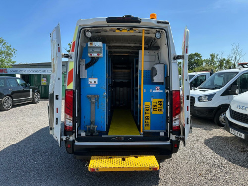 IVECO DAILY 35S12 MWB PTO COMPRESSOR WORKSHOP UTILITY WITH 110V POWER VAN, 2.3 DIESEL RWD, 2018 18 PLATE, EURO 6, 6 SPEED MANUAL GEARBOX, AIR CONDITIONING, REMOTE CENTRAL LOCKING, ELECTRIC WINDOWS, PAS, BLUETOOTH, AUX, STEREO, REAR PARKING SENSORS AND CAMERA, REAR RACKING, WORK BENCH AND SHELVING, WORK LAMPS, HANDWASH, BEACONS, PASSENGER SIDE LOADING DOOR, REAR BARN DOORS, REAR STEP AND TOW BAR. 3500KG TOWING CAPACITY. SUPPLIED WITH NEW 12 MONTHS MOT, SERVICE, WARRANTY, FREE DELIVERY! 10995 PLUS VAT. TEL: 01453 810100. APPOINTMENT ONLY. PLEASE CLICK TO WEBSITE FOR VIDEO.