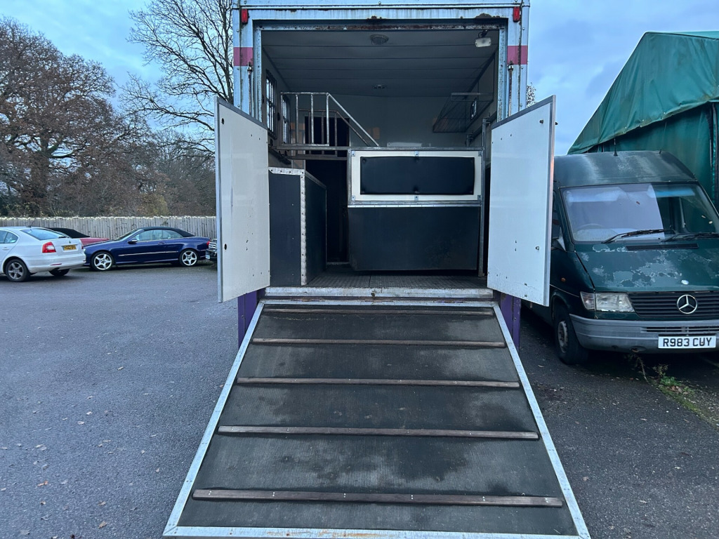 Just arrived awaiting preparation is this very clean and tidy Iveco 7.5 tonne 3 stall horsebox with living accommodation. The truck drives very well having done just over a 200 mile trip to the garage, it will come with a new mot test, serviced and 3 months warranty. Must be viewed to fully appreciate, any test trial or inspection is welcome, please note the vehicle has been subject to an insurance claim for paintwork on the rear drivers side corner, no structural damage whatsoever occurred. Any test trial or inspection is welcome, all major Credit / Debit cards accepted, the specification is as follows