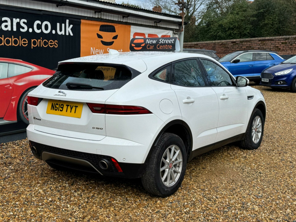 This 2019 Jaguar E-PACE D150 is presented with a clear vehicle history check, offering you peace of mind. This stylish compact SUV is powered by a 2.0 litre diesel engine, meeting Euro 6 emissions standards. It comes equipped with modern conveniences such as LED headlights that activate automatically, a rear view camera for easier parking, and Bluetooth connectivity for seamless phone integration. Inside, you will appreciate the comfort provided by the 2 zone climate control system.The E-PACE D150 stands out with its generous boot space, making it a practical choice for everyday life and longer journeys. Furthermore, its low CO2 emissions indicate a more environmentally conscious performance compared to many other vehicles in its class. These attributes combine to make this Jaguar E-PACE a well rounded and appealing option.We are proud to present this Jaguar E-PACE 2.0 D150 Euro 6 (s/s) 5dr that comes with a service history for added peace of mind. It comes with 2 keys and 2 owner and has just been serviced. 12 months MOT included, You have the option to purchase RAC warranty with the option to extend.At New Street Car Centre we have over 25 years experience as the largest and most trusted used car dealership in Telford. We offer award winning customer service, great prices and excellent preparation standards. Each vehicle undergoes quality control inspections and a complimentary history check for your added peace of mind.we have also included additional specification but please always check the exact specification details with ourselves prior to purchase as models can vary. 10in Touch Pro, 17in Alloy Wheels - 10 Spoke Style 1005, 2-Zone Climate Control, 3-Flash Lane Change Indicators, 5in Display with Instrument Panel, 60-40 Split Fold Rear Seat, 8-Way Manual Front Seats, ABS - Anti-locking Braking System, Airbags - Front Side, Airbags - Full Length Side Window Curtain, Approach Illumination, Automatic Headlights, Bluetooth Connectivity, Body Coloured Roof, CBC - Cornering Brake Control, Centre Console Cubby Box, Centre Console with Armrest, Chrome Side Vents, Cruise Control with Speed Limiter, Customer Configurable Autolock, DAB Radio, Driver Condition Monitor, Dynamic Stability Control and Traction Control, Dynamic Volume Control, EBA - Emergency Brake Assist, EBD - Electronic Brake-Force Distribution, EBL - Emergency Brake Lights, ECO Driving Style Assistant, EPAS - Electric Power Assisted Steering, EPB - Electric Parking Brake, Electric Windows - Front and Rear with One-Touch Open-Close and Anti-Trap, Emergency Braking, Front Airbags with Passenger Seat Occupant Detector, Front and Rear Parking Aid, Heated Door Mirrors, Heated Front Windscreen, Heated Rear Window, Heated Washer Jets, Hill Launch Assist, Hooks in Loadspace, Intrusion Sensor - Perimetric and Volumetric Protection, Jaguar Optimised Assistance, JaguarDrive Control, LED Headlights, LED Tail Lights, Lane Keep Assist, Leather Steering Wheel, Light Oyster Morzine Headlining, Loadspace Cover, Loadspace Elasticated Side-Strap, Loadspace Lighting, Loadspace Storage Net, Locking Wheel Nuts, Luggage Tie Downs in Loadspace, Manual Tailgate, Metal Treadplates with Jaguar Script, Overhead Lighting Console, Passive Front Head Restraints, Pedestrian Airbag System, Power Operated Child Locks, Power Sockets, Push Button Start, RSC - Roll Stability Control, Rain Sensing Windscreen Wipers, Rear Fog Lights, Rear ISOFIX, Rear View Camera, Remote, Remote Control Central Locking, SOS Emergency Call, Satin Black Side Window Surround, Seat Belt Reminder, Second Row Air Vents, Sound System - 125W, Sunvisors with Illuminated Vanity Mirrors, Tailgate Spoiler, Trailer Stability Assist, Trip Computer, Twin Front Cupholders with Cover, Twin Tailpipes, Tyre Pressure Monitoring System, Tyre Repair System, Voice Control, Traffic Sign Recognition with Adaptive Speed Limiter.