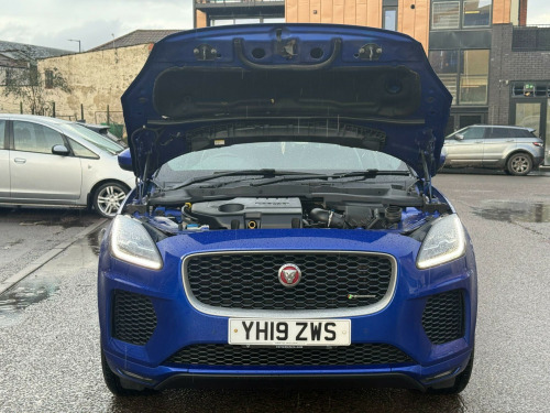 Discover this 2019 Jaguar E-PACE D150 R-Dynamic S, a stylish and capable compact SUV. This Euro 6 compliant model boasts a 2.0L diesel engine, offering an efficient driving experience. It comes equipped with desirable R-Dynamic S trim features, including 18 inch alloy wheels in a 9 spoke style 9008, and LED headlights with signature daytime running lights. Inside, you'll find a 10 inch Touch Pro Dual View screen for seamless connectivity and entertainment, alongside 2 zone climate control to ensure comfort for all occupants. The inclusion of a rear view camera aids in parking, making manoeuvring easier.This Jaguar E-PACE stands out with its generous boot space, providing ample room for luggage or shopping. Furthermore, its low CO2 emissions highlight its environmental consideration, making it a more responsible choice compared to many similar vehicles. The combination of its sporty R-Dynamic S styling, practical features, and efficient performance makes this E-PACE a compelling option for those seeking a premium compact SUV. -way electric front seats, 10in touch pro, 18in alloy wheels - 5 spoke style 5048, 2-zone climate control, 3-flash lane change indicators, 360 degree parking aid, 5in display with instrument panel, 60-40 split fold rear seat, abs - anti-locking braking system, airbags - front side, airbags - full length side window curtain, approach illumination, auto-dimming - power fold - heated door mirrors with approach lights, auto-dimming interior rear view mirror, automatic headlights, bluetooth connectivity, body coloured roof, body-coloured door claddings, bright metal pedals, cbc - cornering brake control, centre console cubby box, centre console with armrest, connect pro pack, cruise control with speed limiter, customer configurable autolock, dab radio, driver condition monitor, dynamic stability control and traction control, dynamic volume control, eba - emergency brake assist, ebd - electronic brake-force distribution, ebl - emergency brake lights, eco driving style assistant, epas - electric power assisted steering, epb - electric parking brake, ebony morzine headlining, electric windows - front and rear with one-touch open-close and anti-trap, emergency braking, front airbags with passenger seat occupant detector, front fog lights, gloss black grille with satin chrome surround, heated front windscreen, heated rear window, heated washer jets, hill launch assist, hooks in loadspace, intrusion sensor - perimetric and volumetric protection, jaguar optimised assistance, jaguardrive control, led headlights with signature daytime running lights, led tail lights, lane keep assist, loadspace cover, loadspace elasticated side-strap, loadspace lighting, loadspace storage net, locking wheel nuts, luggage tie downs in loadspace, manual tailgate, metal treadplates with r-dynamic branding, navigation pro system, overhead lighting console, park assist, park pack, passive front head restraints, pedestrian airbag system, power operated child locks, power sockets, push button start, r-dynamic body kit, r-dynamic branded leather steering wheel, rsc - roll stability control, rain sensing windscreen wipers, rear fog lights, rear isofix, rear traffic monitor, rear view camera, remote, remote control central locking, sos emergency call, satin black side window surround, satin chrome side vents, seat belt reminder, second row air vents, smartphone pack, sound system - 125w, sunvisors with illuminated vanity mirrors, tailgate spoiler, traffic sign recognition with adaptive speed limiter, trailer stability assist, trip computer, twin front cupholders with cover, twin tailpipes with finishers, tyre pressure monitoring system, tyre repair system, voice control, 10in touch pro dual view, 18in alloy wheels - 9 spoke style 9008