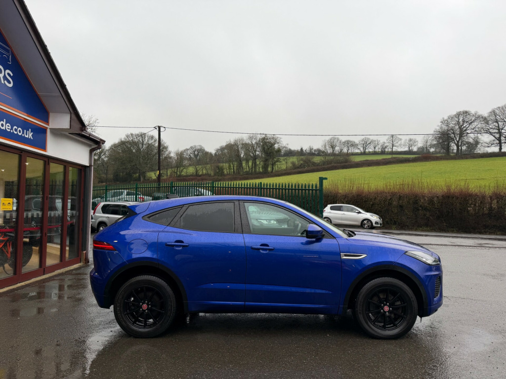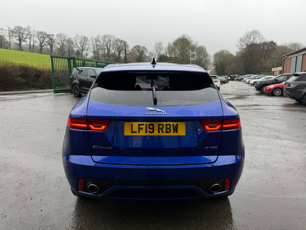 This 2019 Jaguar E-Pace 2.0 D150 R-Dynamic SUV, with 81878 miles on the clock, is a Diesel manual vehicle that is ULEZ compliant and has an MOT expiry date of 15/08/2026. With 5 doors and 5 seats, this SUV is perfect for a family. Featuring 10in Touch Pro, AM-FM Radio, Bluetooth Connectivity, DAB Radio, and Dynamic Volume Control, this car provides top-notch technology and entertainment. With its Euro 6 (s/s) engine, producing 150 ps, this Jaguar E-Pace offers both performance and efficiency. Whether it's for daily commutes or family road trips, this SUV delivers a smooth and enjoyable ride., in touch pro, am-fm radio, bluetooth connectivity, dab radio, dynamic volume control, power sockets, remote, sound system - 125w, 17in alloy wheels - 10 spoke gloss sparkle silver - style 1005, body coloured roof, body-coloured door claddings, d150 badge, e-pace badge, electric windows - front and rear with one-touch open-close and anti-trap, electrically adjustable heated door mirrors, gloss black grille with satin chrome surround, heated front windscreen, heated rear window, heated washer jets, jaguar script and leaper, locking wheel nuts, manual tailgate - boot lid, r-dynamic badge, r-dynamic body-coloured bumpers, rear fog lights, satin black side window surround, satin chrome side vents, summer tyres, tailgate spoiler, twin tailpipes with finishers, tyre repair system, 2-zone climate control, 3-flash lane change indicators, 60-40 split fold rear seat, 8-way heated manual front seats, analogue dials with central tft display, bright metal pedals, carpet mats, centre console with armrest, diesel misfuelling protection device, ebony morzine headlining, interior lighting, loadspace cover, loadspace elasticated side-strap, loadspace lighting, loadspace storage net, luggage tie downs in loadspace, manual dipping interior rear view mirror, metal treadplates with r-dynamic branding, overhead lighting console, passive front head restraints, push button start, r-dynamic branded leather steering wheel, rain sensing windscreen wipers, rear air vents, rear bench seat - 3 seats, rear centre headrest, sunvisors with illuminated vanity mirrors, twin front cupholders, x4 hooks in loadspace, abs - anti-locking braking system, airbags - front side, airbags - full length side window curtain, customer configurable autolock, dynamic stability control - dsc, eba - emergency brake assist, ebd - electronic brake-force distribution, epb - electric parking brake, emergency braking, front airbags with passenger seat occupant detector, hill launch assist, intrusion sensor, lane keep assist, power operated child locks, rear isofix, seat belt reminder, approach illumination, automatic headlights, front fog lights, led headlights, cruise control with speed limiter, driver condition monitor, eco driving style assistant, epas - electric power assisted steering, front and rear parking aid, jaguardrive control, outside temperature gauge, passive suspension, rear view camera, speed proportional steering, start up sequence with movement - dials and lighting, trip computer, tyre pressure monitoring system, voice control