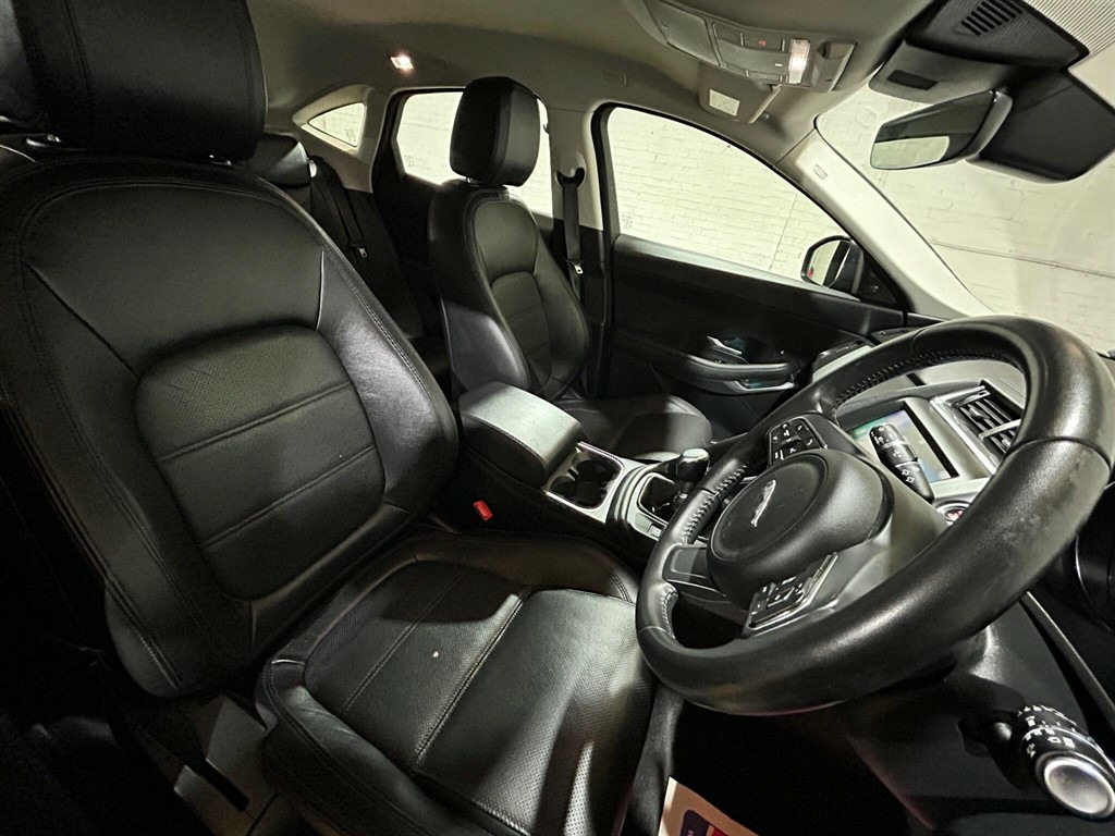This 2019 Jaguar E-PACE D150 S is a superb example, having been owned by just one person from new. This compact SUV boasts a 2.0 litre diesel engine, meeting Euro 6 emissions standards, and comes in the well appointed S trim. You'll appreciate the convenience of automatic headlights, which include automatic activation, and the ease of Bluetooth connectivity for your devices. The E-PACE offers practical benefits, including a generous boot space perfect for your shopping or luggage. For added ease when parking, a rear view camera is fitted, complemented by LED headlights with signature daytime running lights for enhanced visibility. The cabin environment is kept comfortable year round thanks to the 2 zone climate control system, ensuring a pleasant journey for all occupants. 10-Way Electric Front Seats,10in Touch Pro,18in Alloy Wheels - 9 Spoke Style 9008,2-Zone Climate Control,3-Flash Lane Change Indicators,60-40 Split Fold Rear Seat,ABS - Anti-locking Braking System,AM-FM Radio,Airbags - Front Side,Airbags - Full Length Side Window Curtain,Analogue Dials with Central TFT Display,Approach Illumination,Auto-Dimming - Power Fold - Heated Door Mirrors with Approach Lights,Auto-Dimming Interior Rear View Mirror,Automatic Headlights,Bluetooth Connectivity,Body Coloured Roof,Body-Coloured Bumpers,Centre Console Cubby Box,Centre Console with Armrest,Chrome Side Vents,Connect Pro Pack,Cruise Control with Speed Limiter,Customer Configurable Autolock,D150 Badge,DAB Radio,Diesel Misfuelling Protection Device,Driver Condition Monitor,Dynamic Stability Control - DSC,Dynamic Volume Control,E-PACE Badge,EBA - Emergency Brake Assist,EBD - Electronic Brake-Force Distribution,ECO Driving Style Assistant,EPAS - Electric Power Assisted Steering,EPB - Electric Parking Brake,Electric Windows - Front and Rear with One-Touch Open-Close and Anti-Trap,Emergency Braking,Front Airbags with Passenger Seat Occupant Detector,Front and Rear Parking Aid,Grained Black Door Claddings,Grained Black Grille with Chrome Surround,Heated Front Windscreen,Heated Rear Window,Heated Washer Jets,Hill Launch Assist,Hooks in Loadspace,InControl Apps,Interior Lighting,Intrusion Sensor,Jaguar Script and Leaper,JaguarDrive Control,LED Headlights with Signature Daytime Running Lights,Lane Keep Assist,Leather Steering Wheel,Light Oyster Morzine Headlining,Loadspace Cover,Loadspace Elasticated Side-Strap,Loadspace Lighting,Loadspace Storage Net,Locking Wheel Nuts,Luggage Tie Downs in Loadspace,Manual Tailgate - Boot Lid,Metal Treadplates with Jaguar Script,Navigation Pro System,Outside Temperature Gauge,Overhead Lighting Console,Passive Front Head Restraints,Passive Suspension,Power Operated Child Locks,Power Sockets,Push Button Start,Rain Sensing Windscreen Wipers,Rear Air Vents,Rear Bench Seat - 3 Seats,Rear Centre Headrest,Rear Fog Lights,Rear ISOFIX,Rear View Camera,Remote,S Badge,Satin Black Side Window Surround,Seat Belt Reminder,Sound System - 125W,Speed Proportional Steering,Start Up Sequence with Movement - Dials and Lighting,Summer Tyres,Sunvisors with Illuminated Vanity Mirrors,Tailgate Spoiler,Traffic Sign Recognition with Adaptive Speed Limiter,Trip Computer,Twin Front Cupholders with Cover,Twin Tailpipes,Tyre Pressure Monitoring System,Tyre Repair System,Voice Control